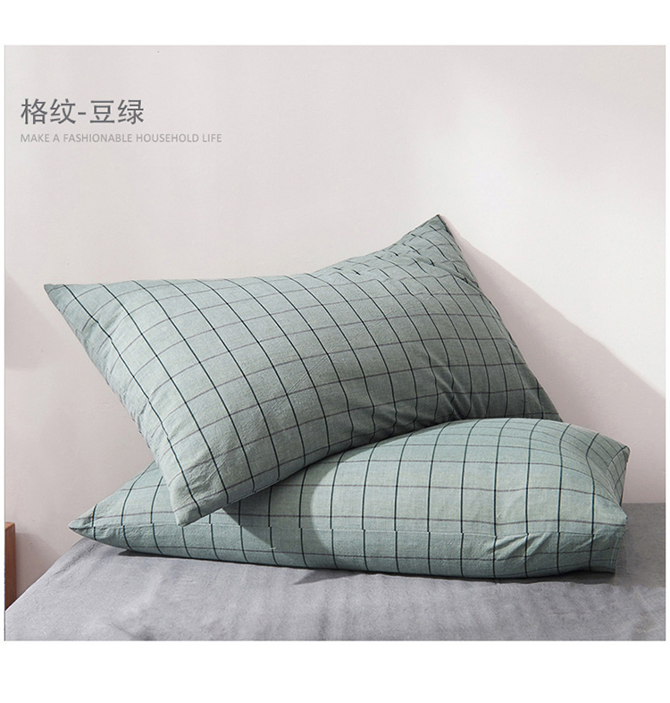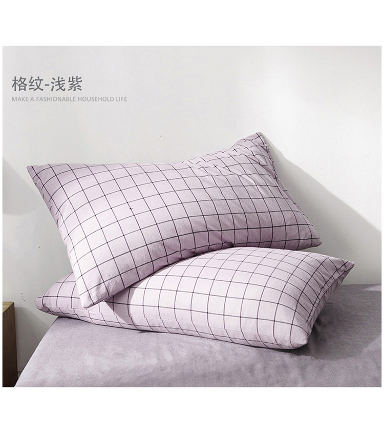 柠萌家居 2019全棉水洗棉单枕套(48*74) 浅蓝小格