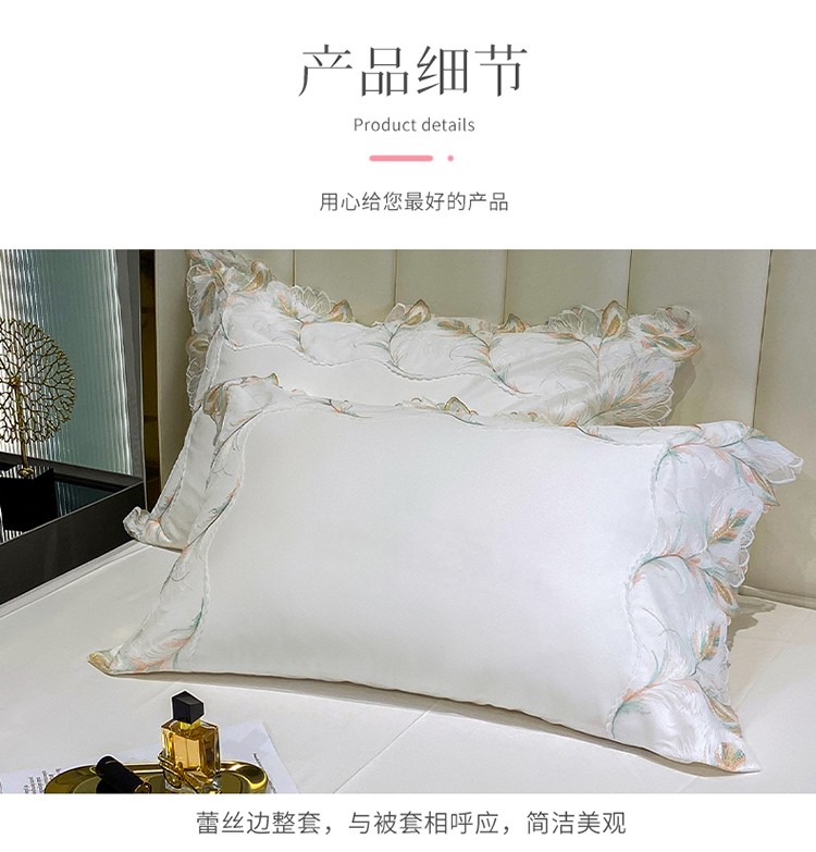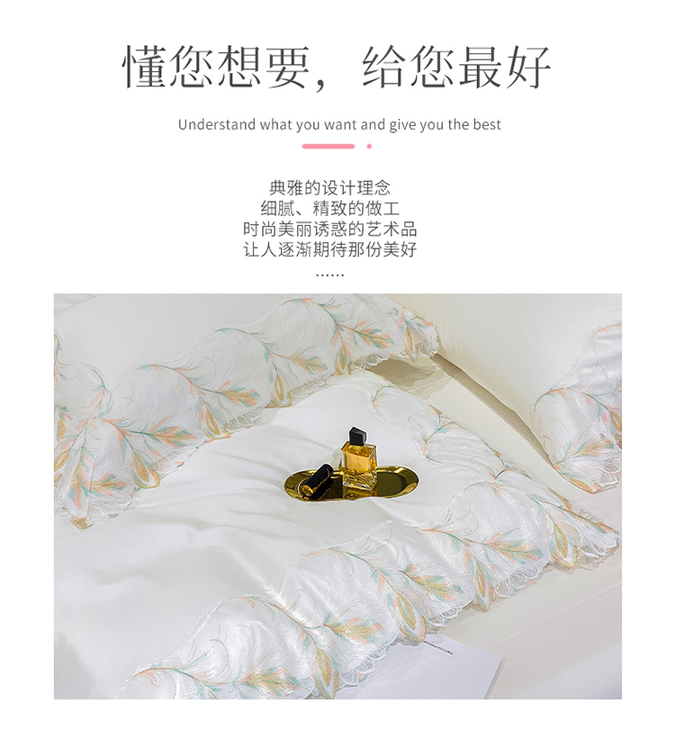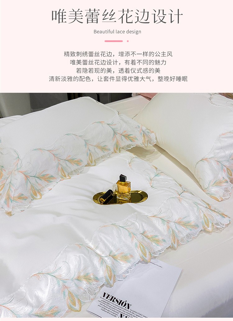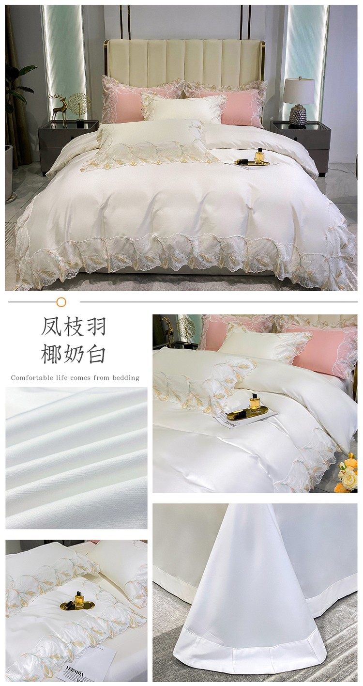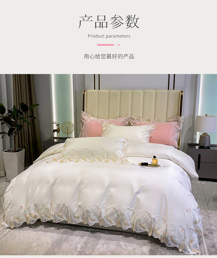 商品名称:总 魅都凤枝羽100s阿克苏长绒棉法式轻奢蕾丝四件套