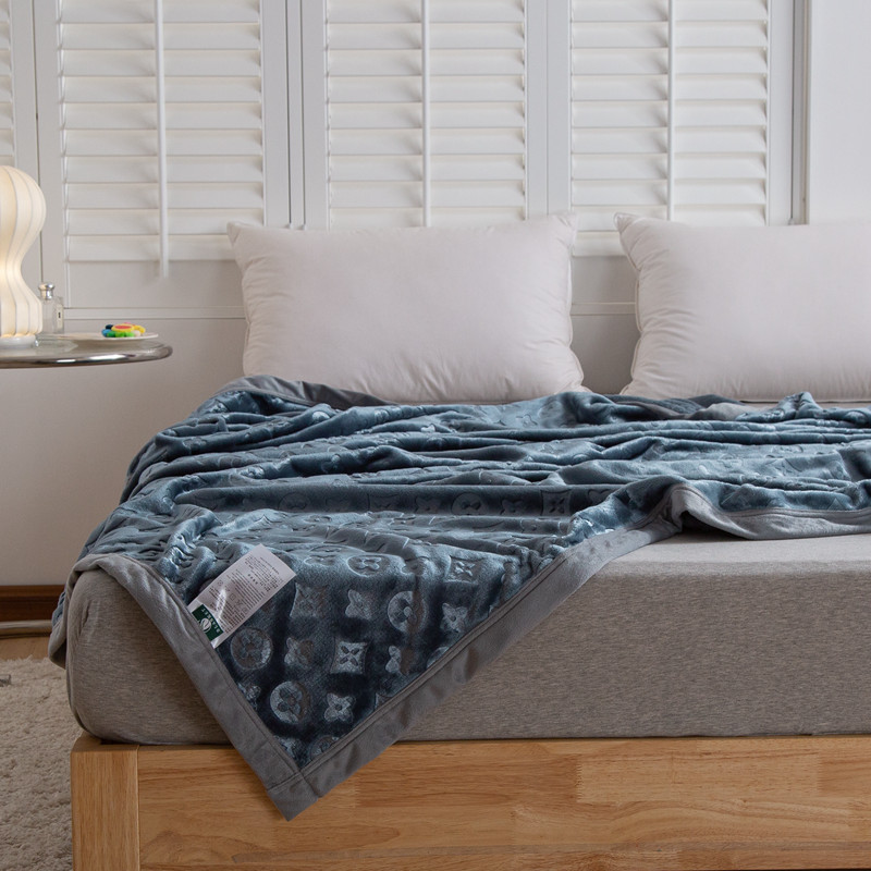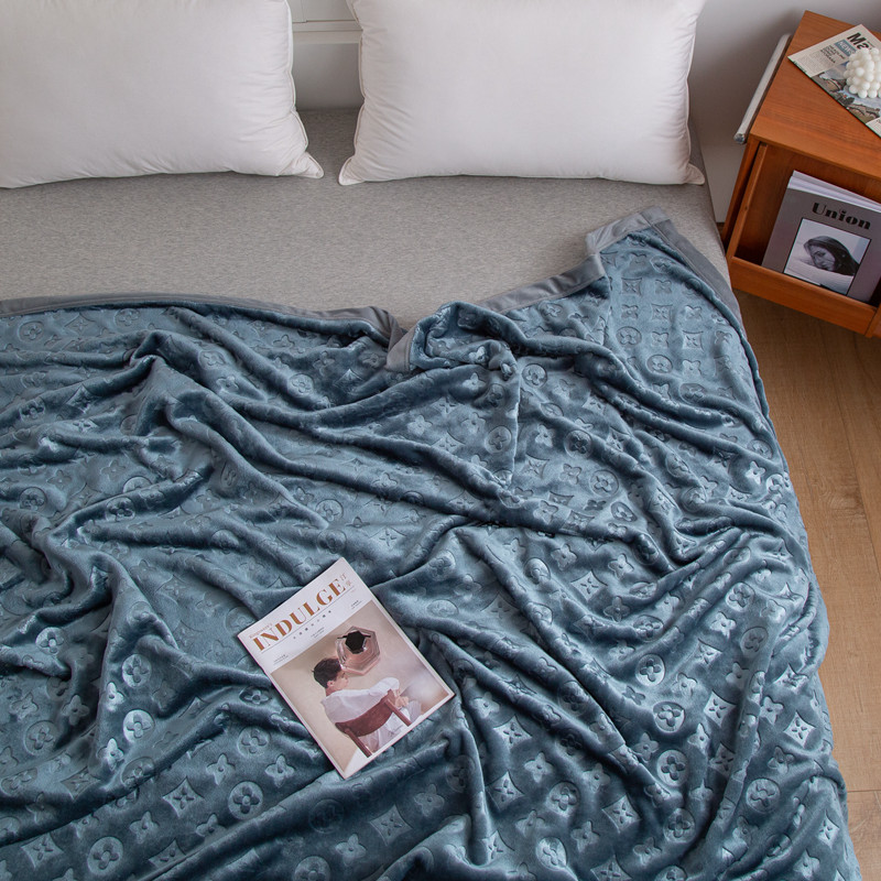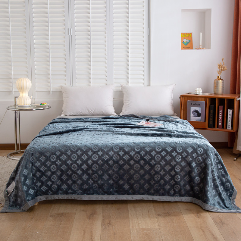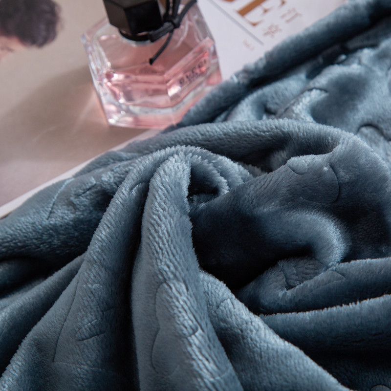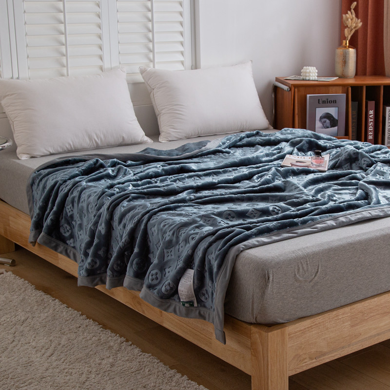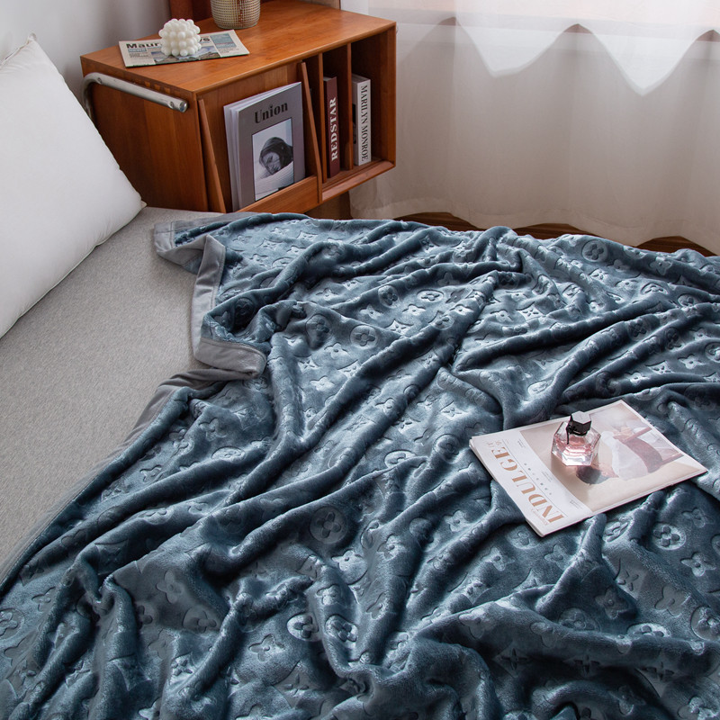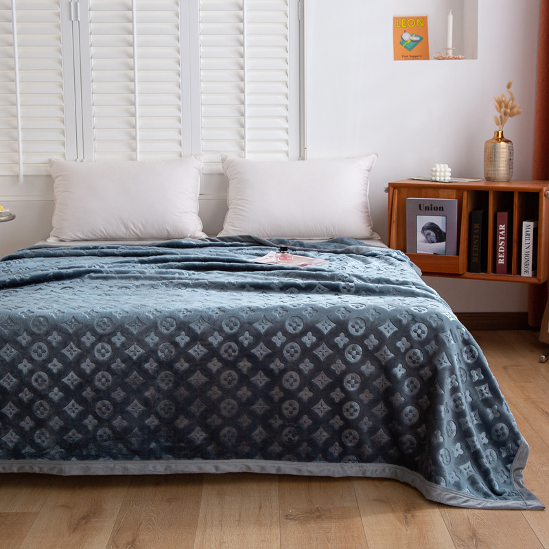 来菲毛毯 25新款400克3D压花立体毛毯3加厚压花绒毯外贸超厚3D灰蓝