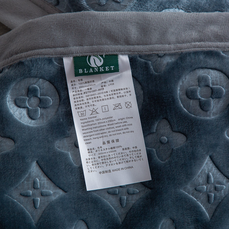 商品名称:来菲毛毯 25新款400克3D压花立体毛毯3加厚压花绒毯外贸超厚3D灰蓝