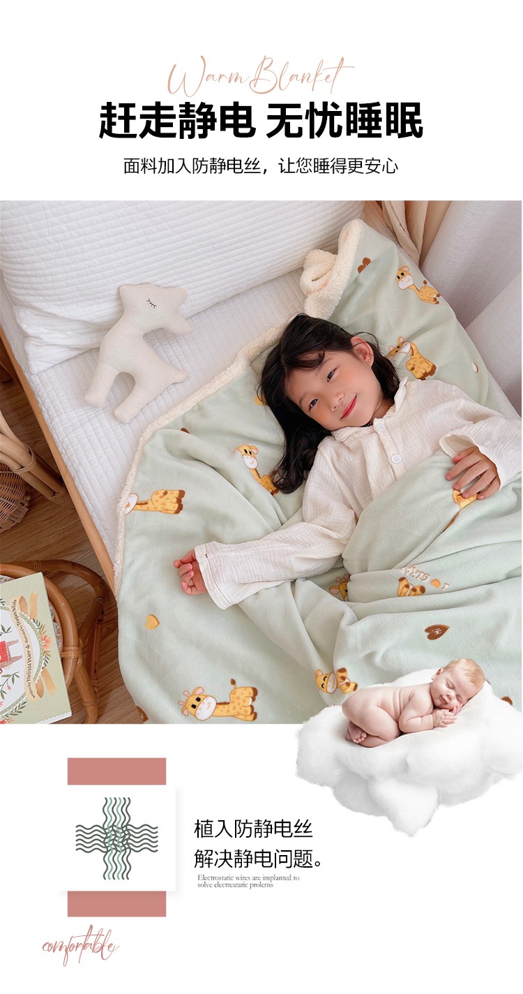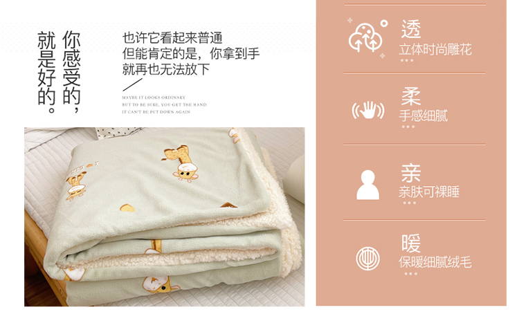 商品名称:心卓 2021新款高克重牛奶绒羊羔绒毛毯被套毯子 小鹿