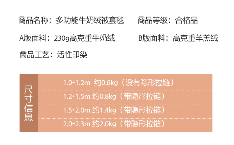 150*200cm(带隐形拉链)