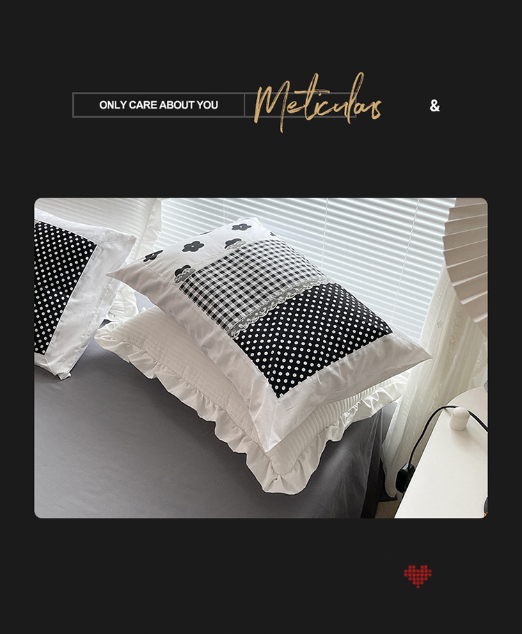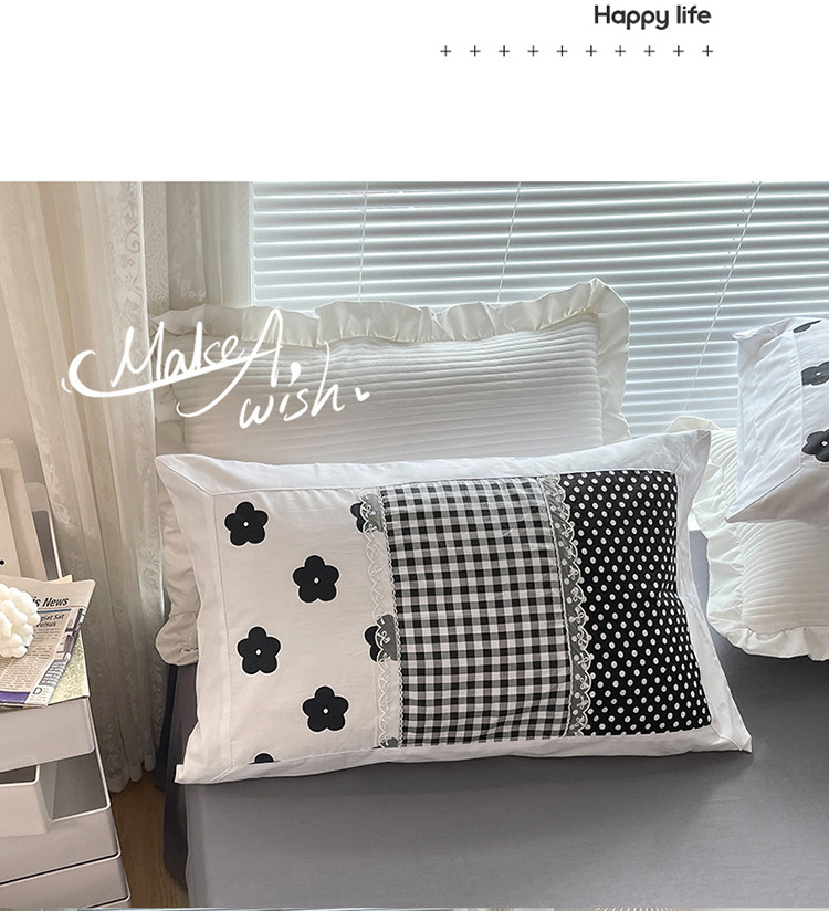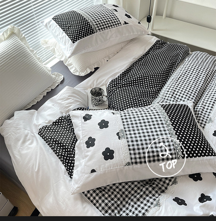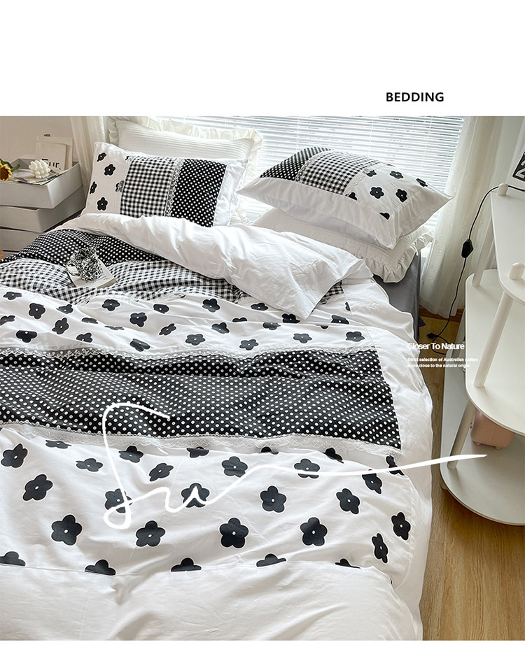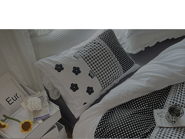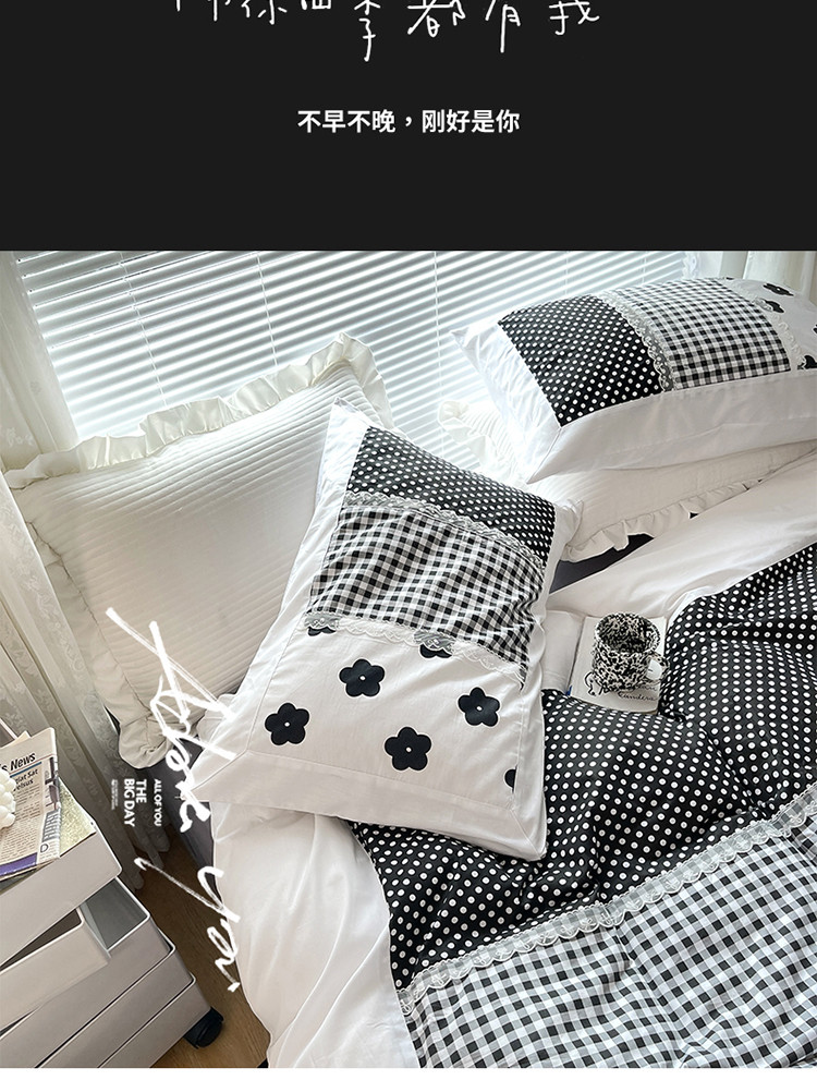 商品名称:婳庭 2021新款黑白拼接款四件套 山茶花-白