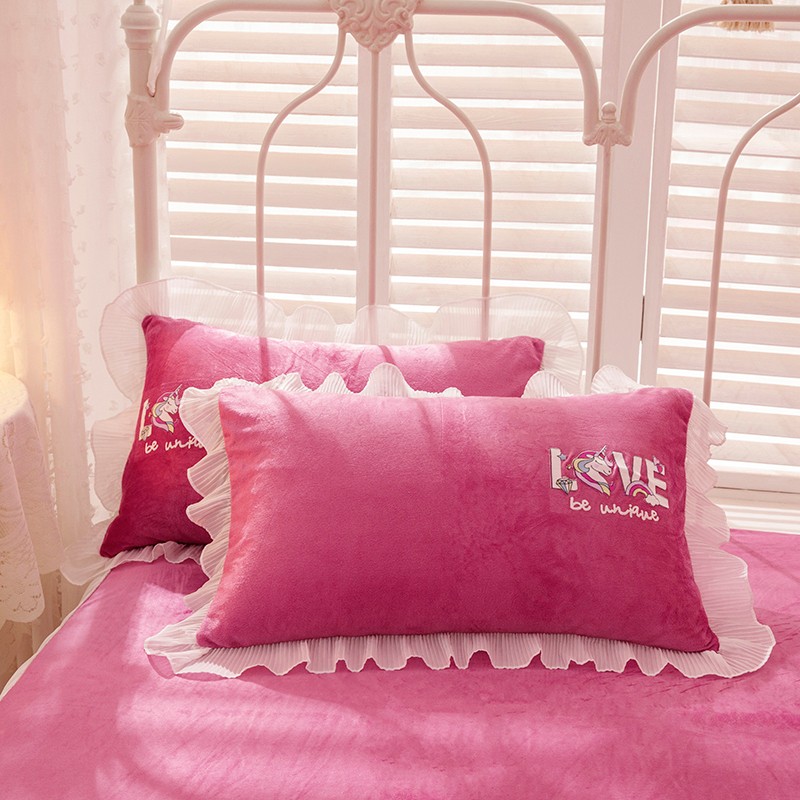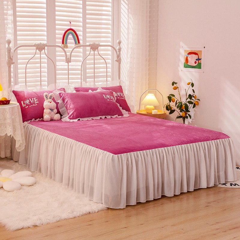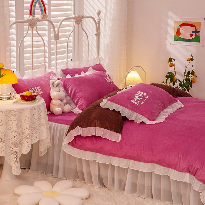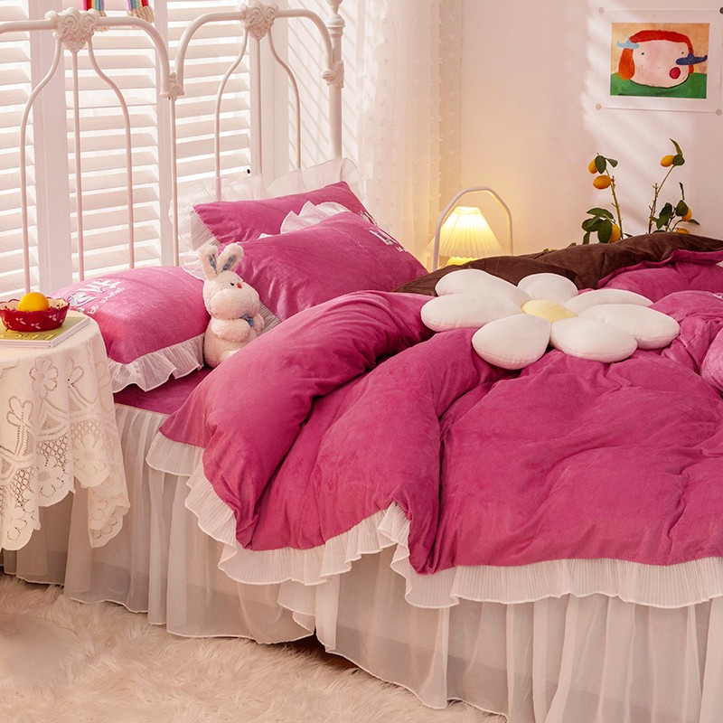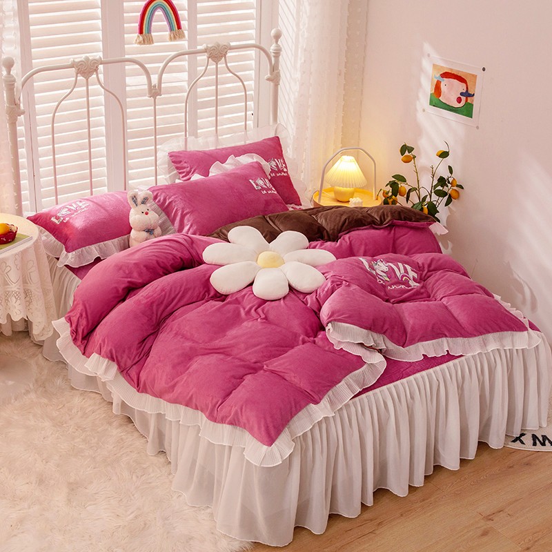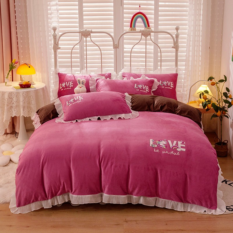 纽缦 2021新款韩版水晶绒床裙四件套 独角兽-豆沙咖