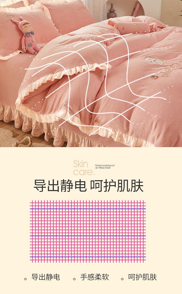 (总)宜凡家纺 2025新款兔绒提花牛奶绒夹棉床裙四件套,爱心 少女粉,爱心 粉紫,爱心 驼色,蝶舞 大红,蝶舞 米色,蝶舞 浅紫,蝶舞 玉色,简爱 苍青,简爱 豆沙紫,简爱 玉色,樱桃 苍青,樱桃 豆沙紫,樱桃 奶油白
