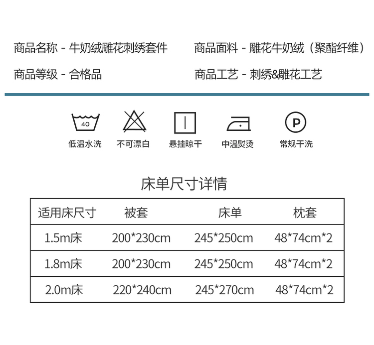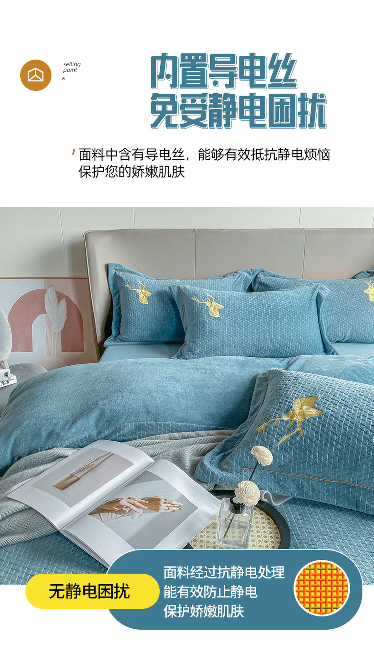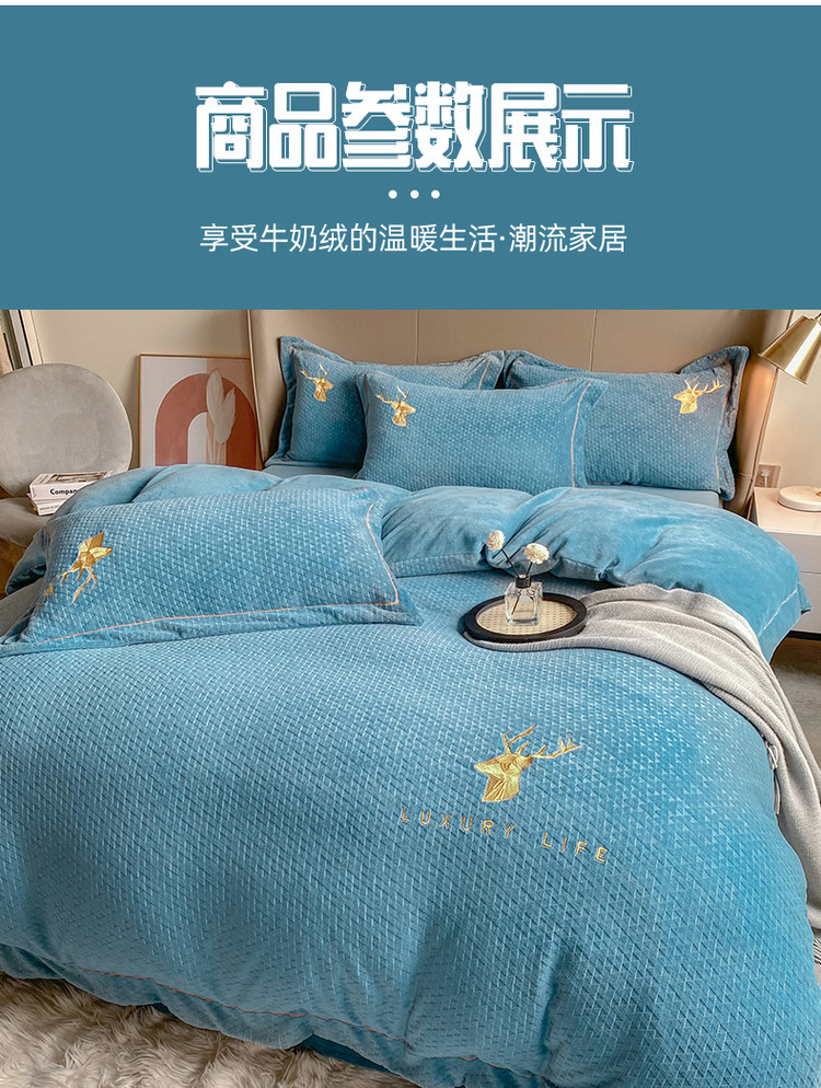 商品名称:棉生活家纺 2021新款牛奶绒雕花刺绣四件套 野格-蓝