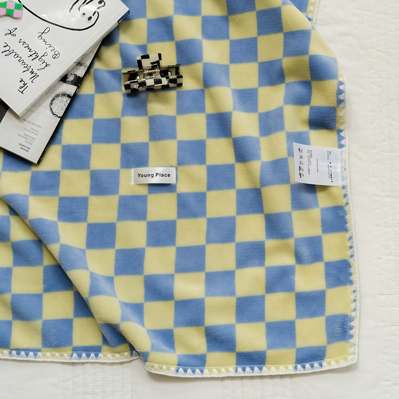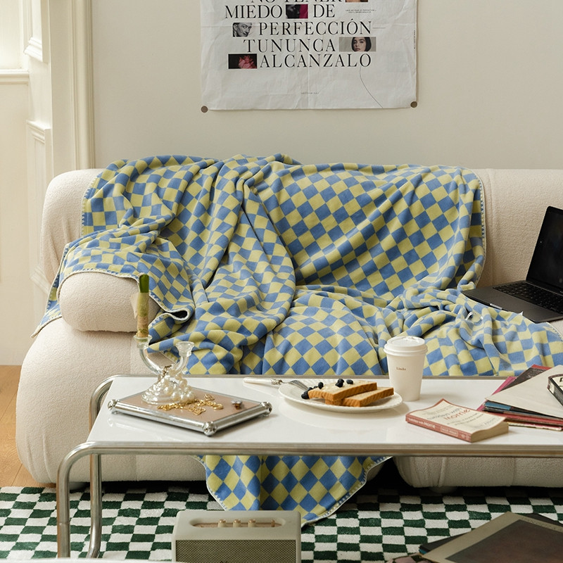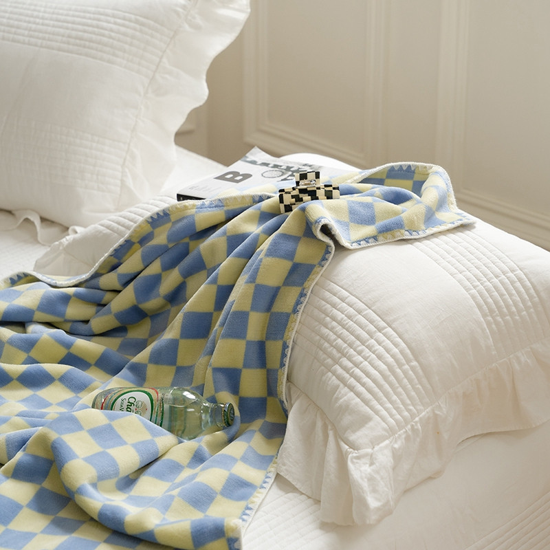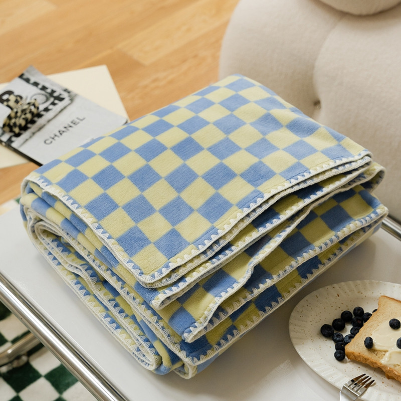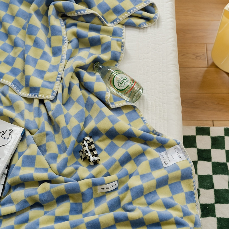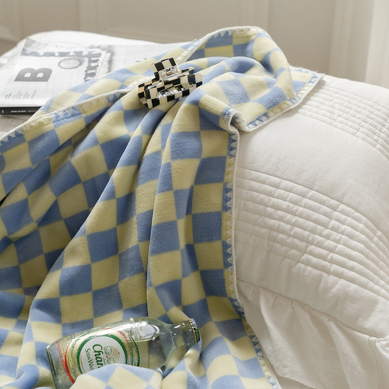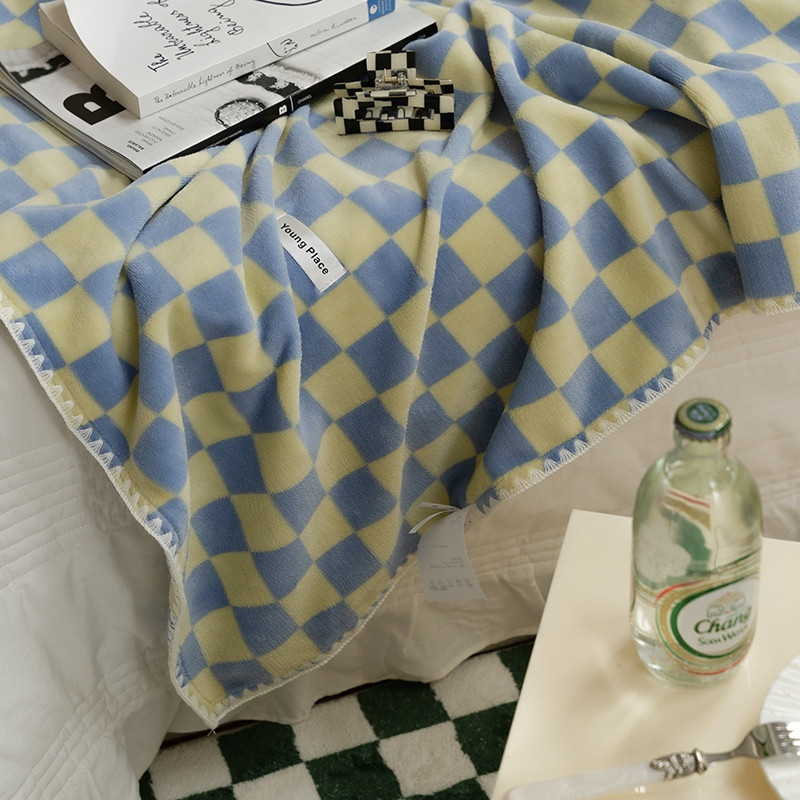 洋铭区 2021冬季新品棋盘格双色牛奶绒毯子 水雾蓝