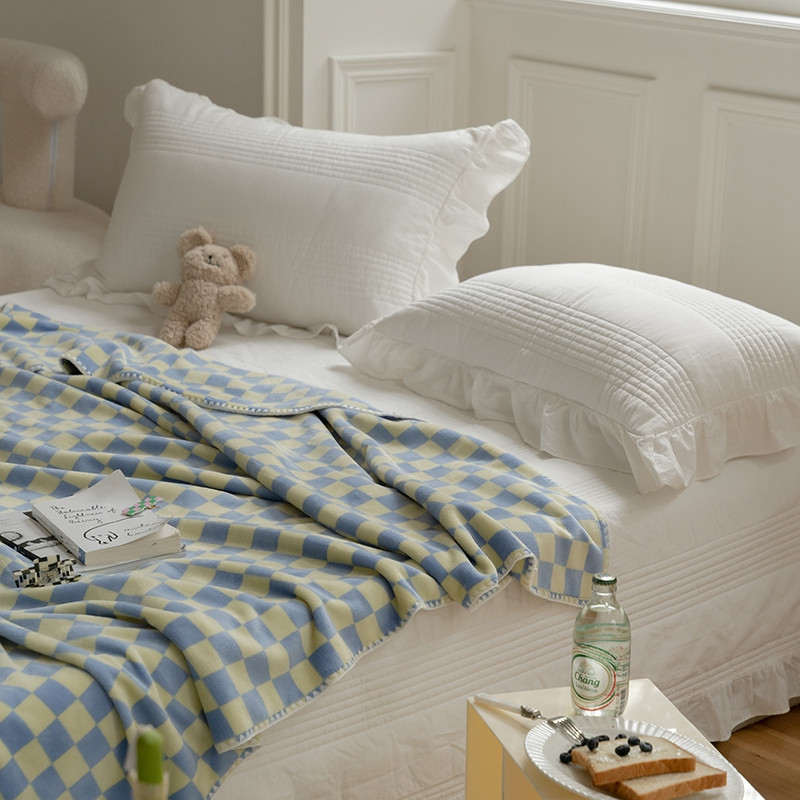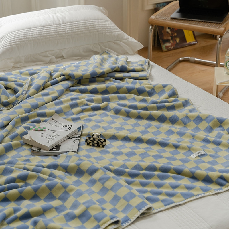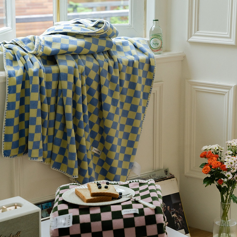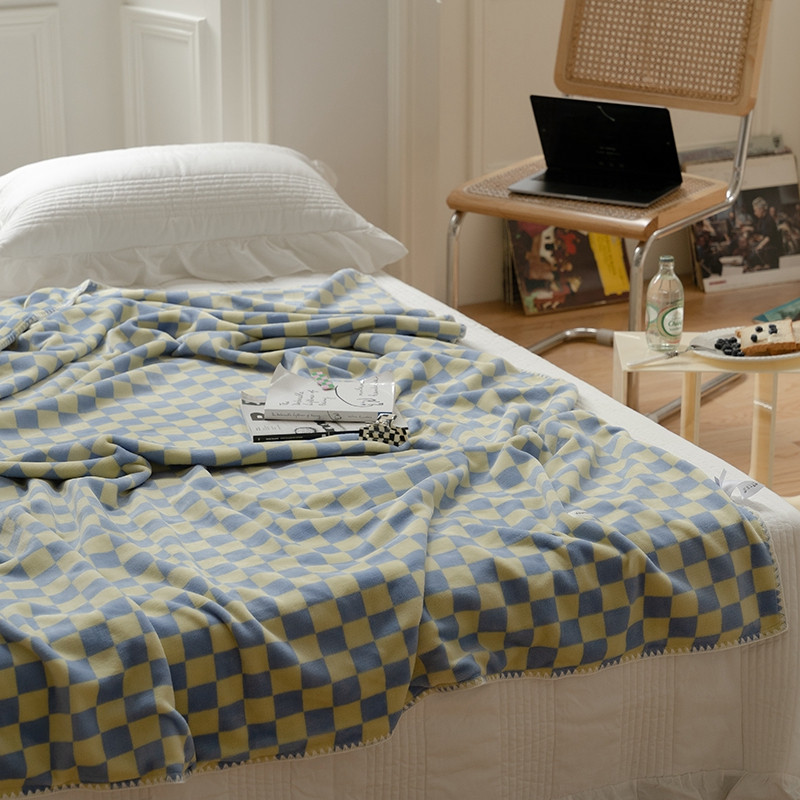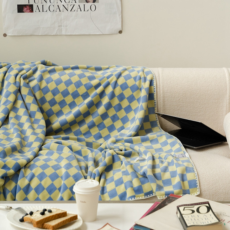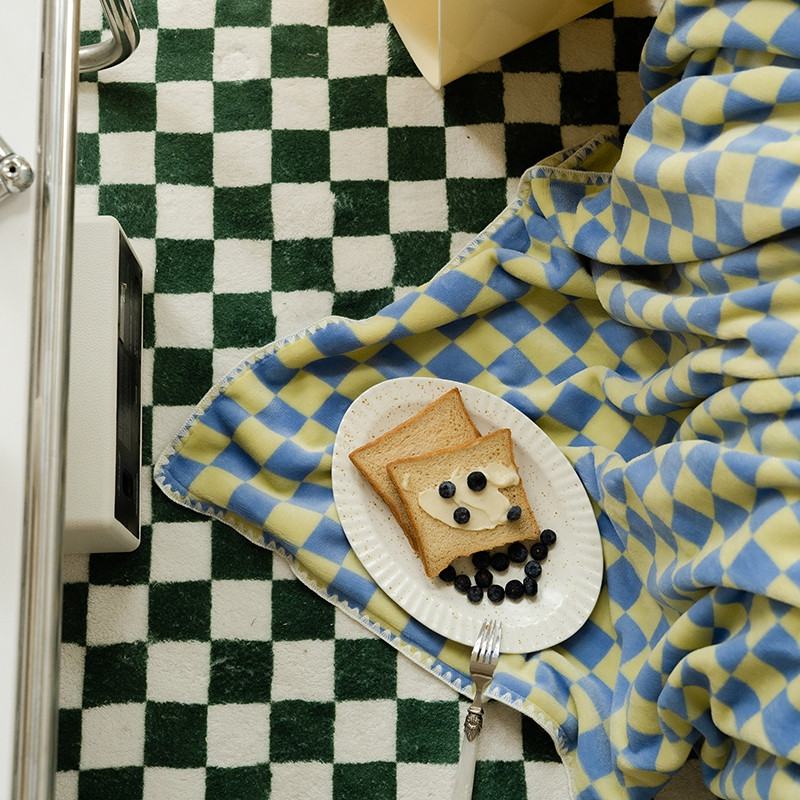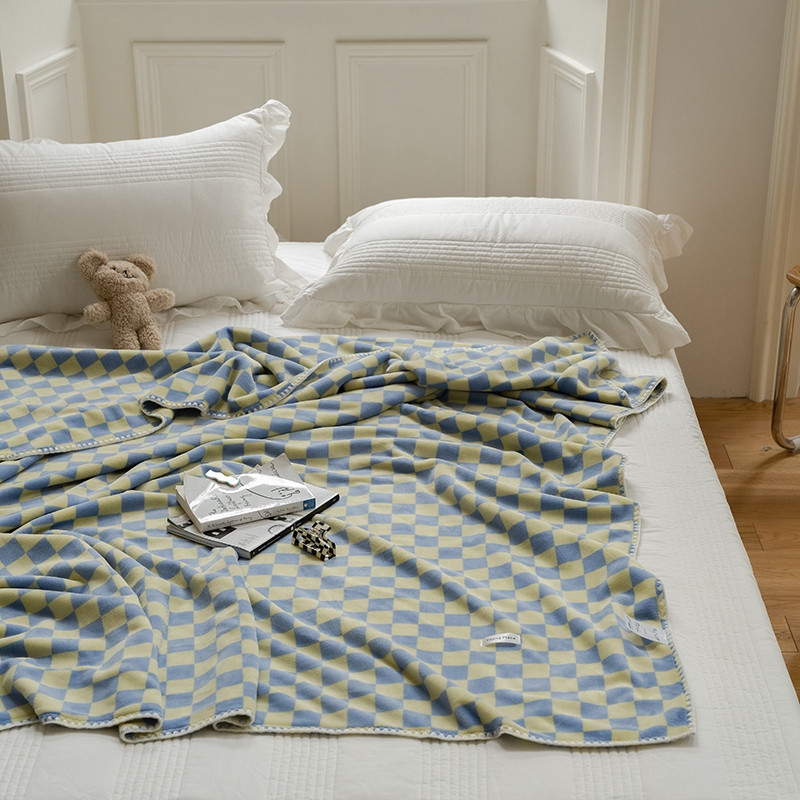洋铭区 2021冬季新品棋盘格双色牛奶绒毯子 水雾蓝