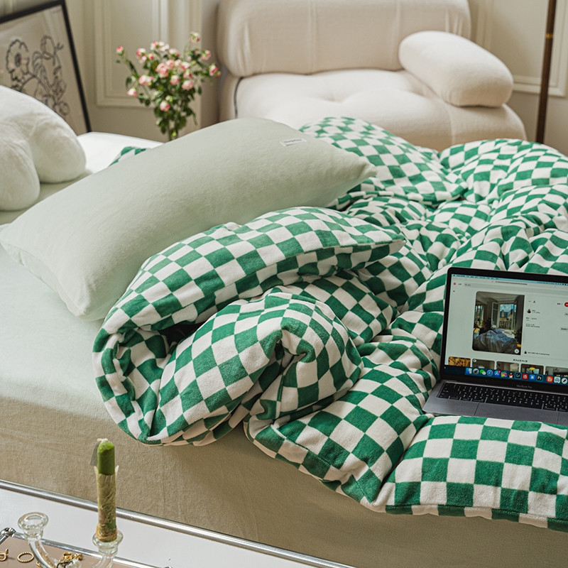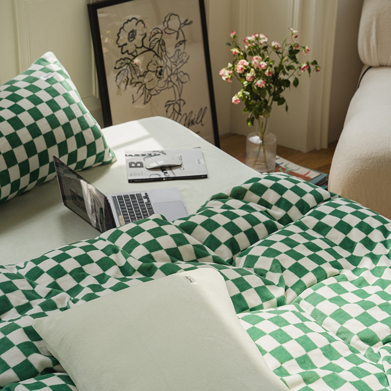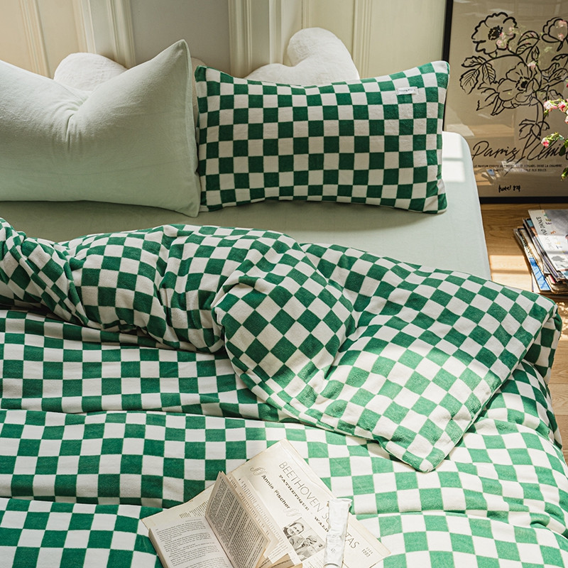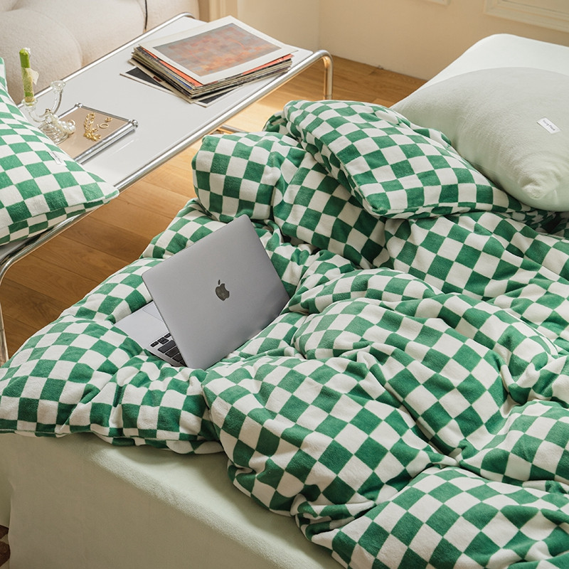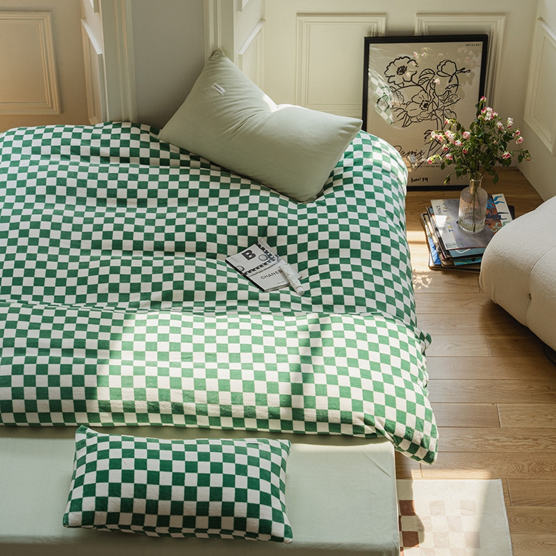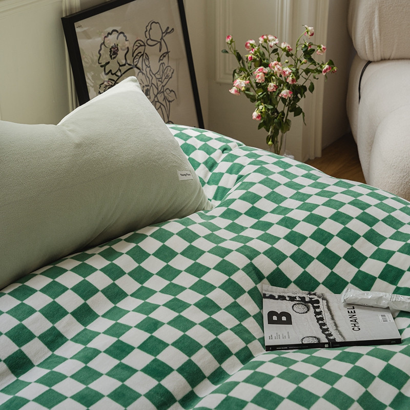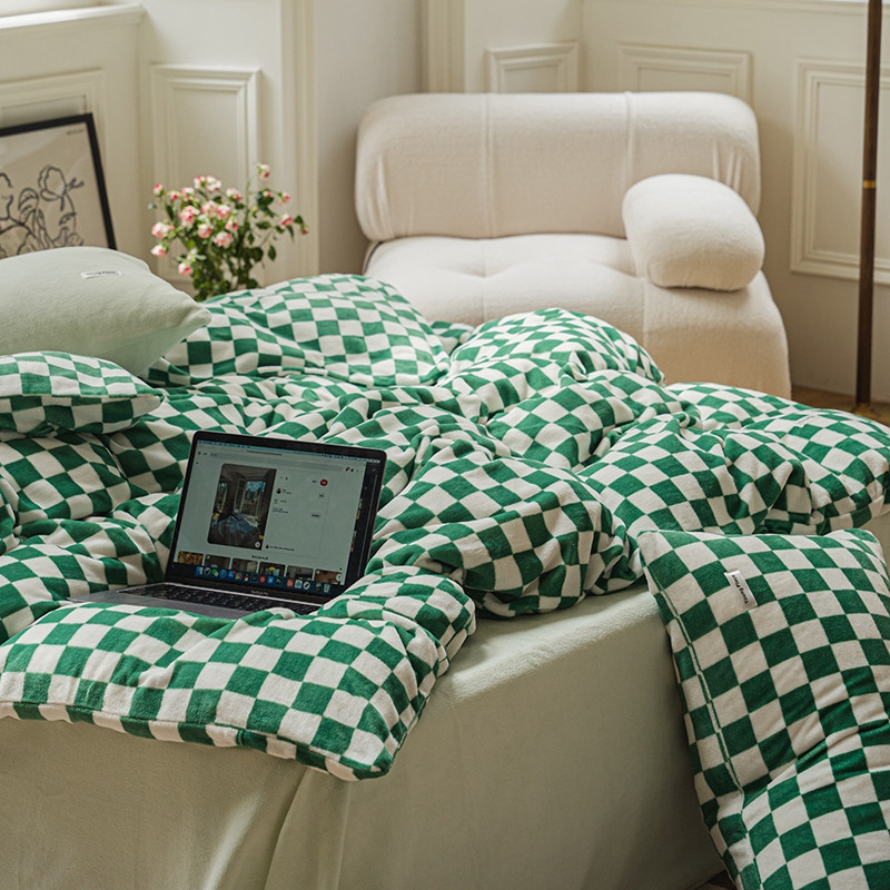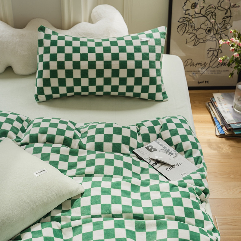 洋铭区 2021冬季新品棋盘格牛奶绒四件套 初恋绿格