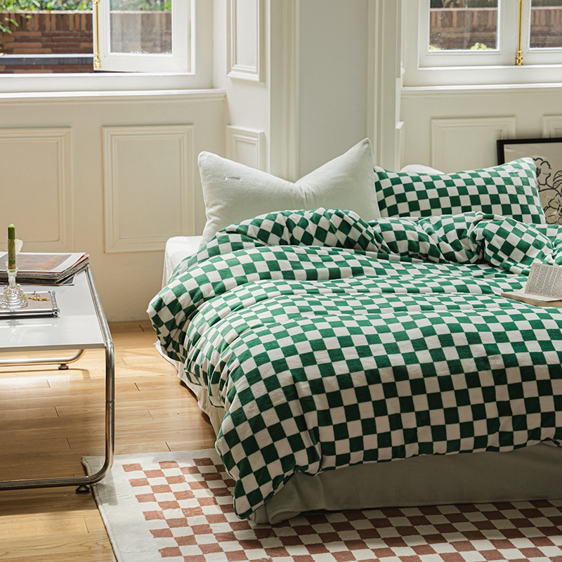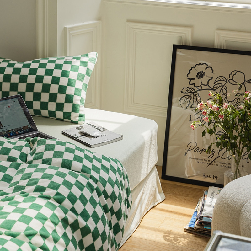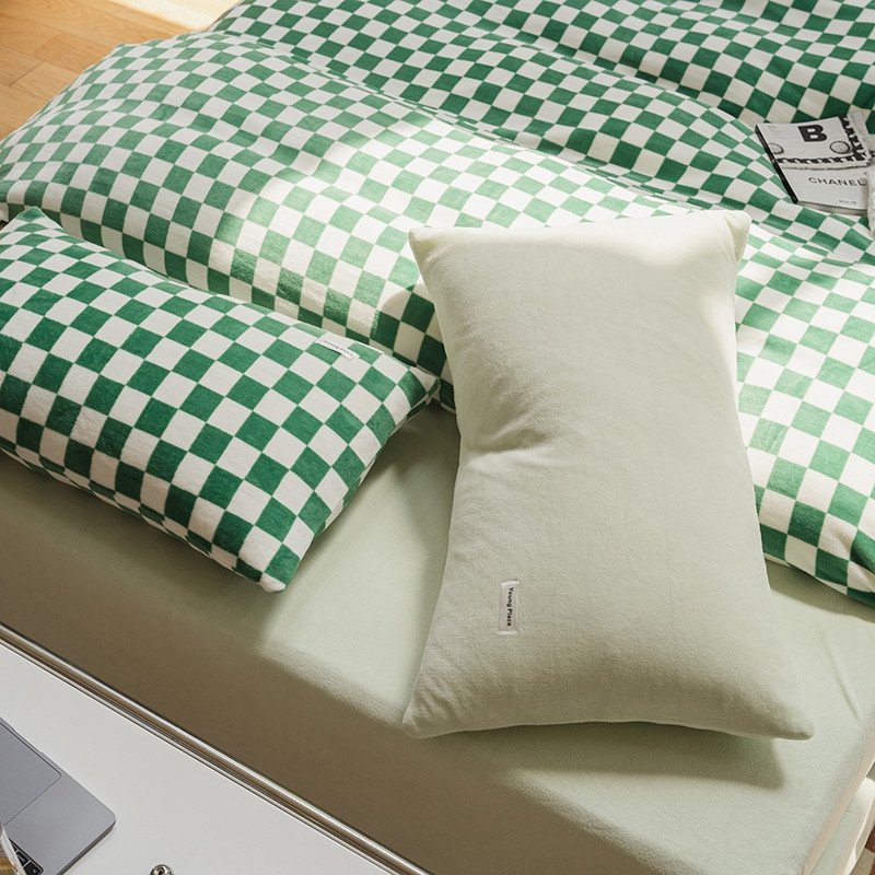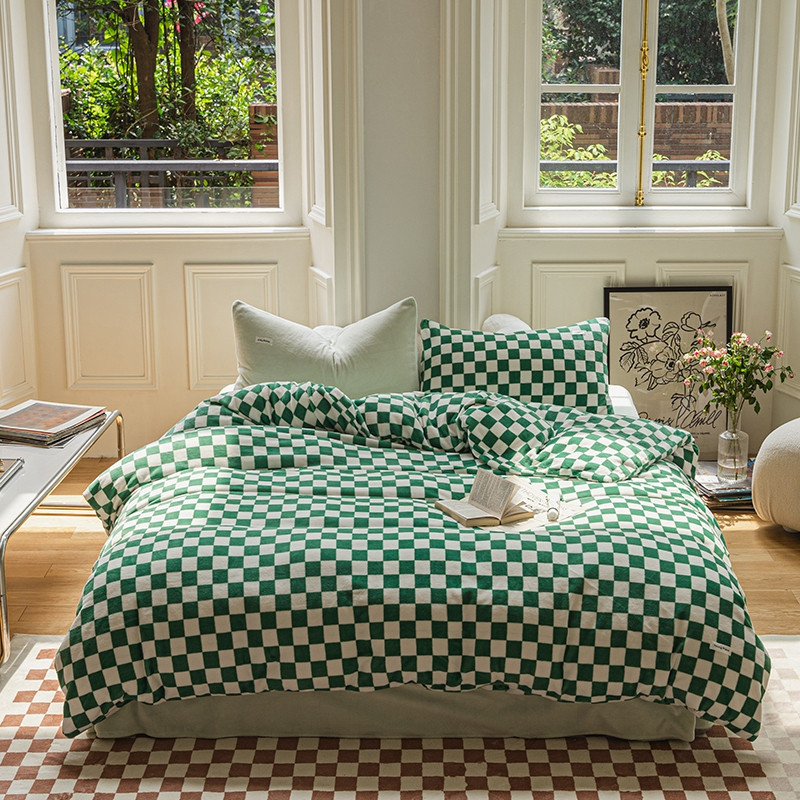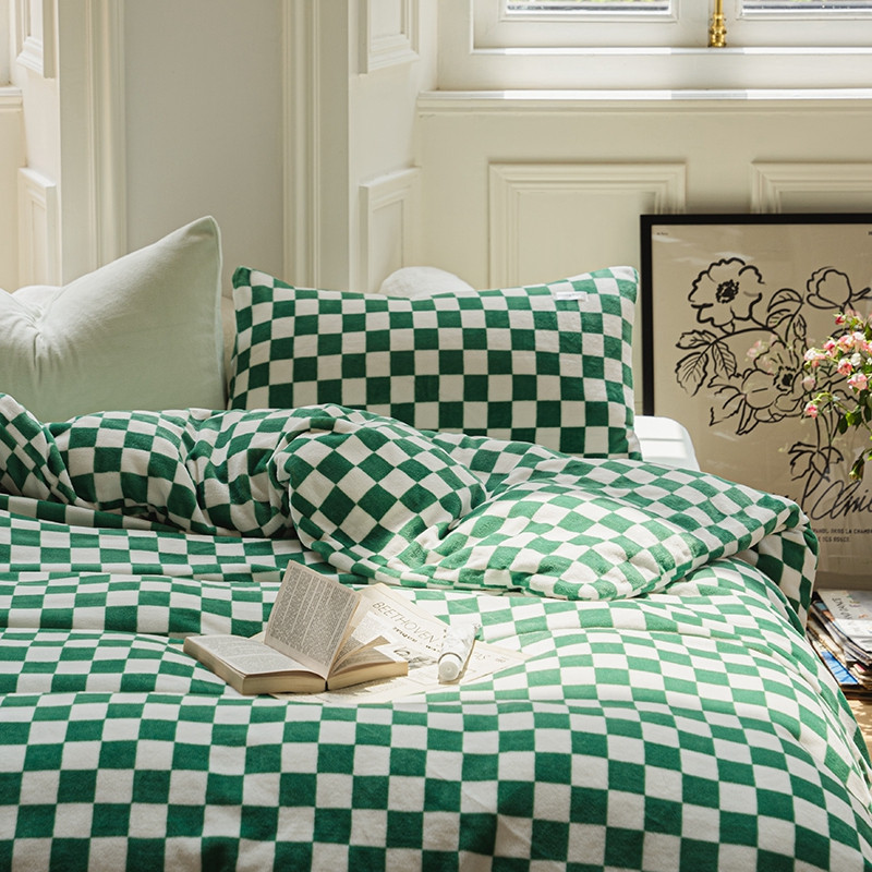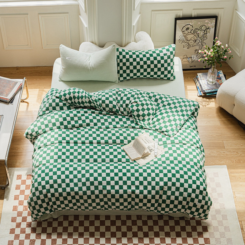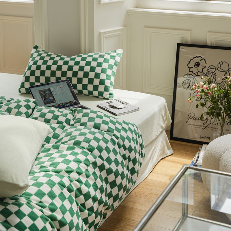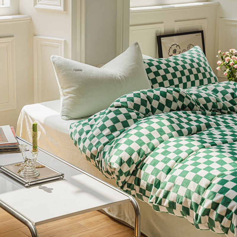 洋铭区 2021冬季新品棋盘格牛奶绒四件套 初恋绿格