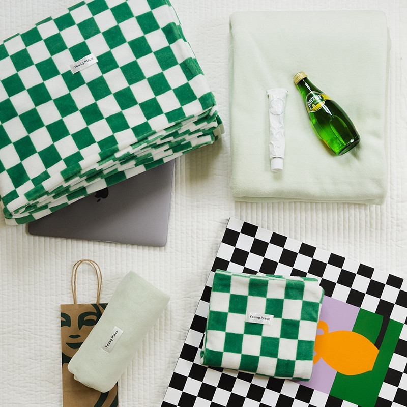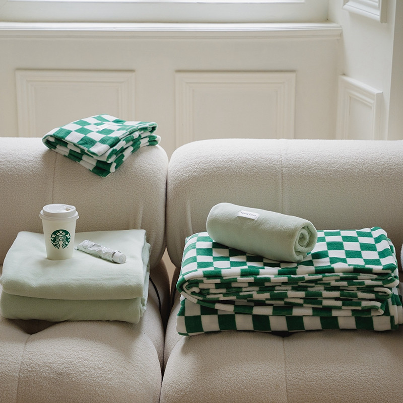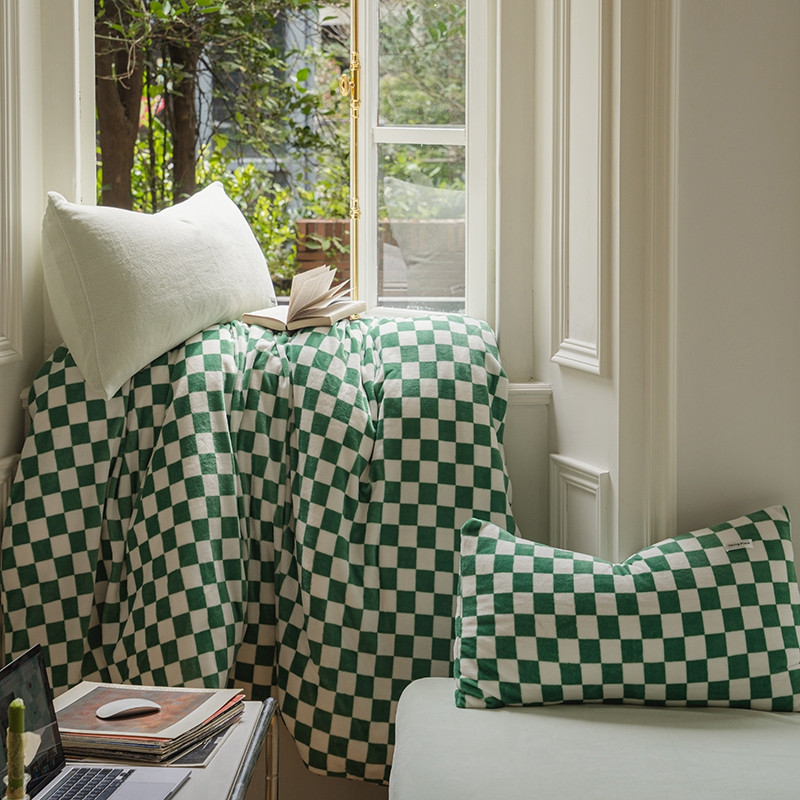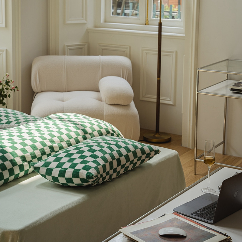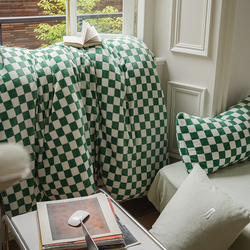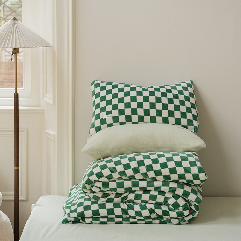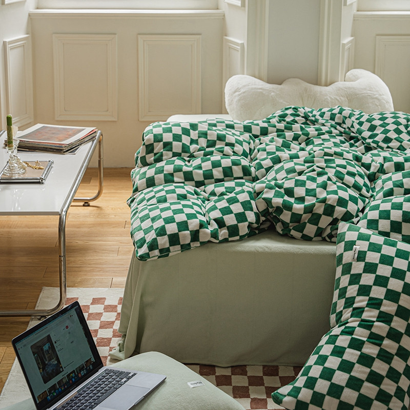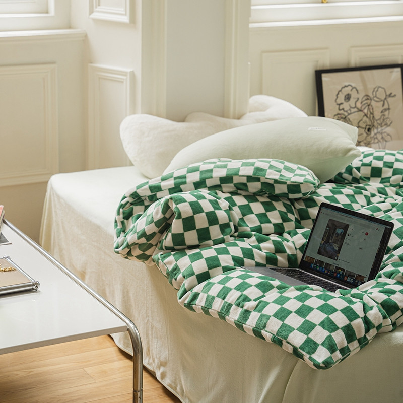 洋铭区 2021冬季新品棋盘格牛奶绒四件套 初恋绿格