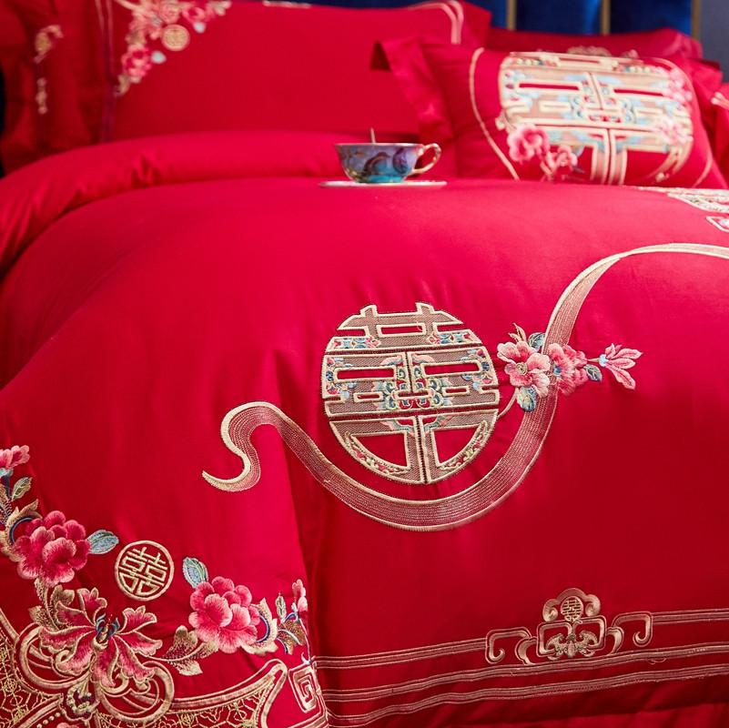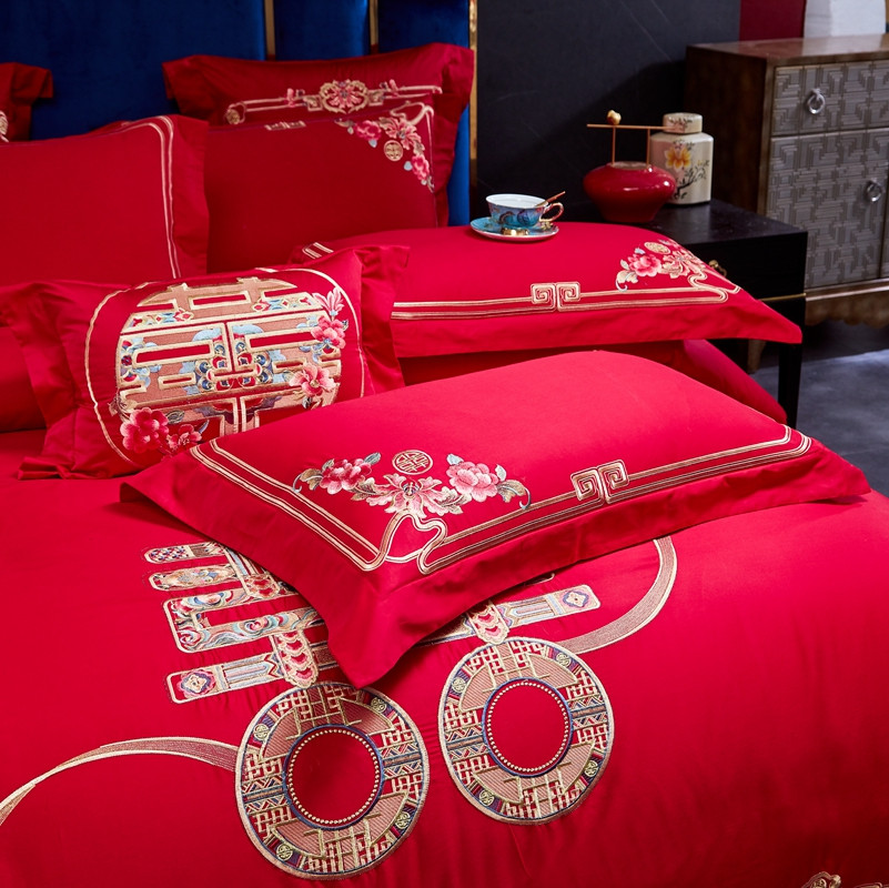 当前位置: 91家纺网 > 商品网购 > 床品套件 > 四件套 > 长绒棉四件套 > 高大尚 2021新款长绒棉磨毛婚庆多件套余生有你