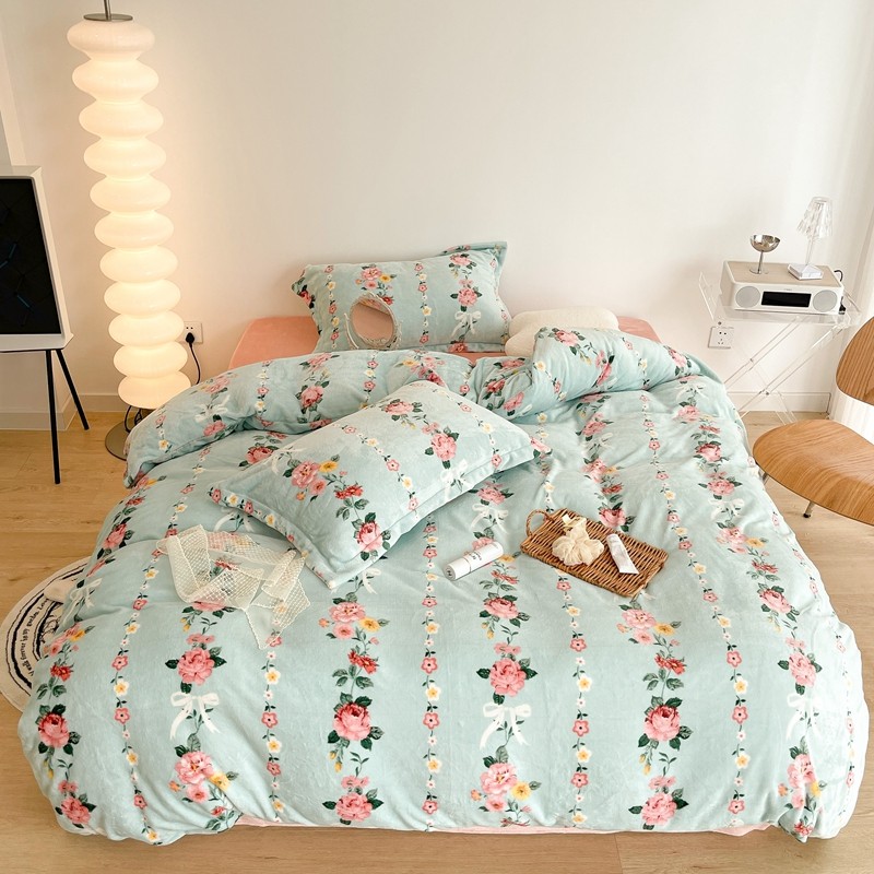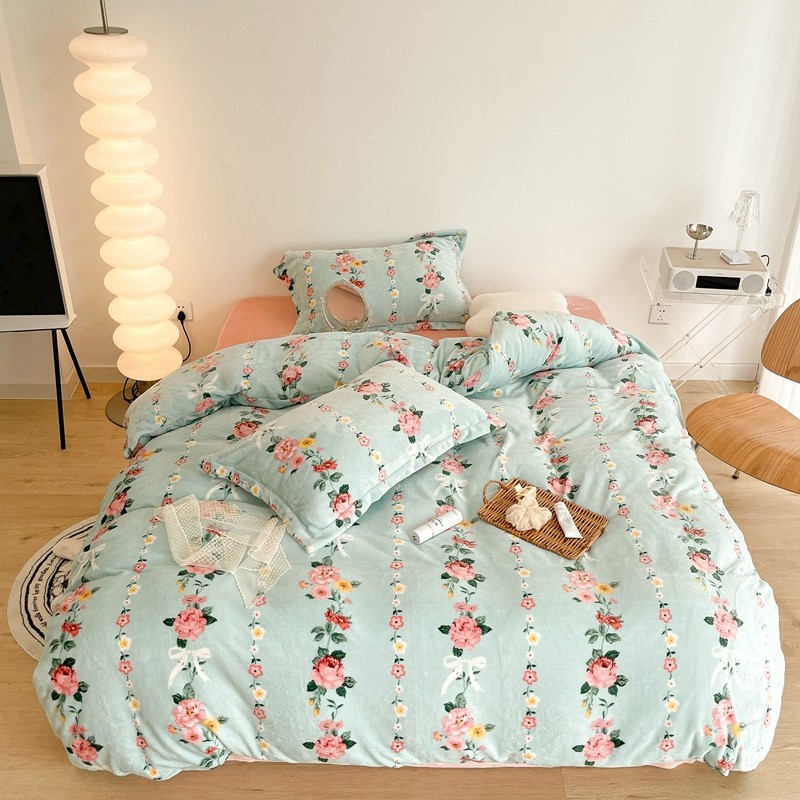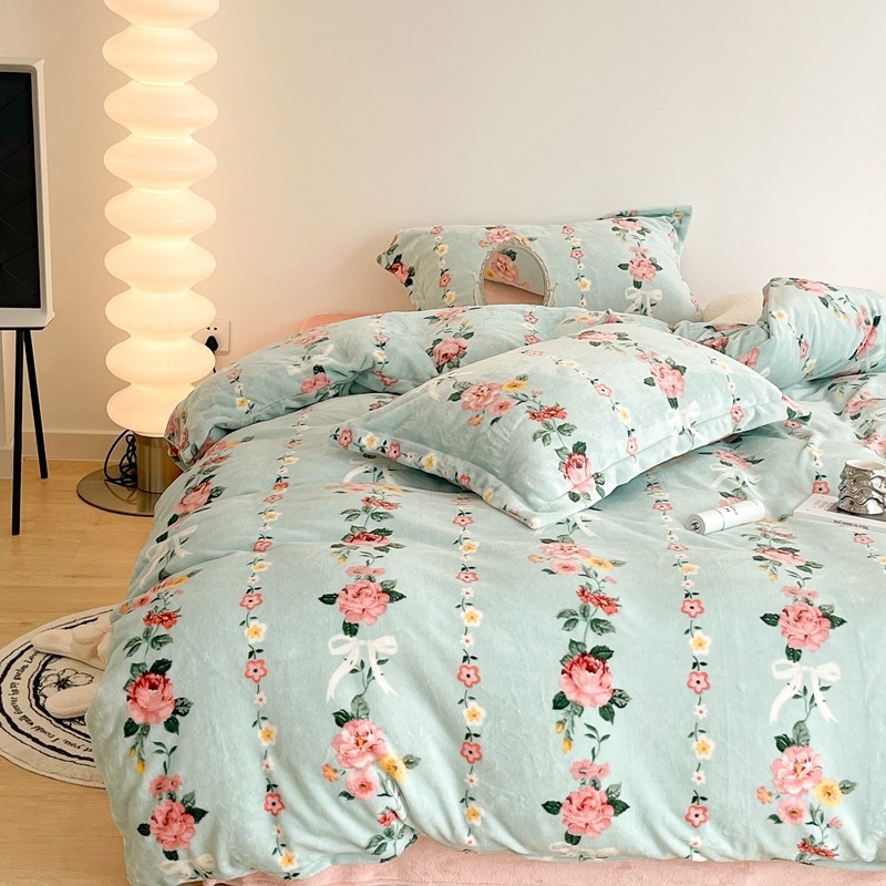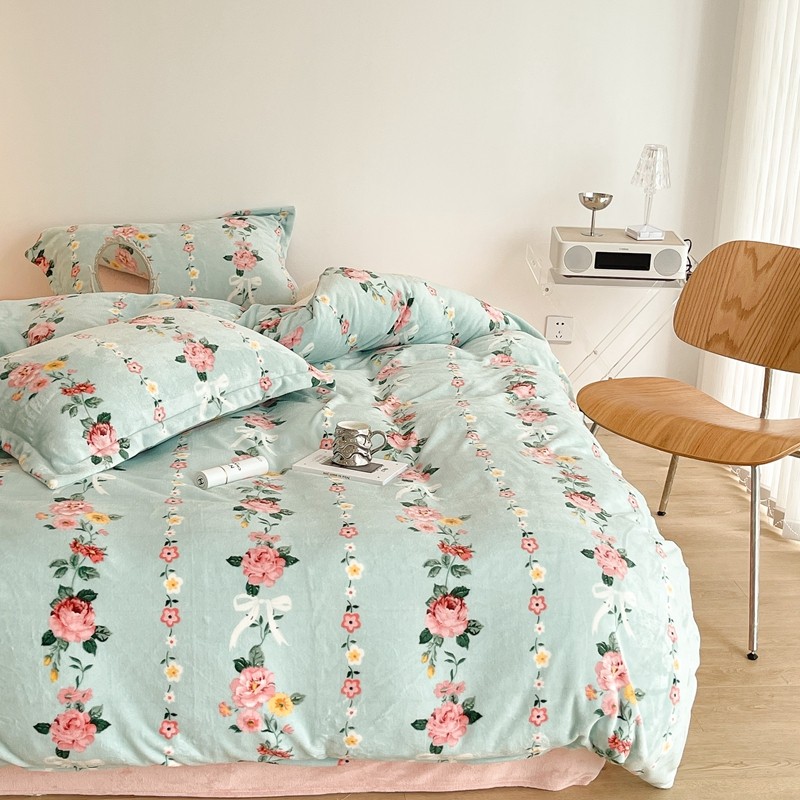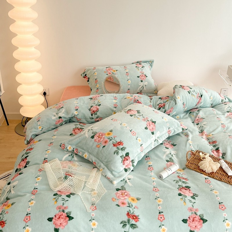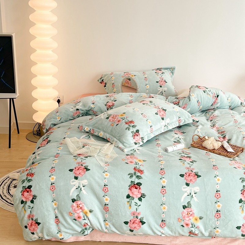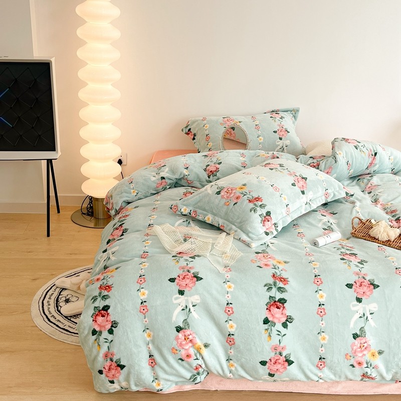 昔可家纺 2021新款牛奶绒四件套-二批 蓝色初恋花