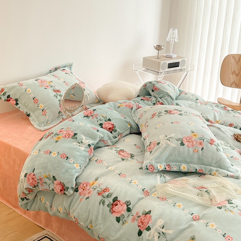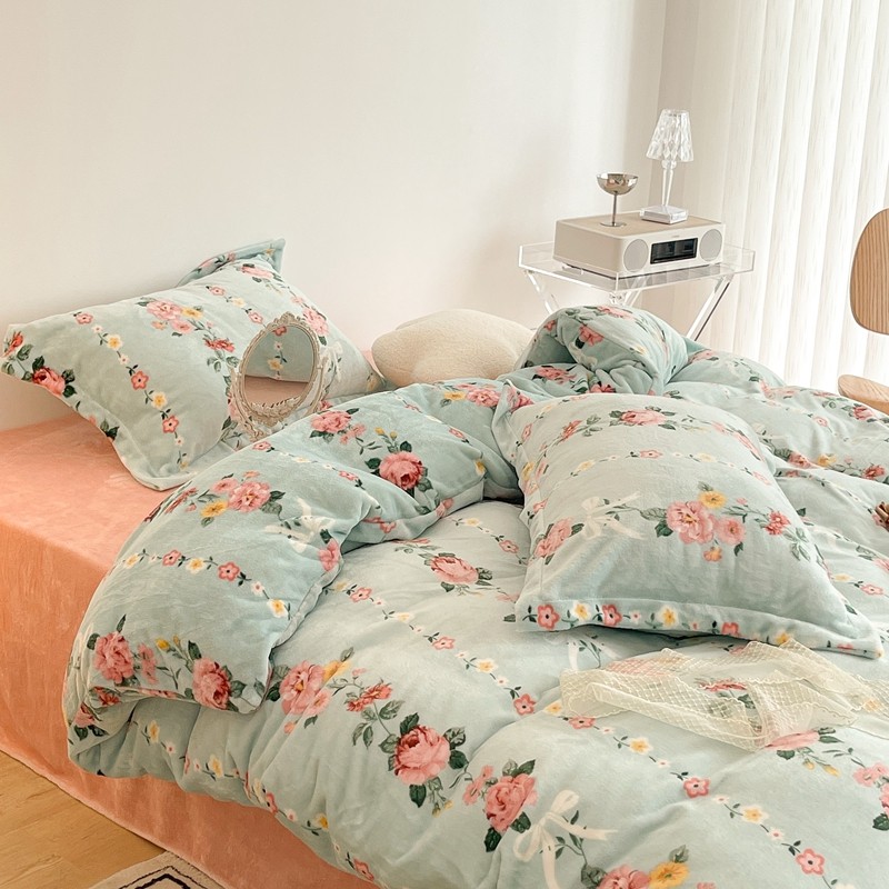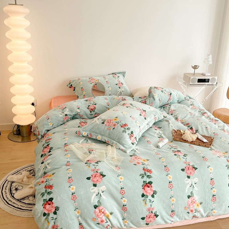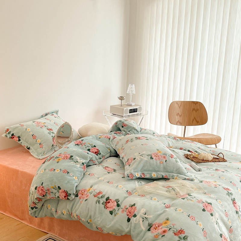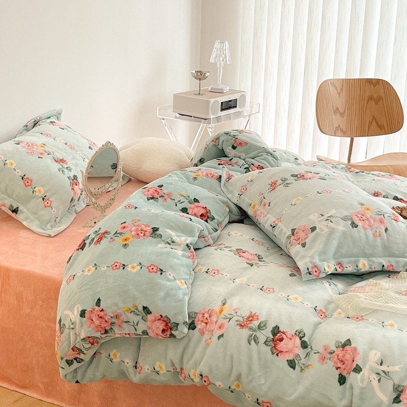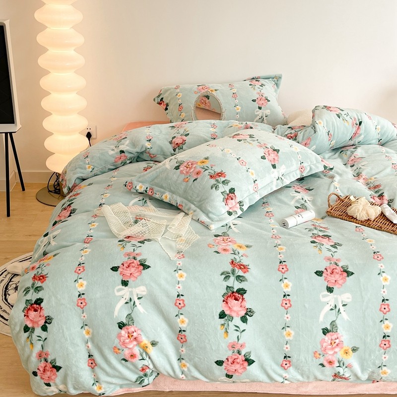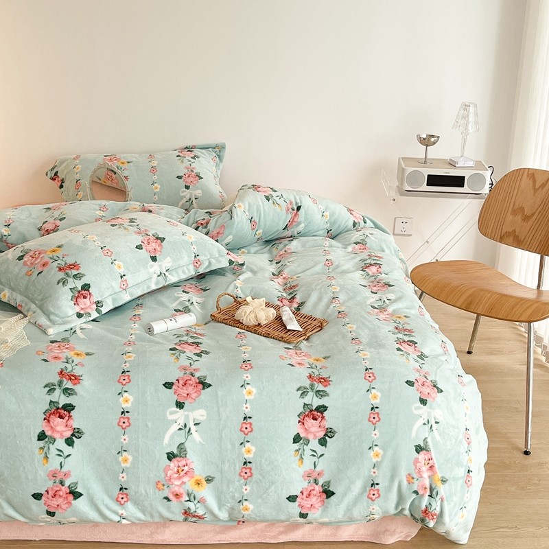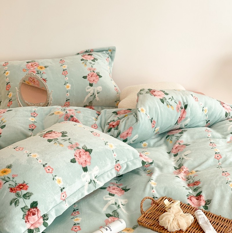 昔可家纺 2021新款牛奶绒四件套-二批 蓝色初恋花
