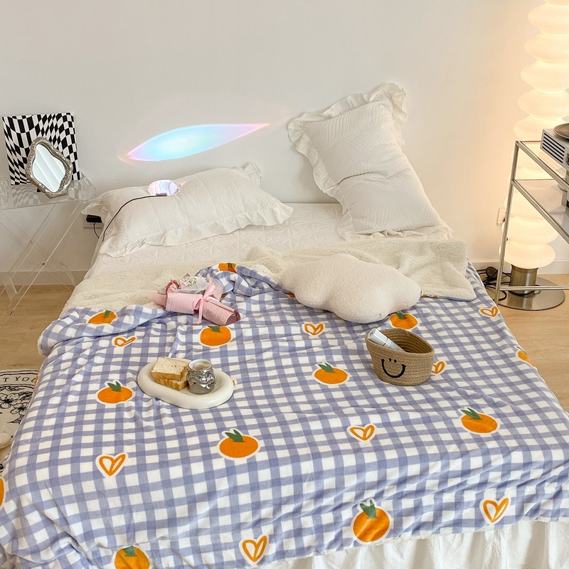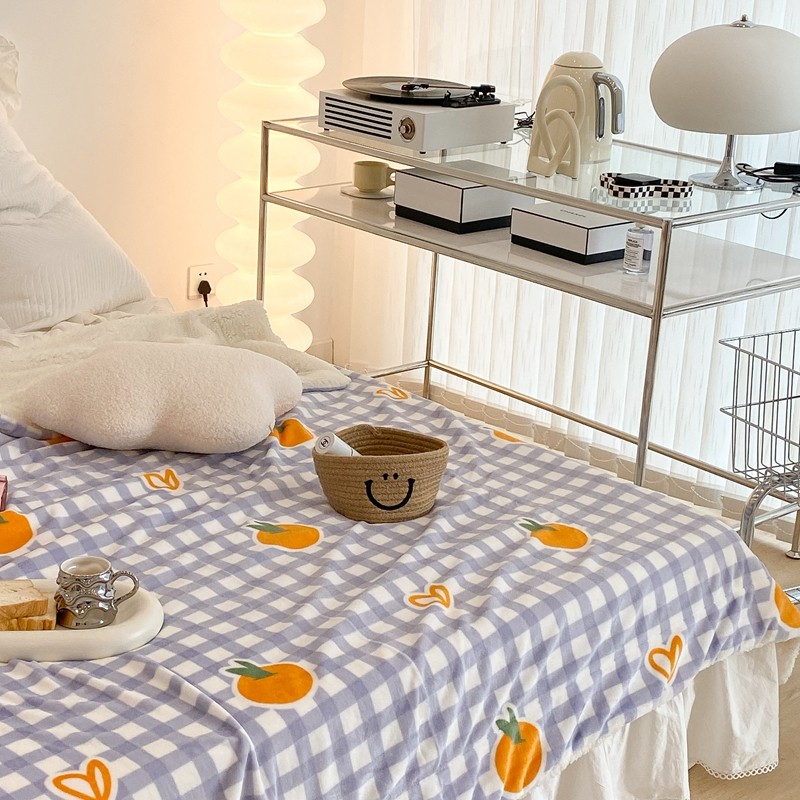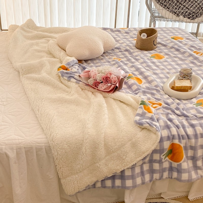 商品名称:昔可家纺 2021新款牛奶羊羔绒印花毯 格子桔