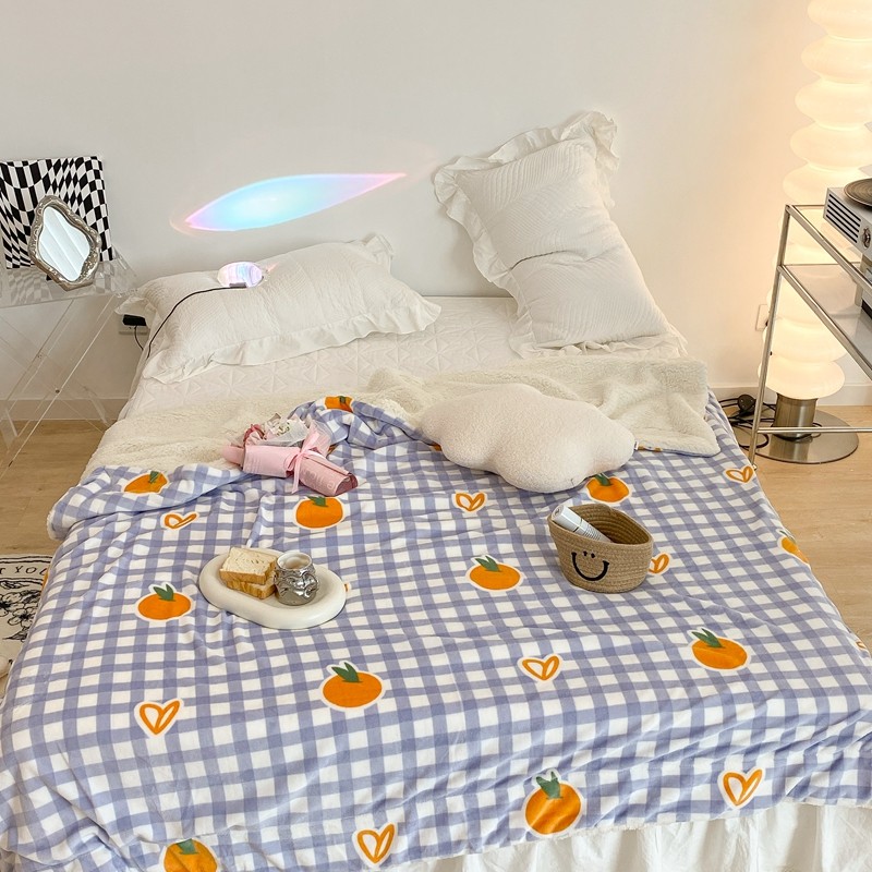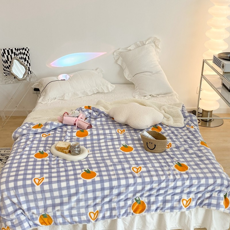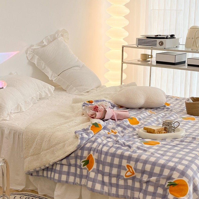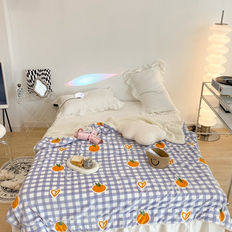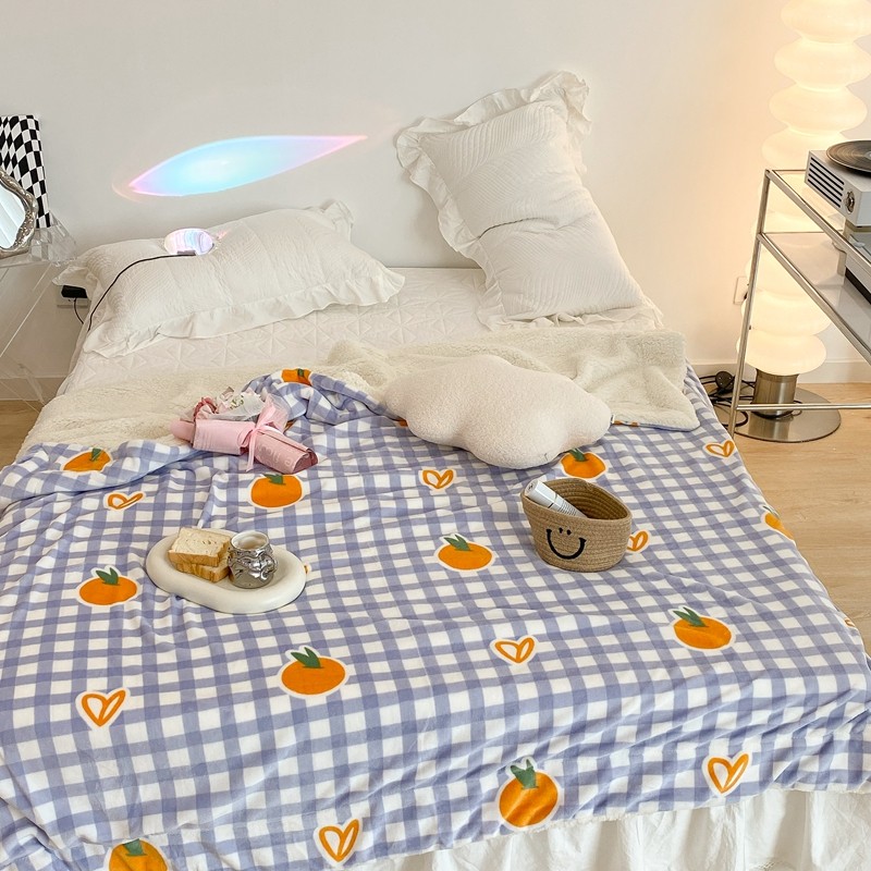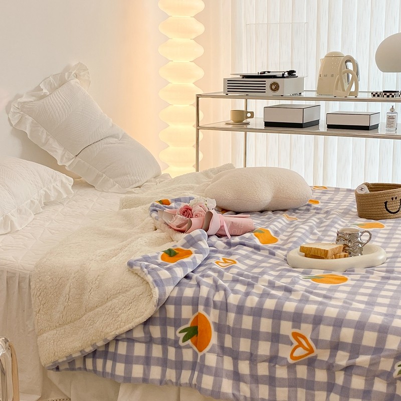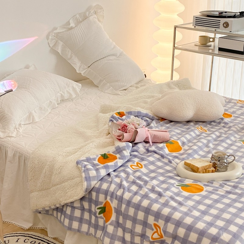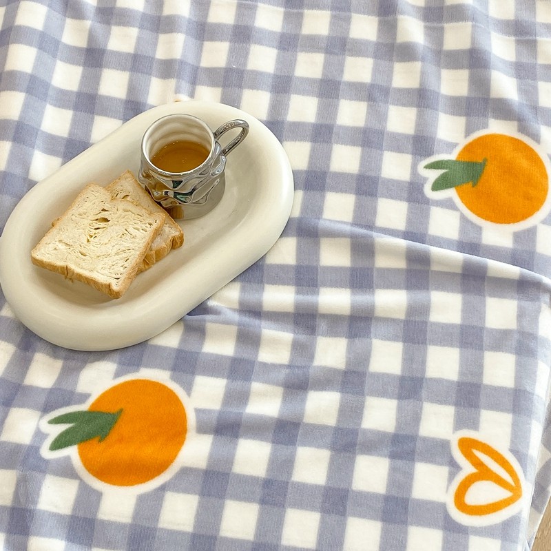 昔可家纺 2021新款牛奶羊羔绒印花毯 格子桔