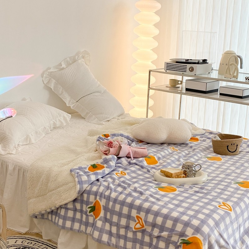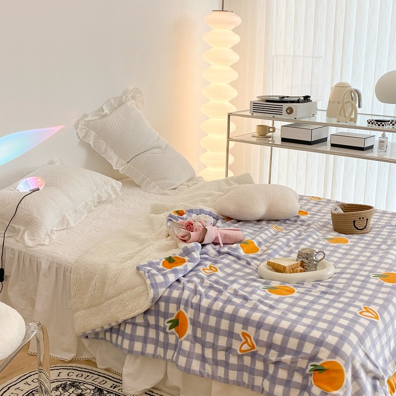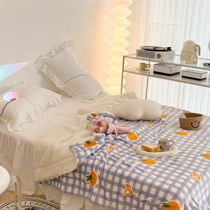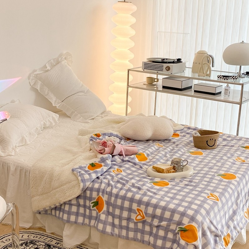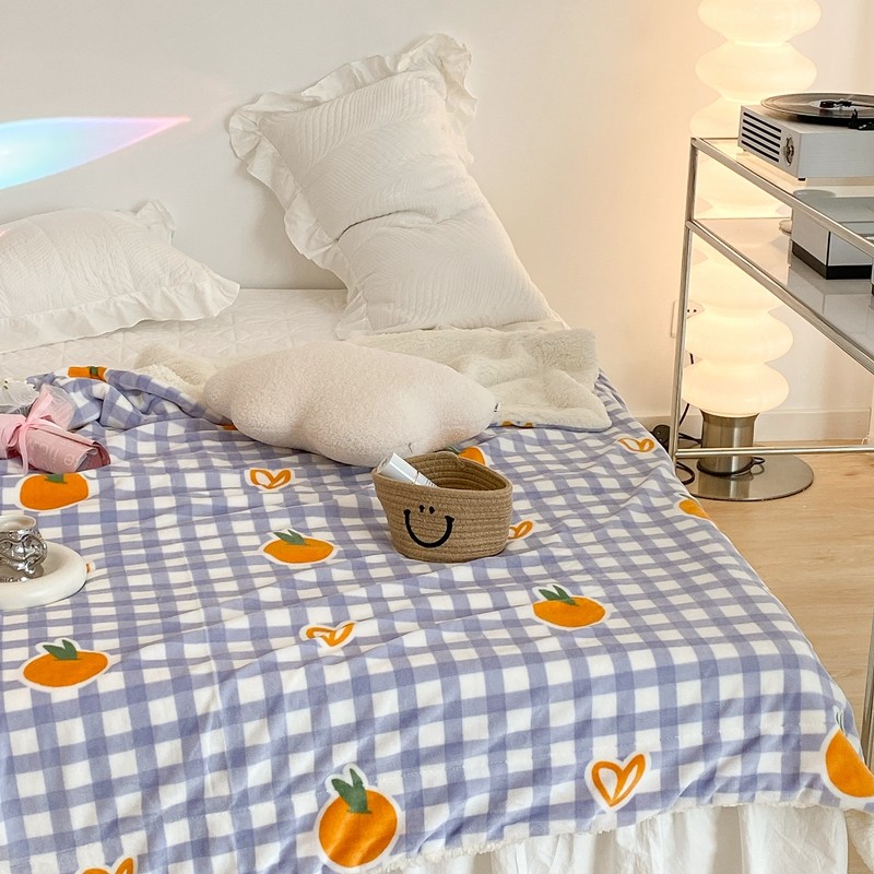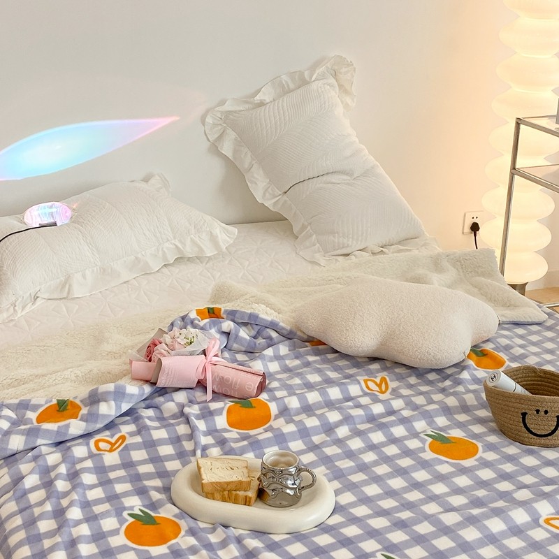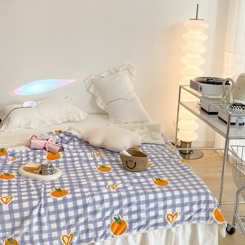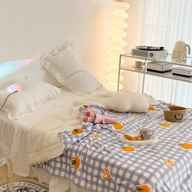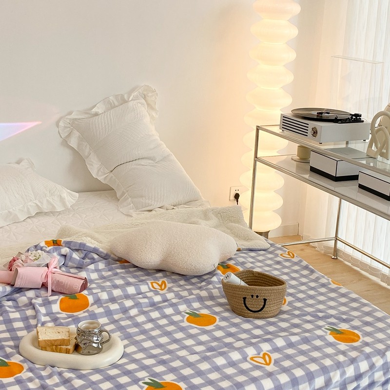 昔可家纺 2021新款牛奶羊羔绒印花毯 格子桔