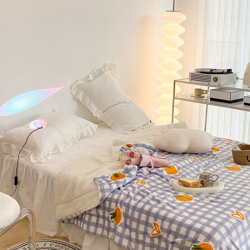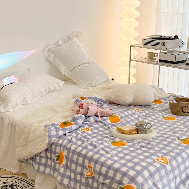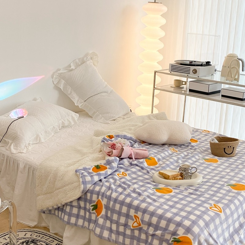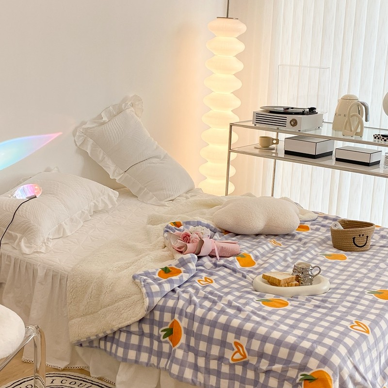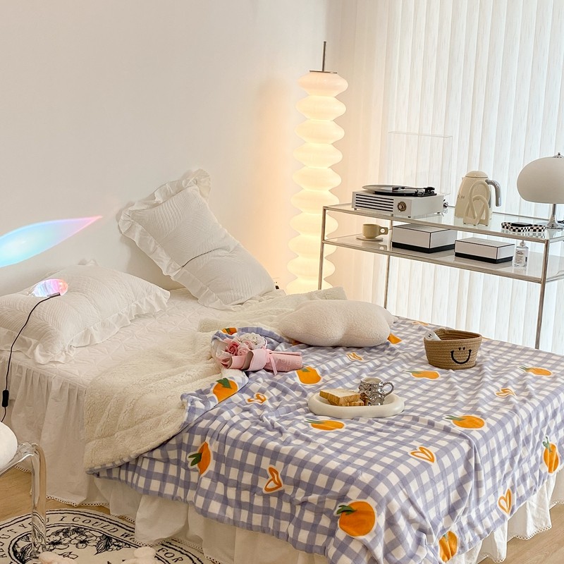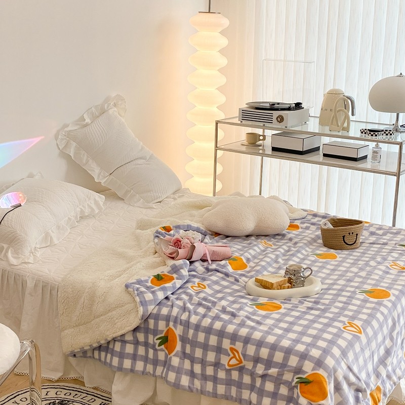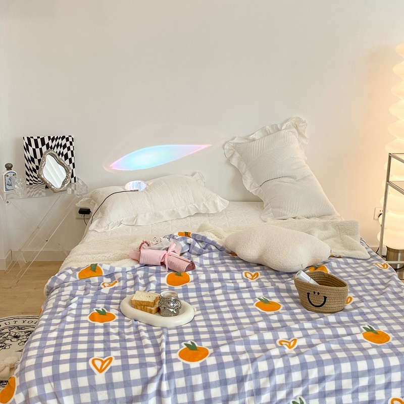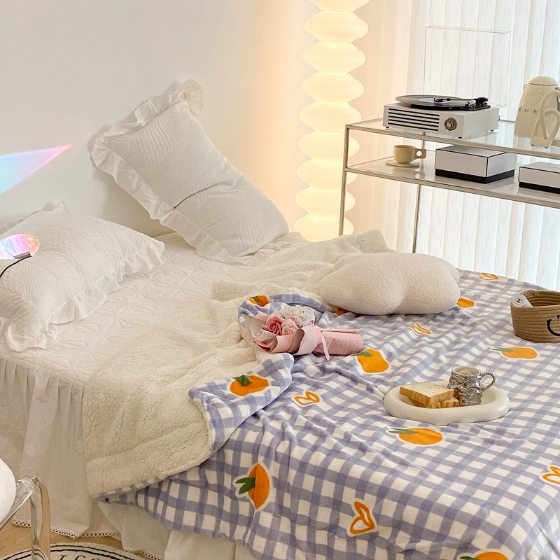 昔可家纺 2021新款牛奶羊羔绒印花毯 格子桔