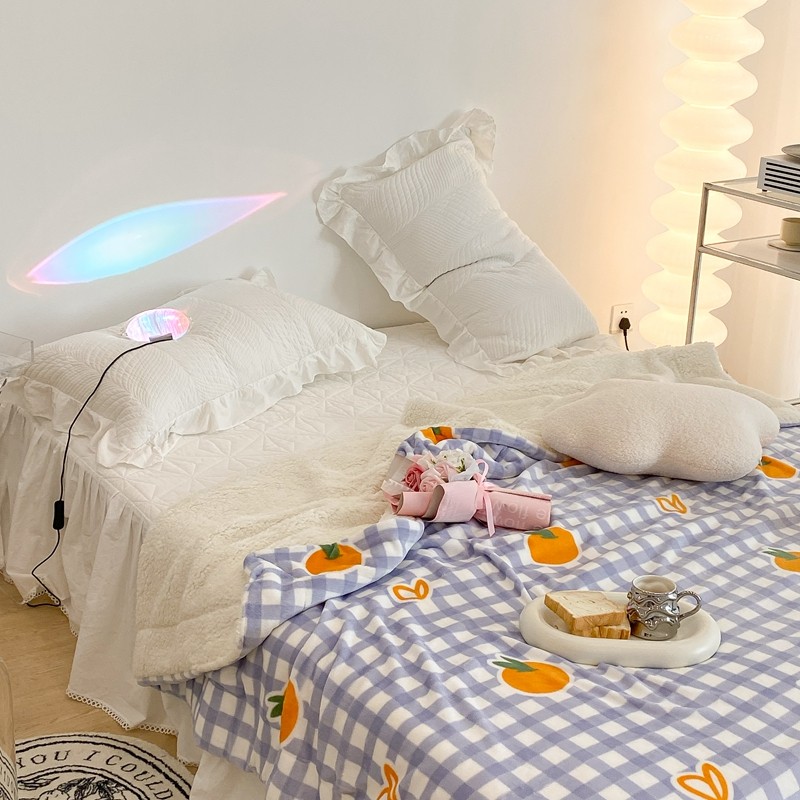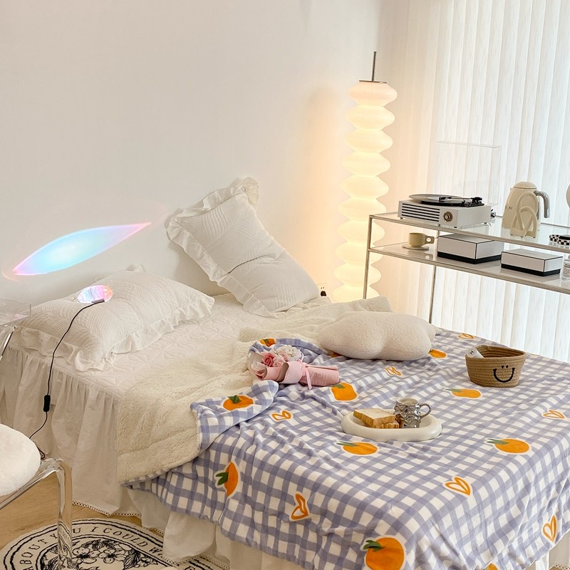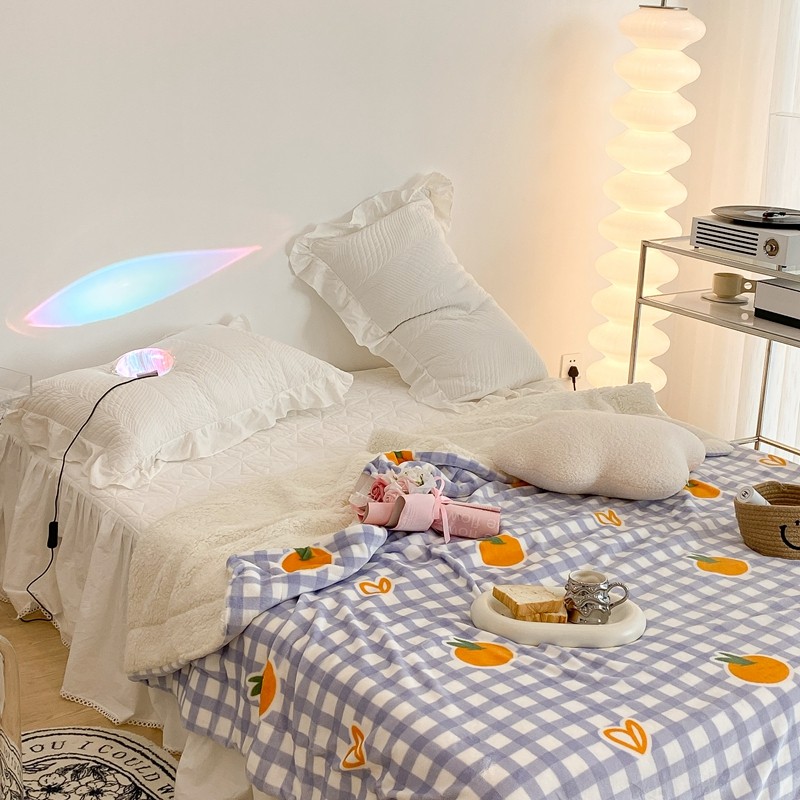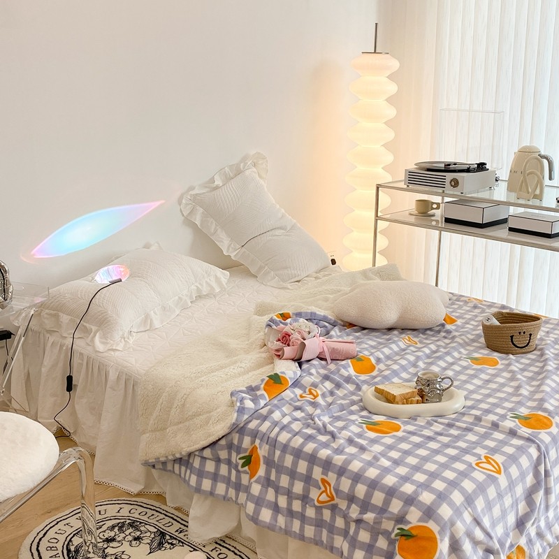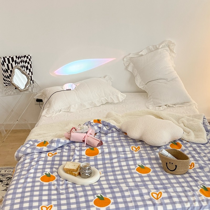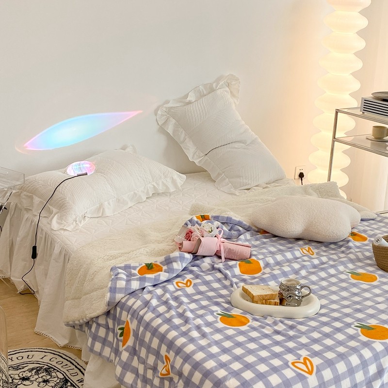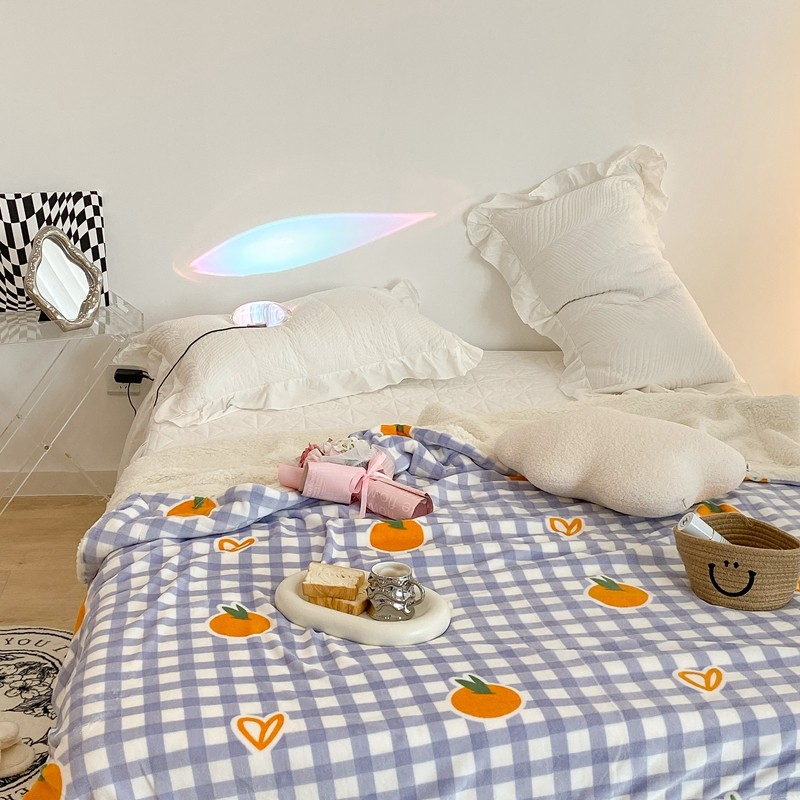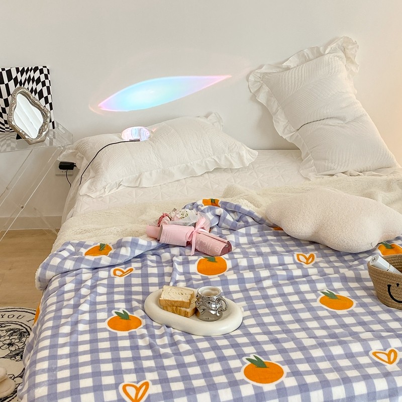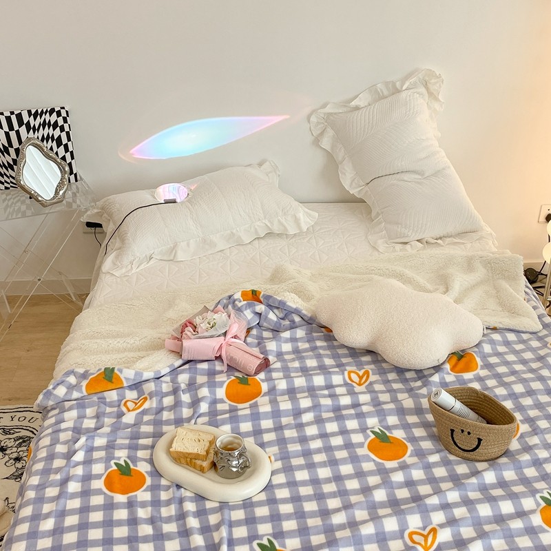 昔可家纺 2021新款牛奶羊羔绒印花毯 格子桔