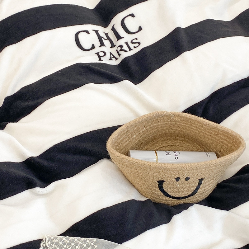商品名称:昔可 2021新款黑色花边牛奶绒四件套 香香条纹