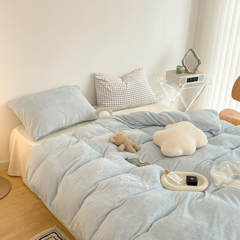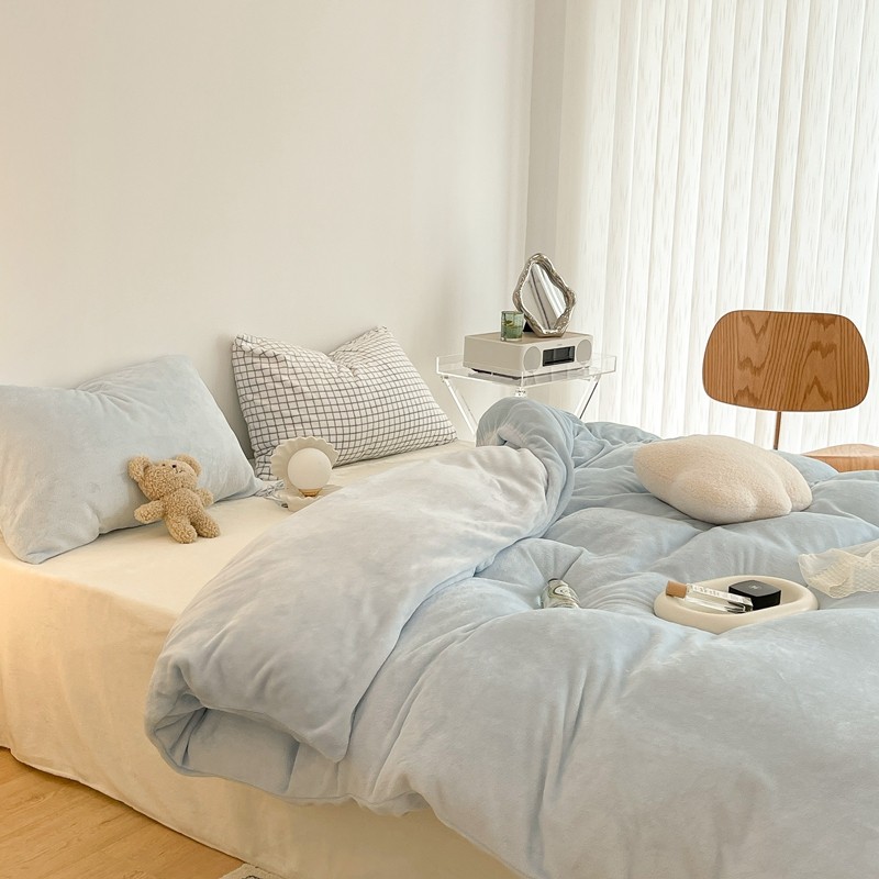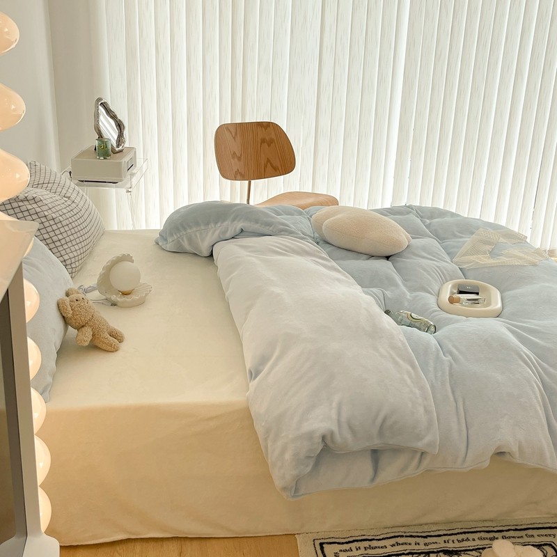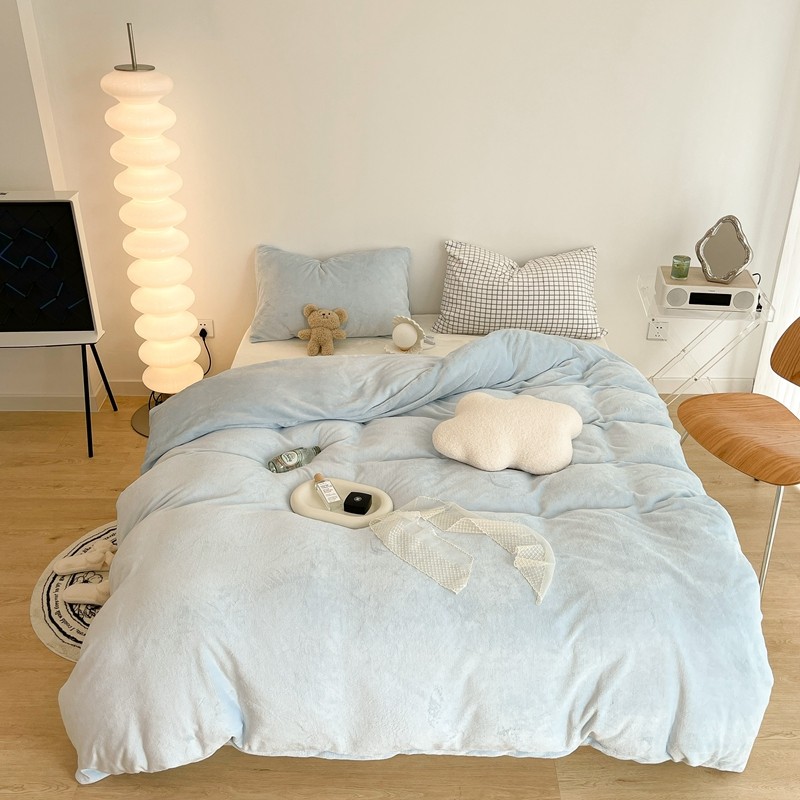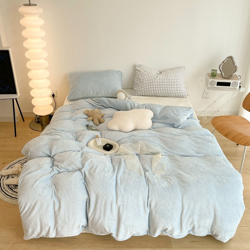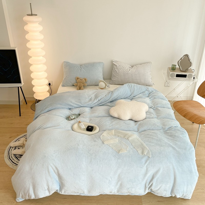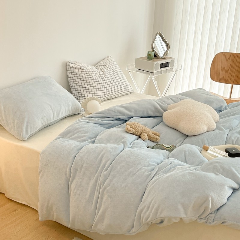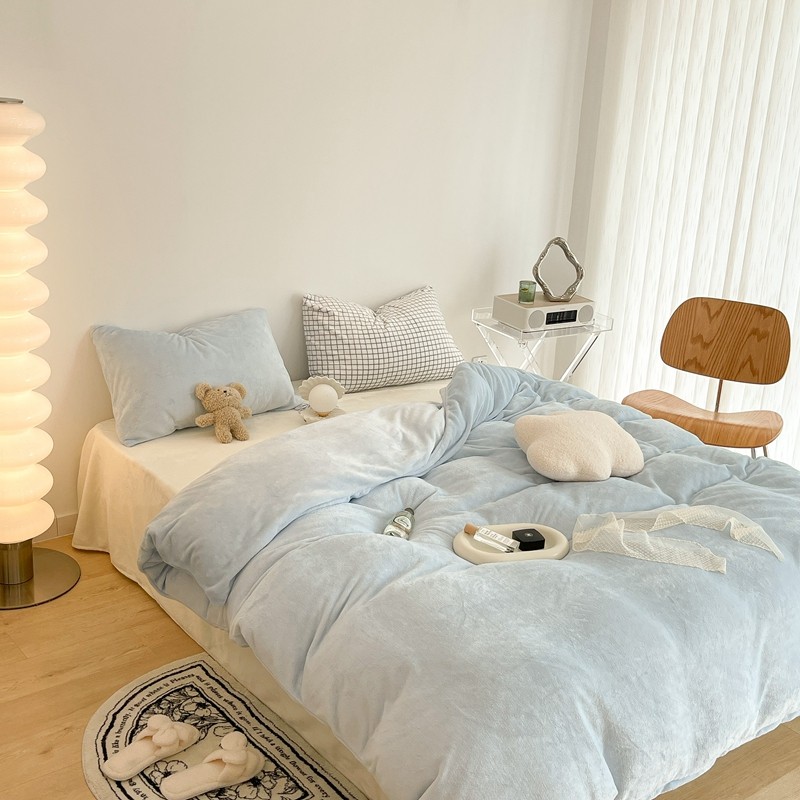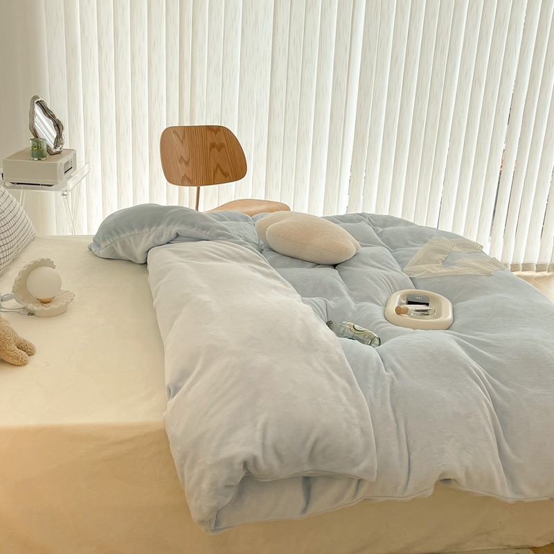 昔可家纺 2021新款撞色牛奶绒四件套 奶油蓝