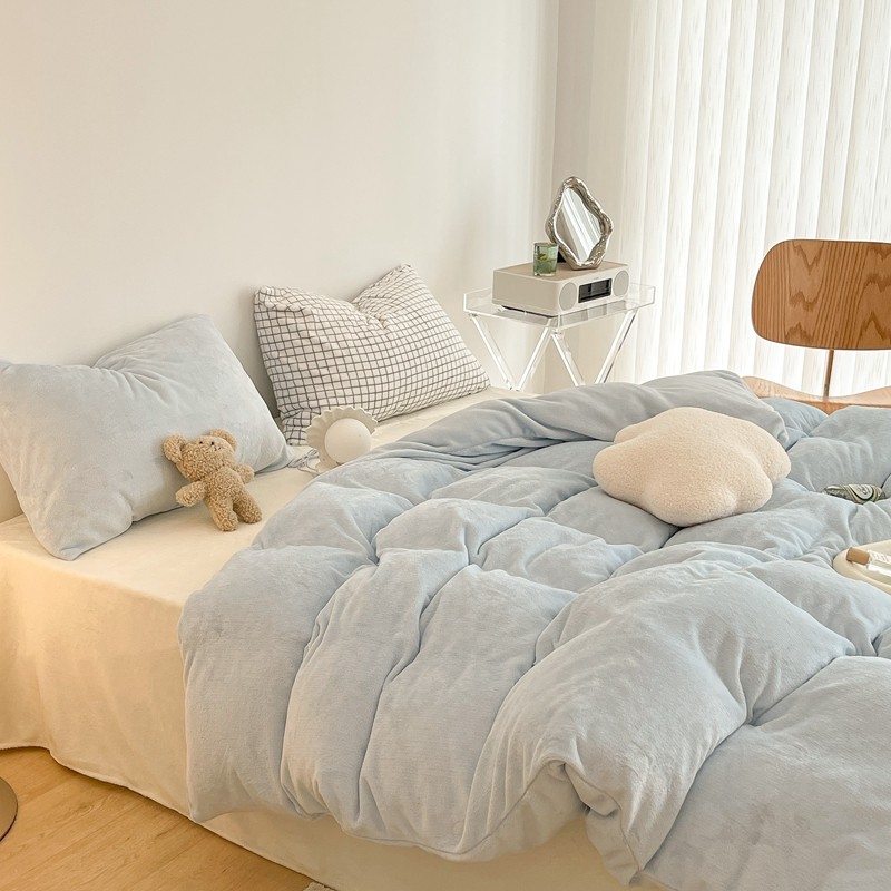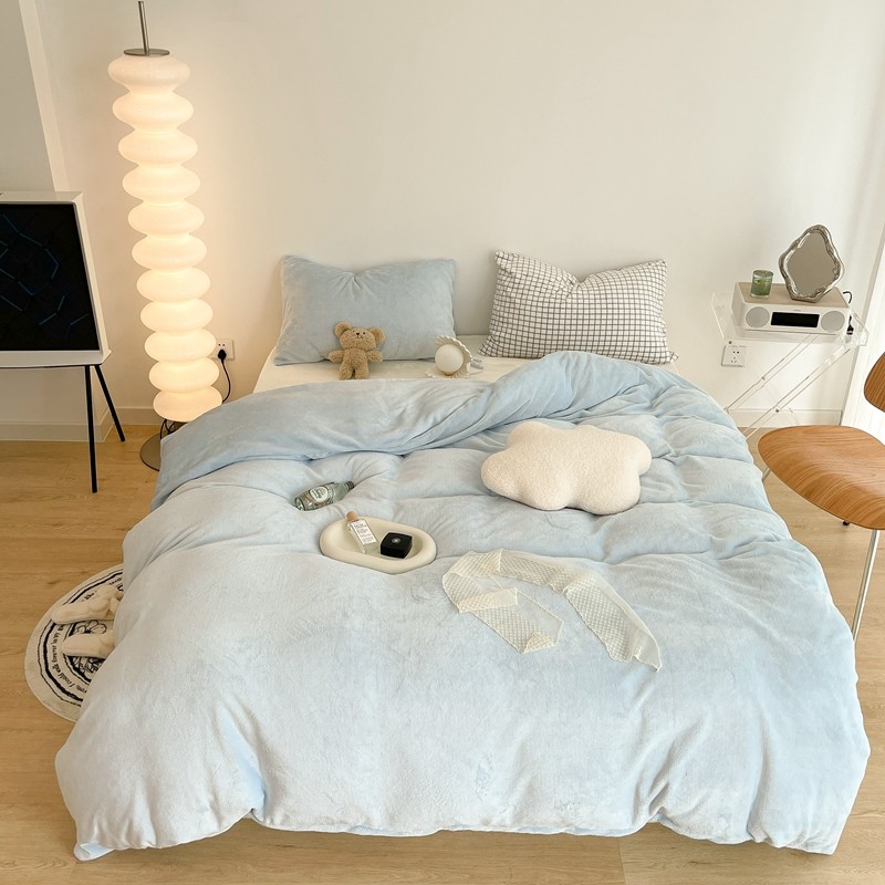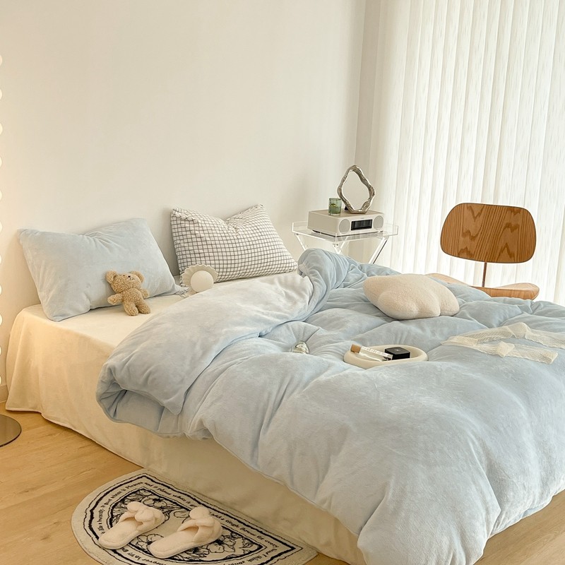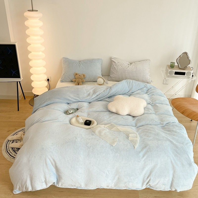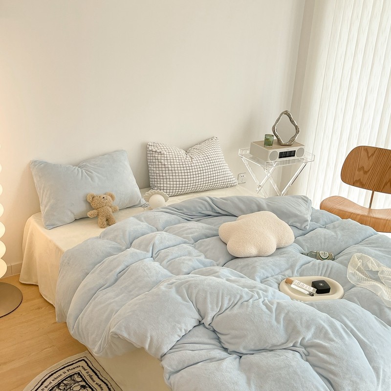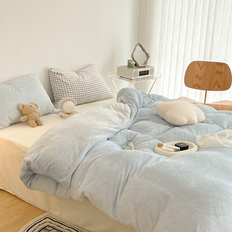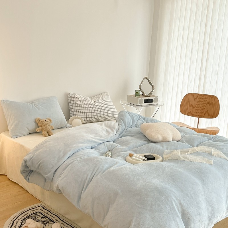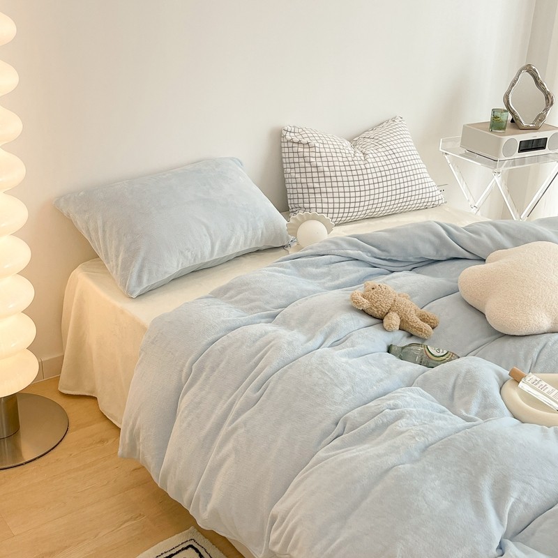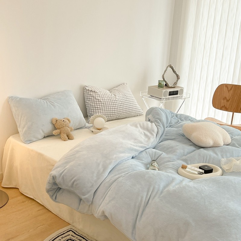 昔可家纺 2021新款撞色牛奶绒四件套 奶油蓝