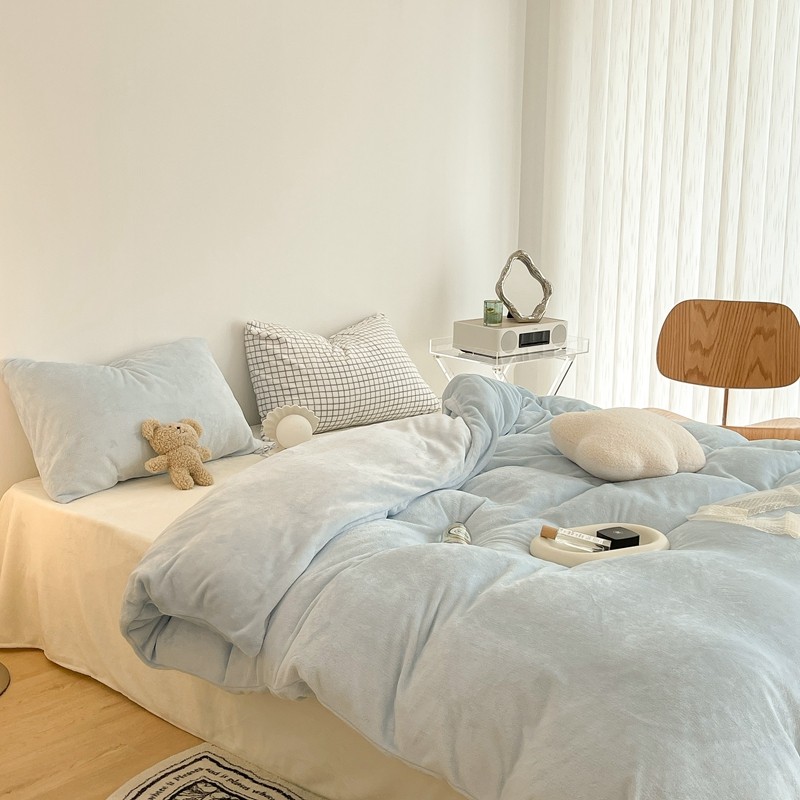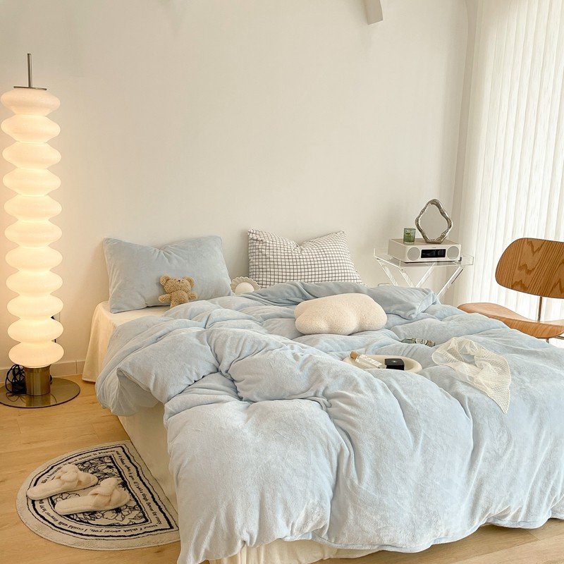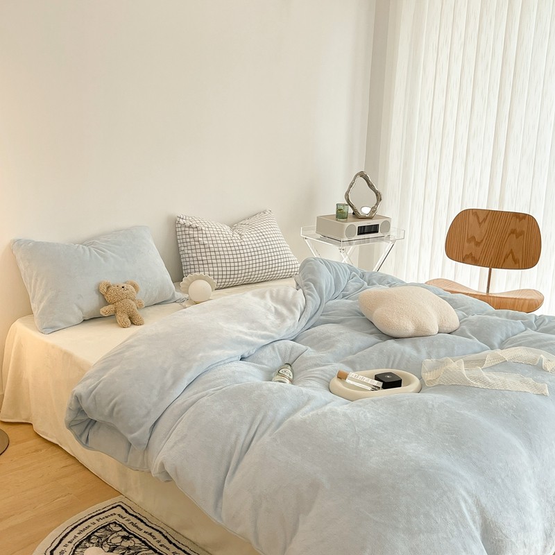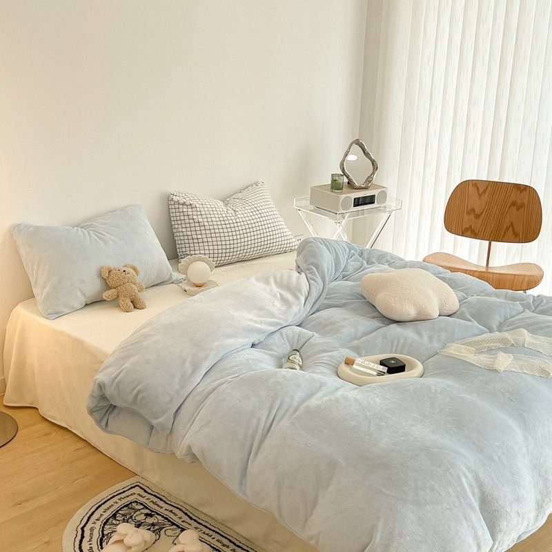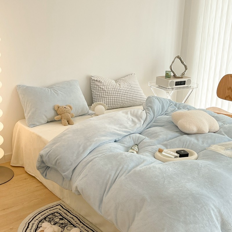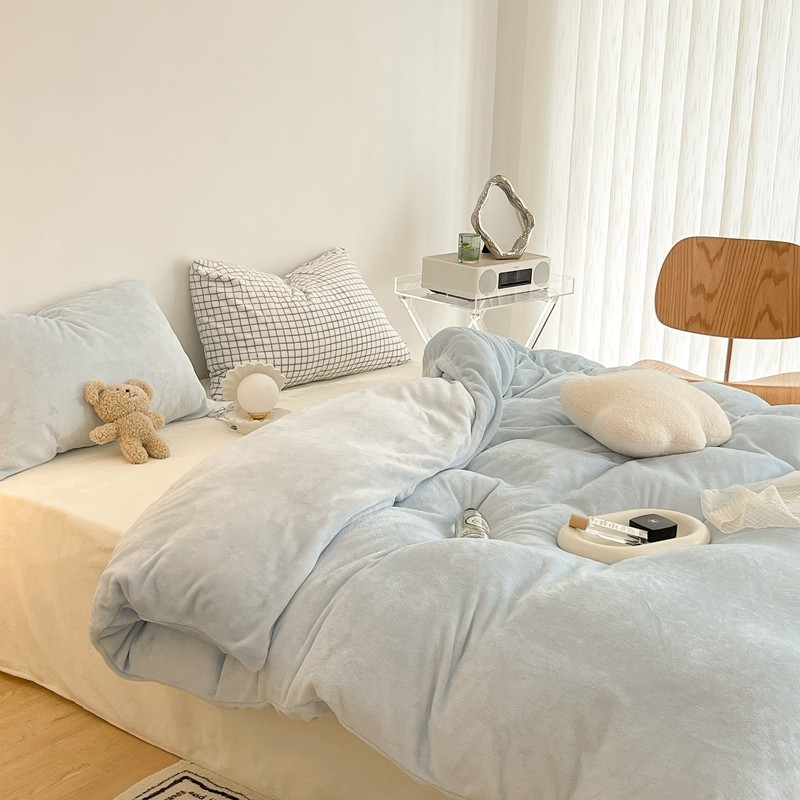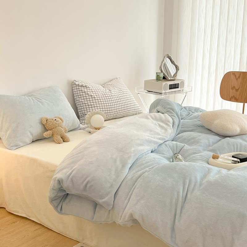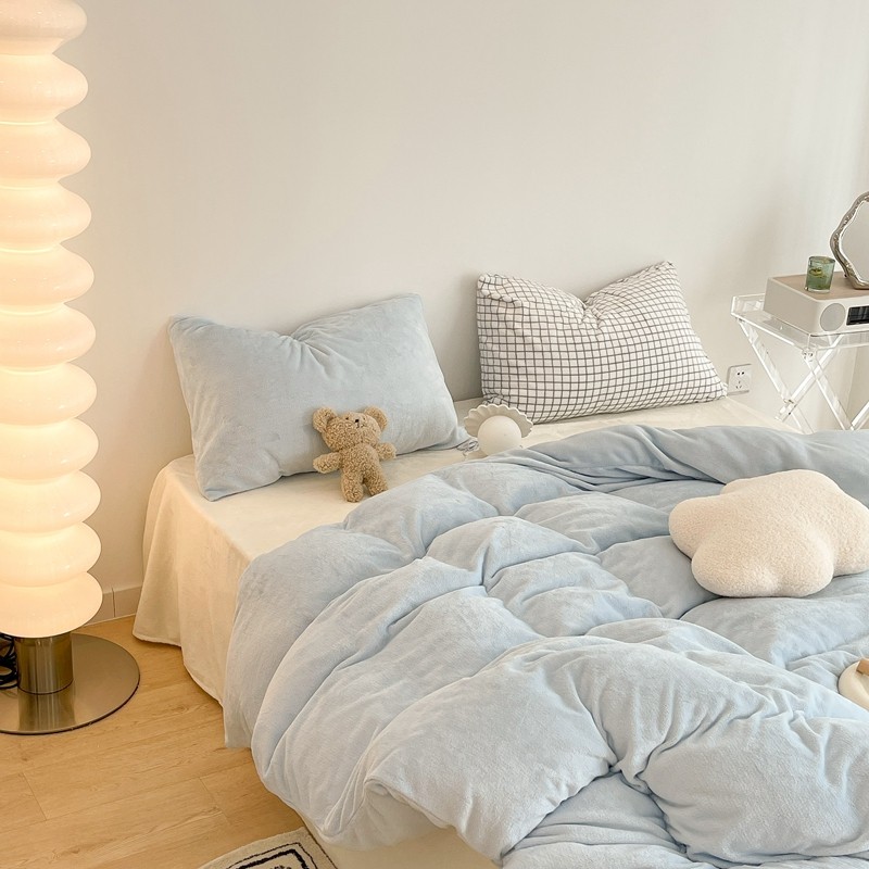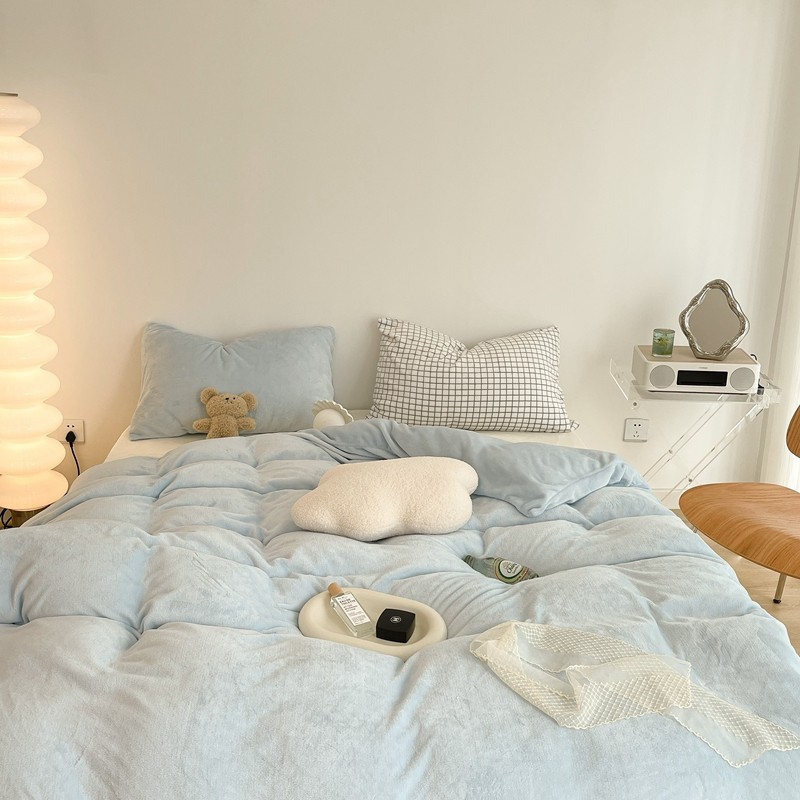 昔可家纺 2021新款撞色牛奶绒四件套 奶油蓝