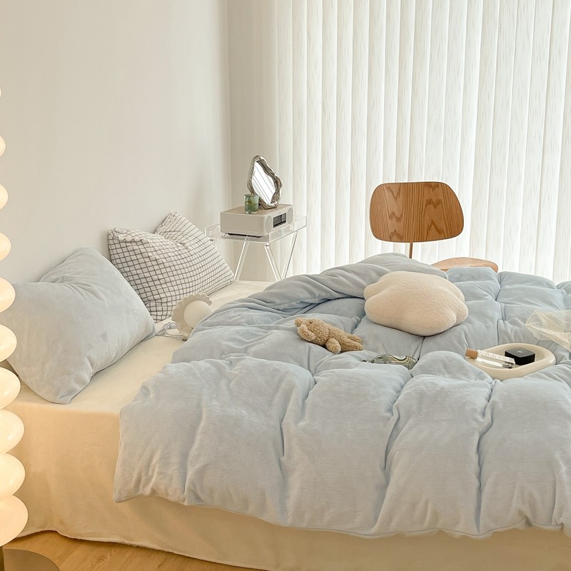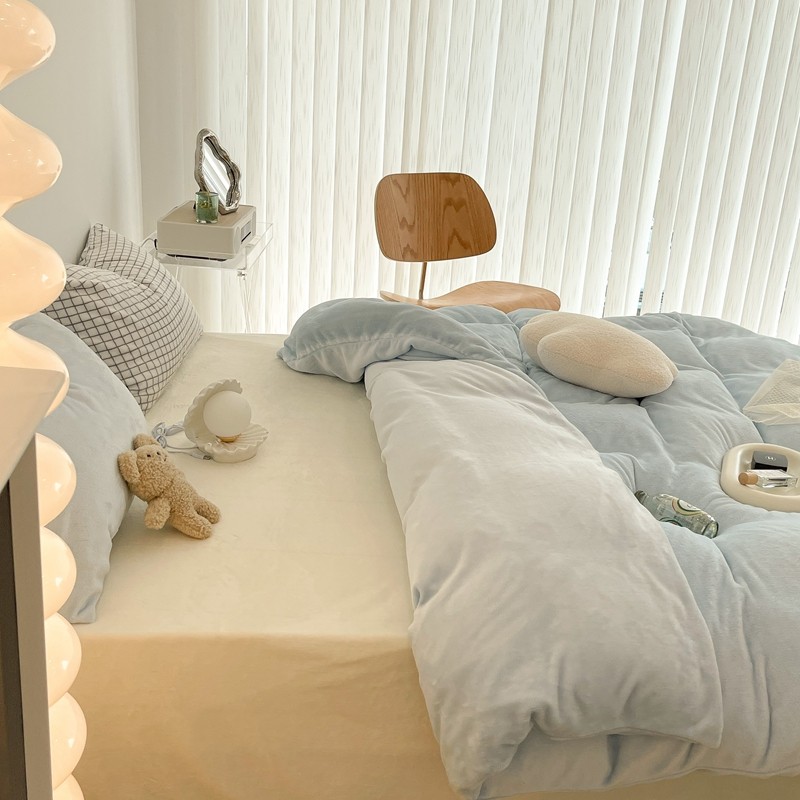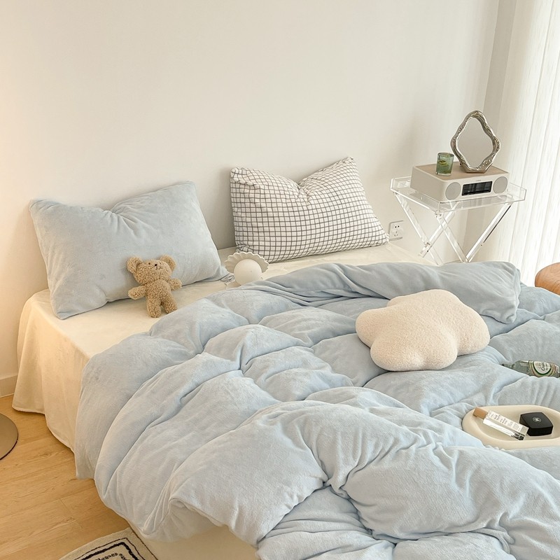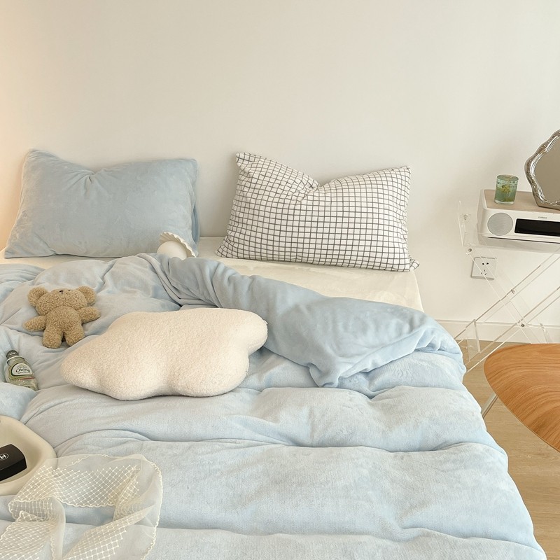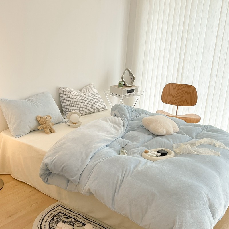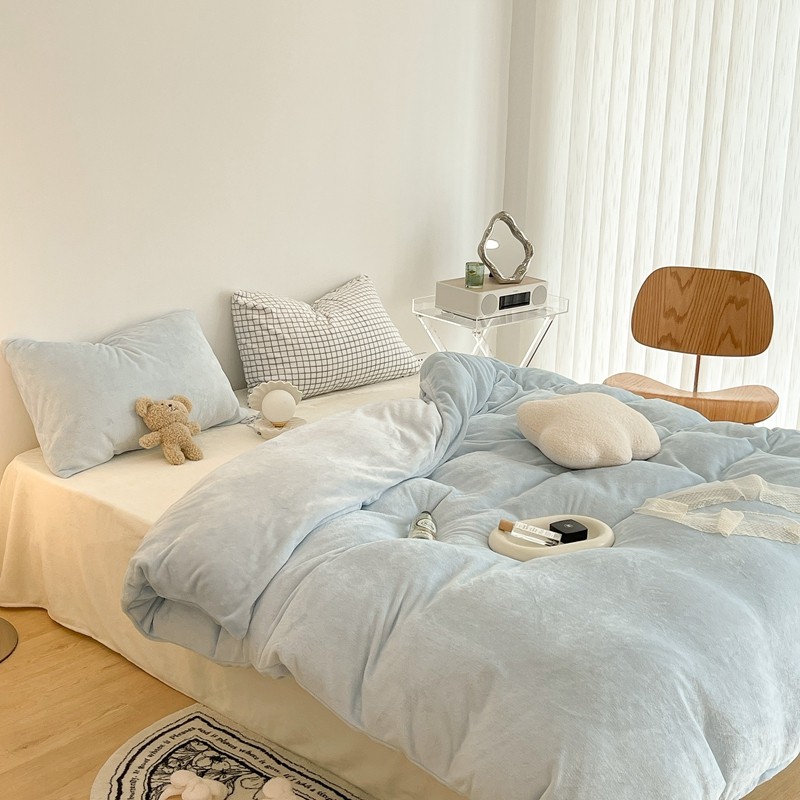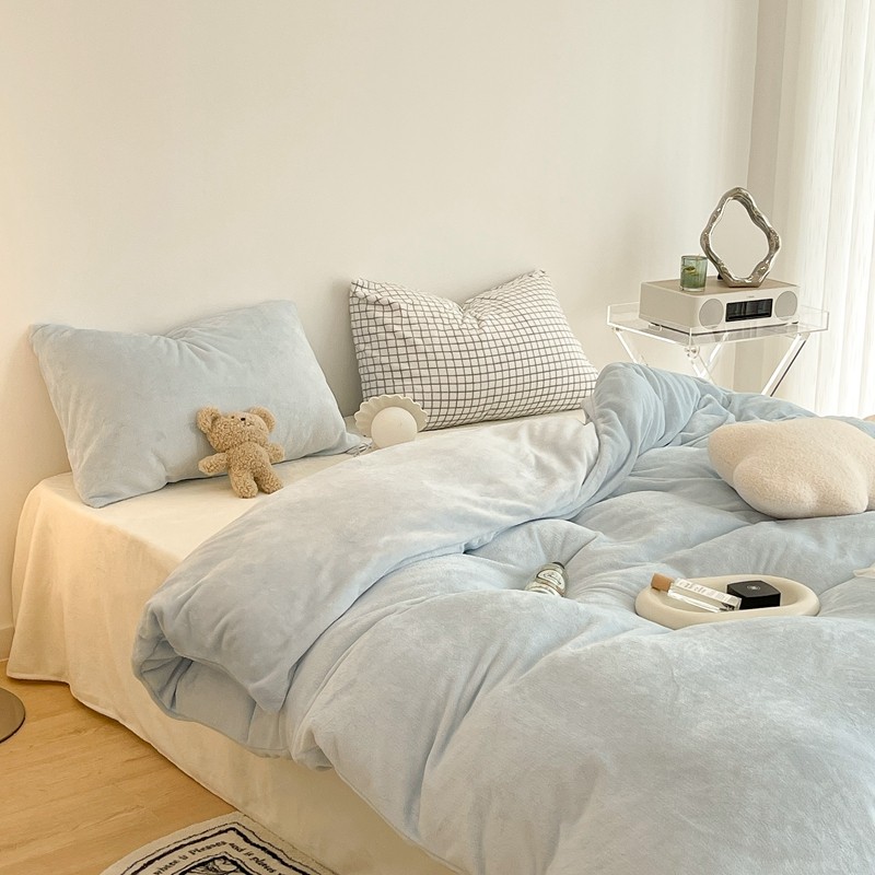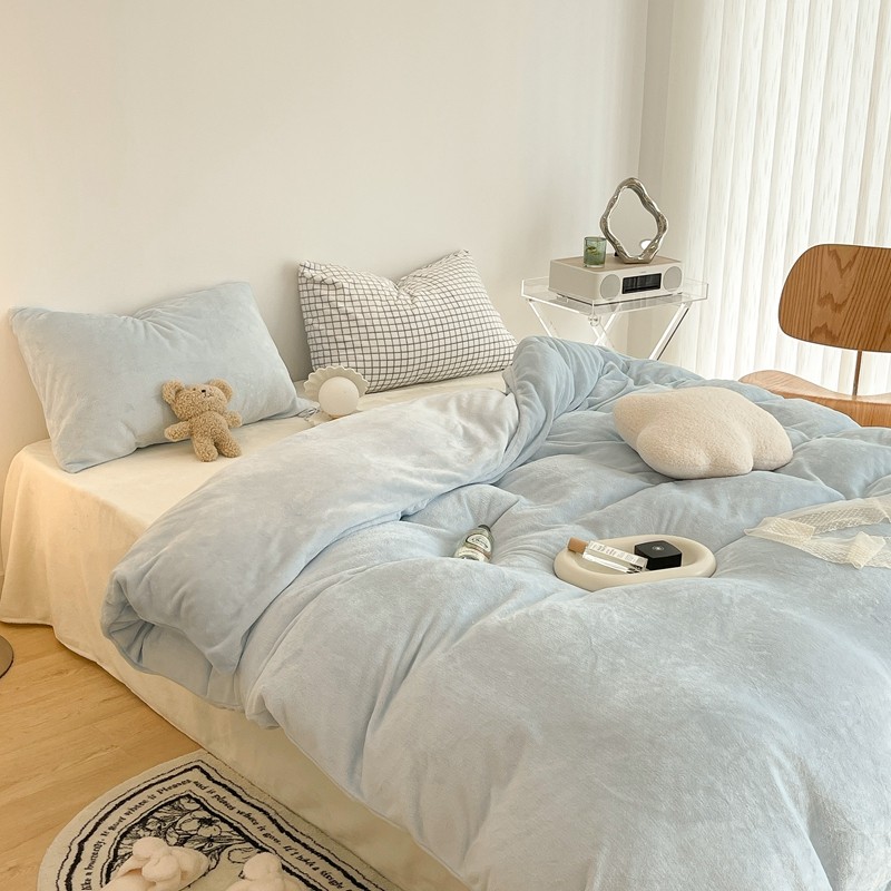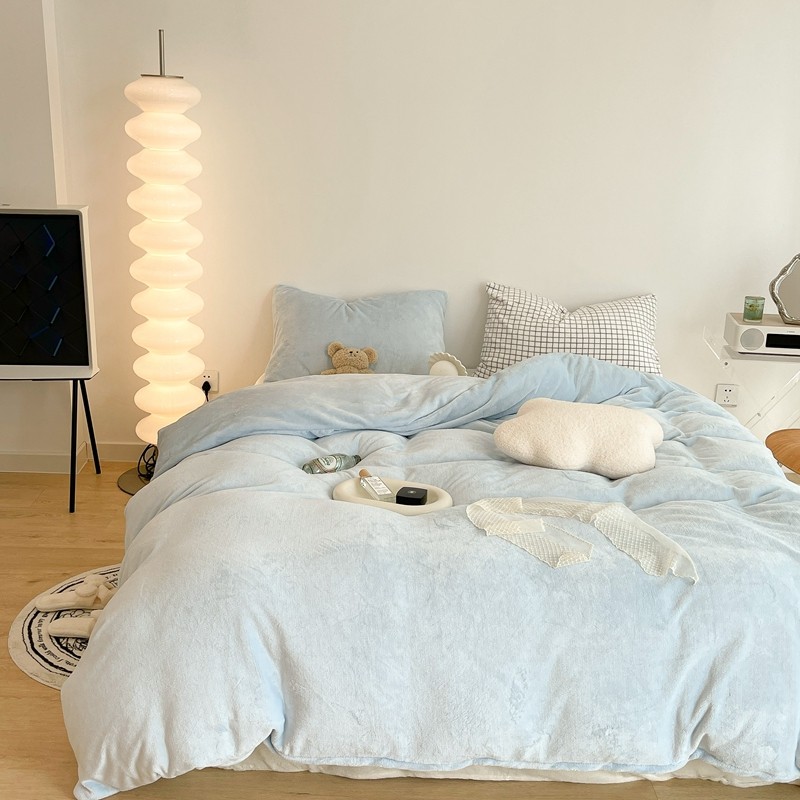 昔可家纺 2021新款撞色牛奶绒四件套 奶油蓝