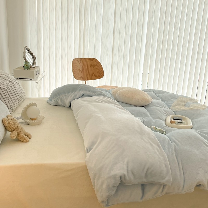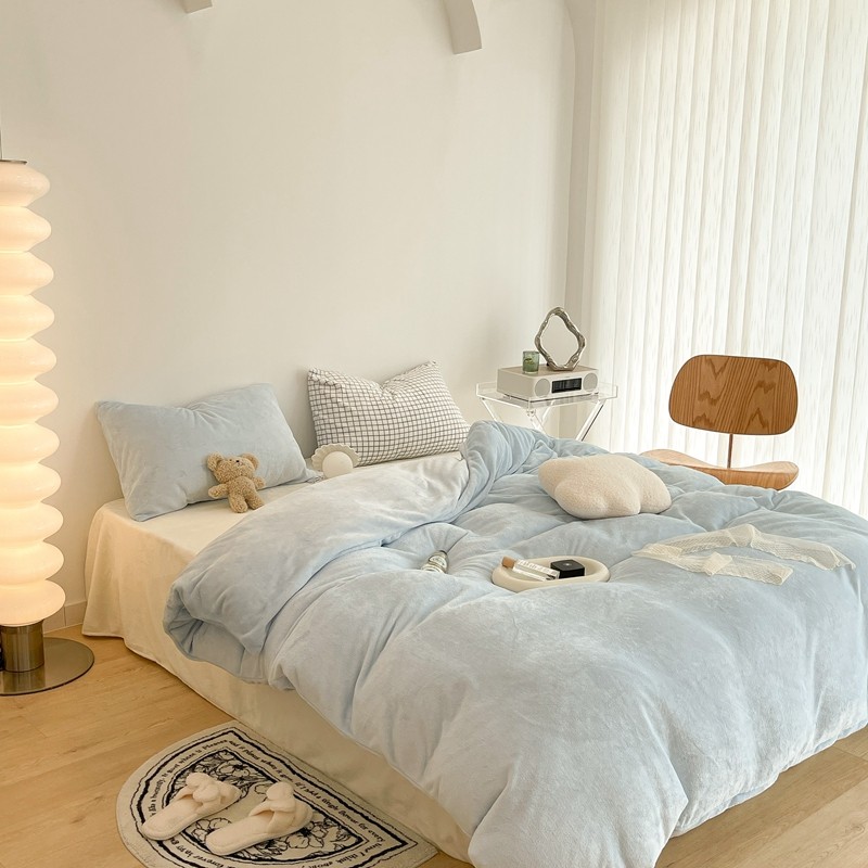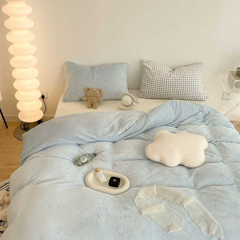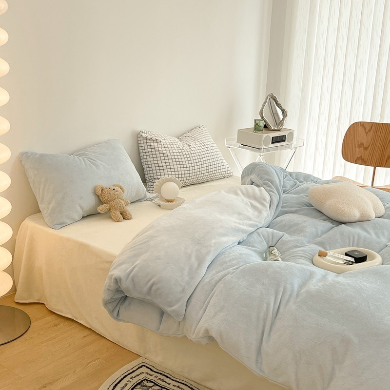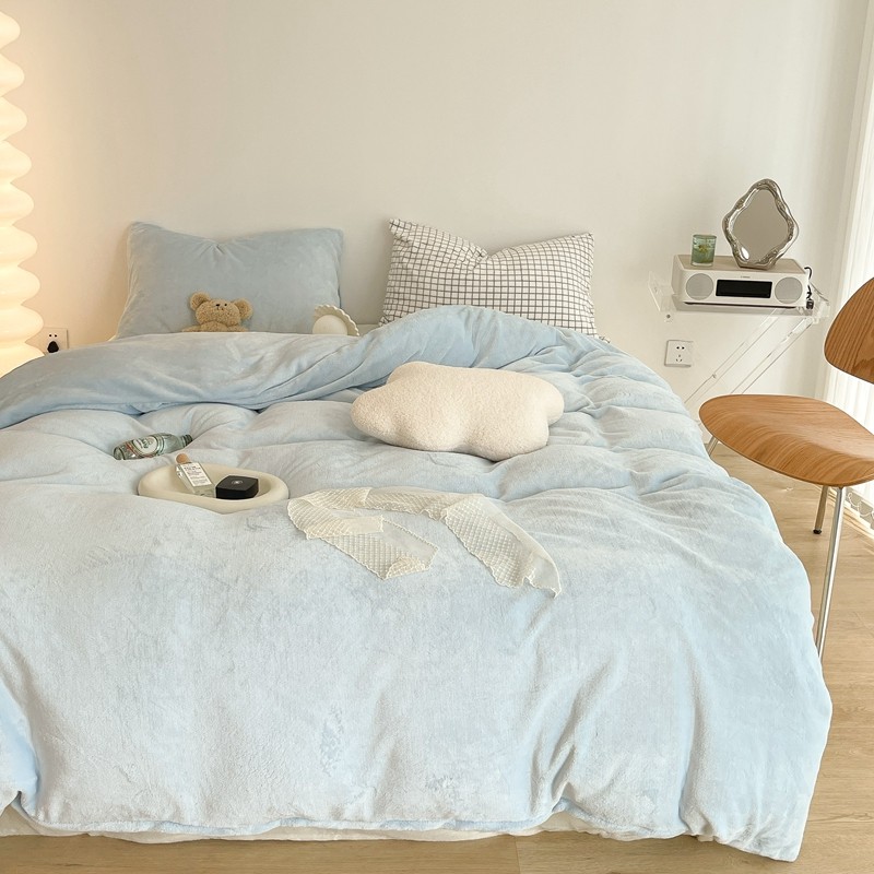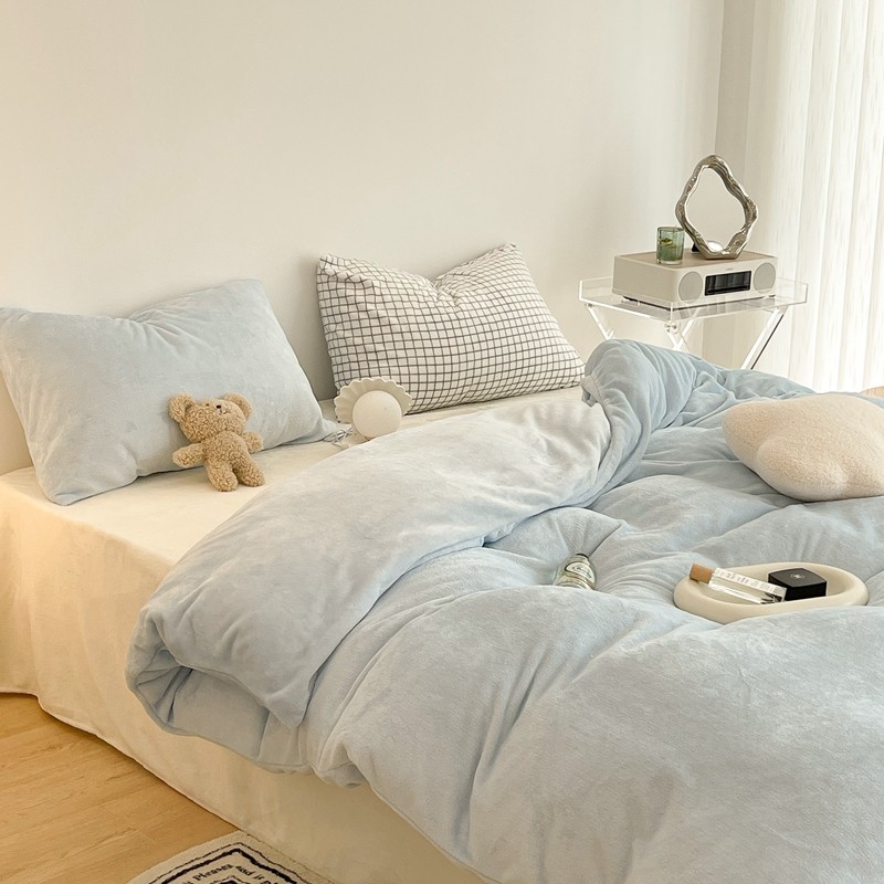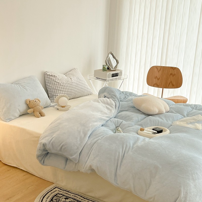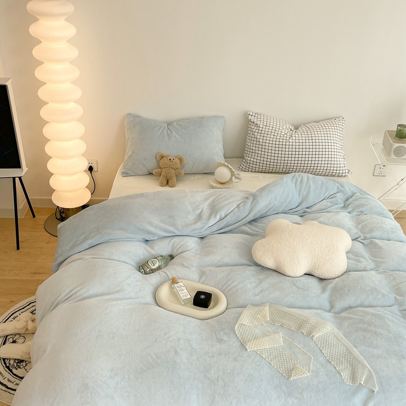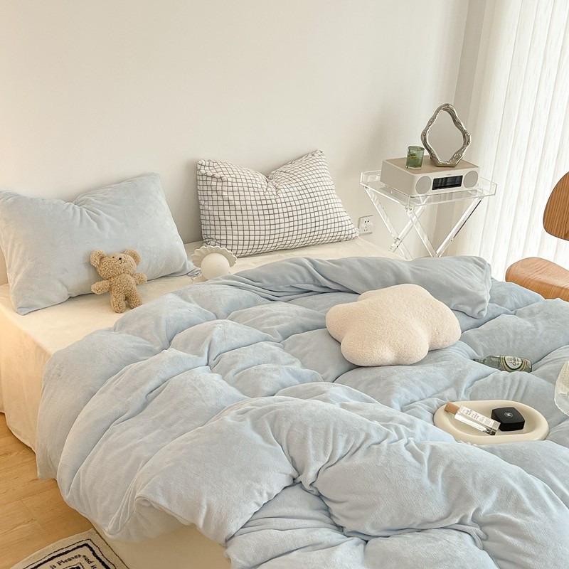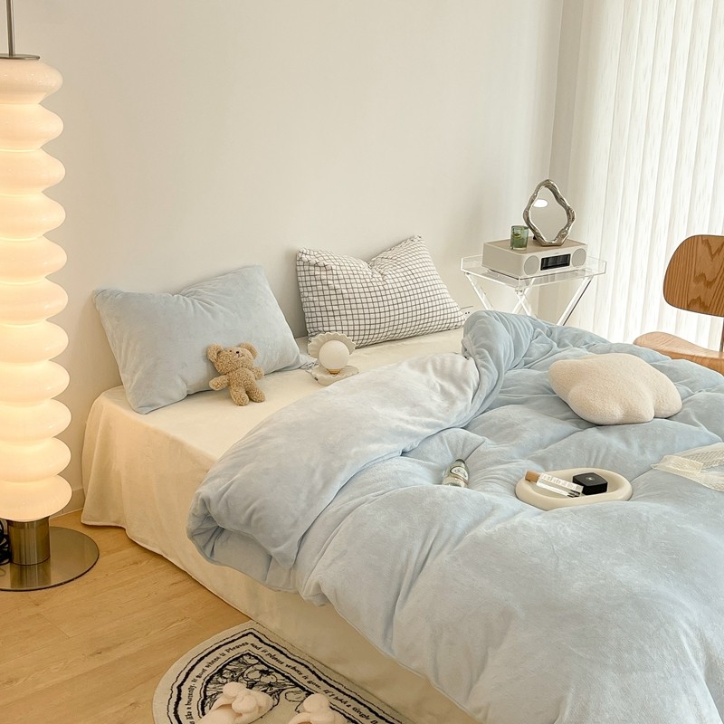 昔可家纺 2021新款撞色牛奶绒四件套 奶油蓝