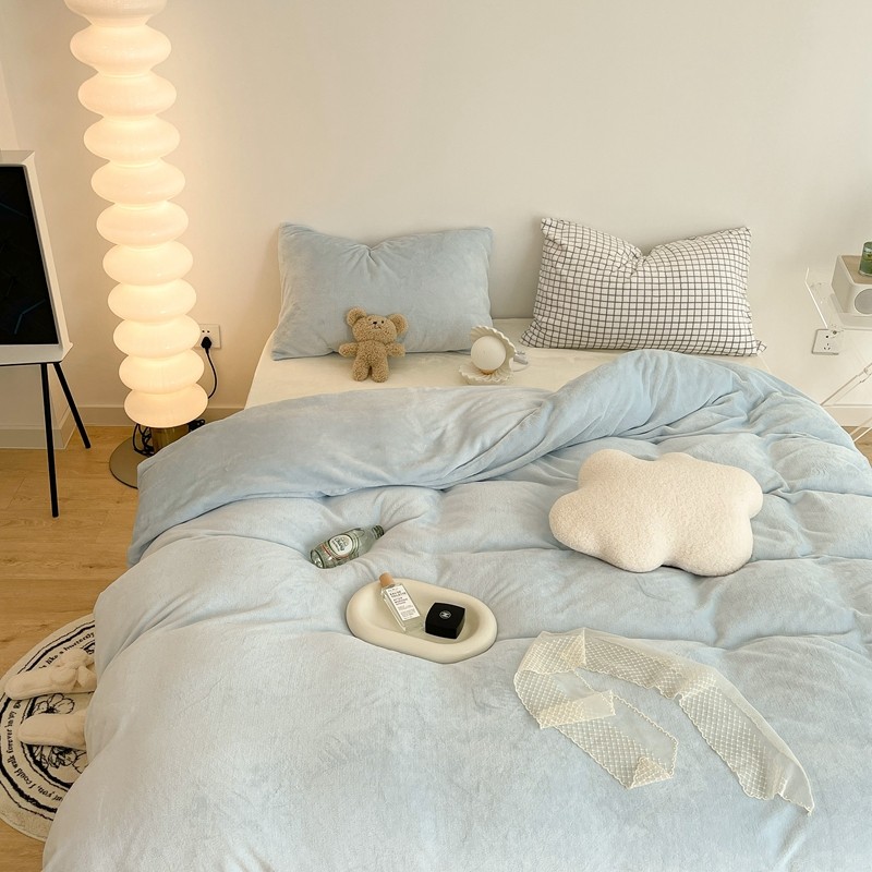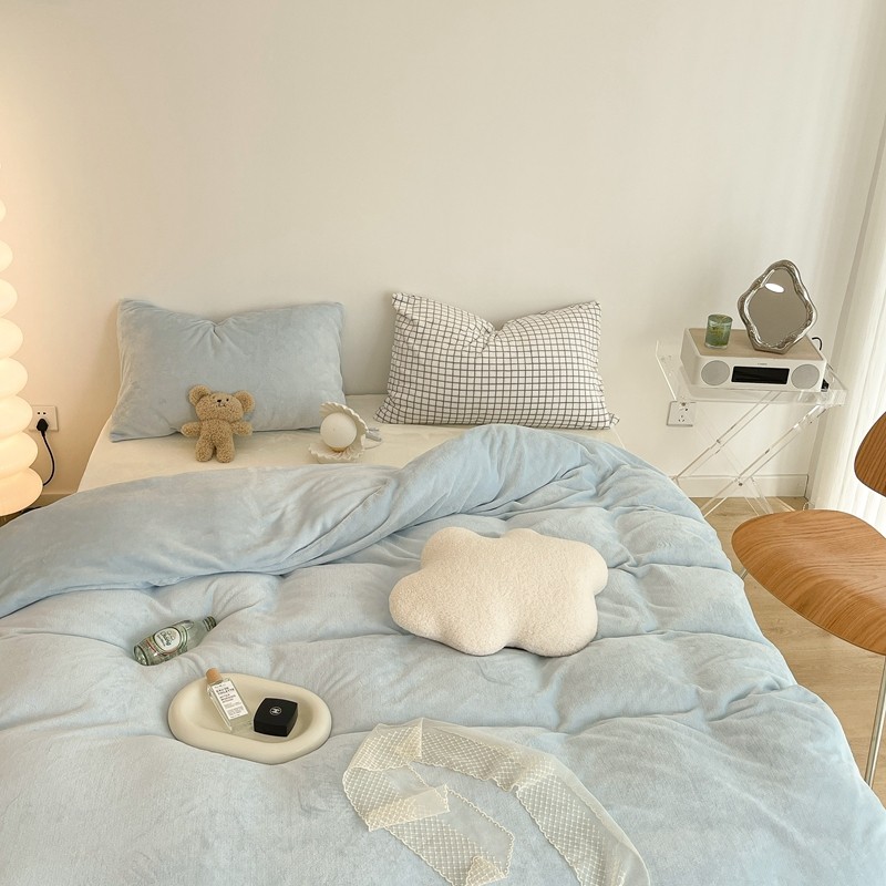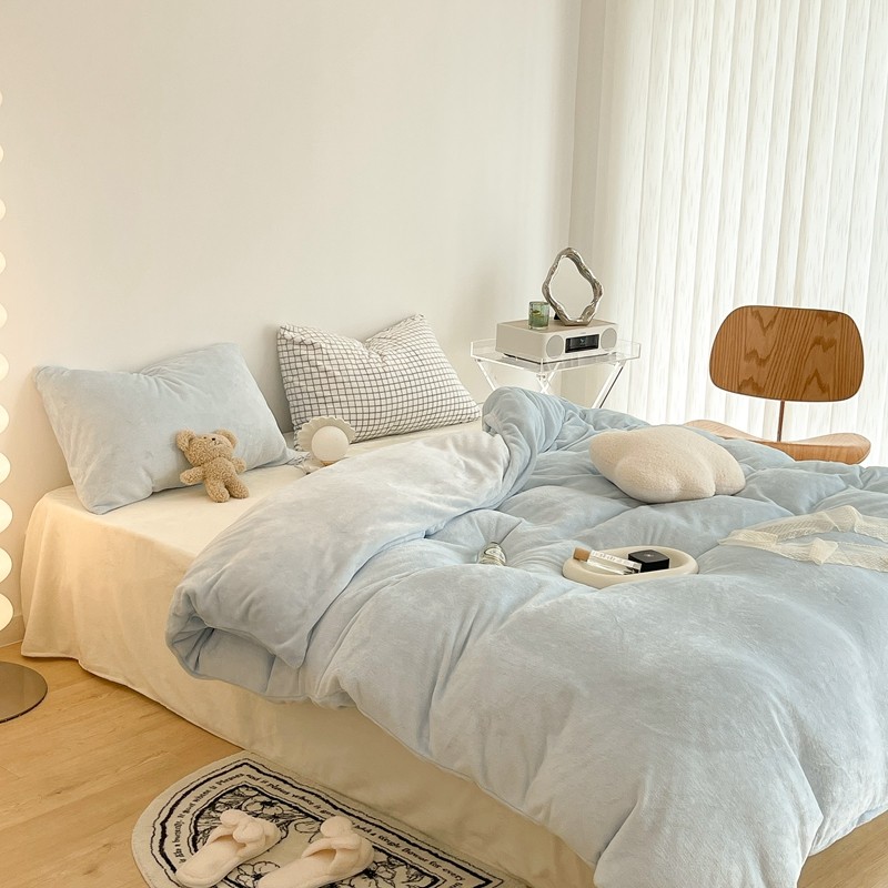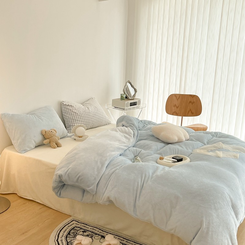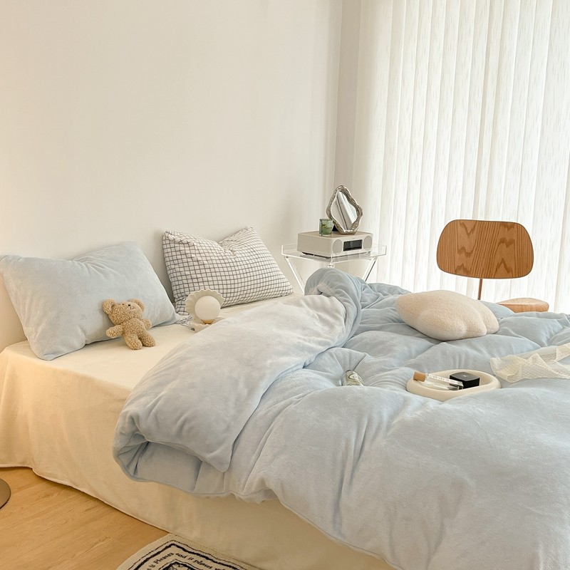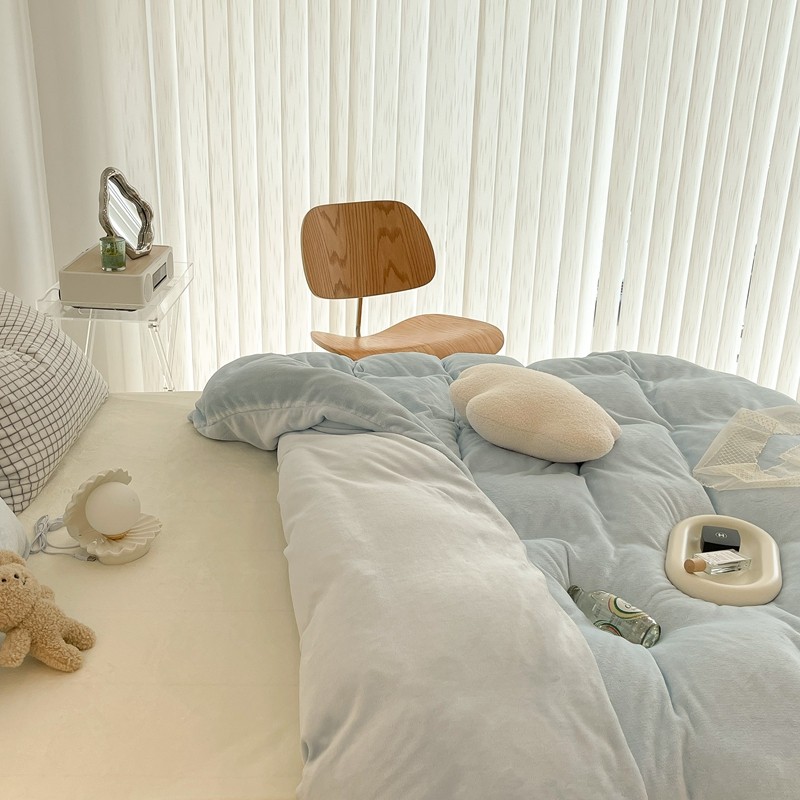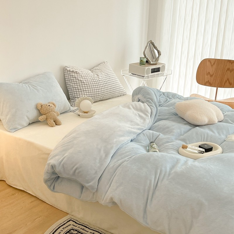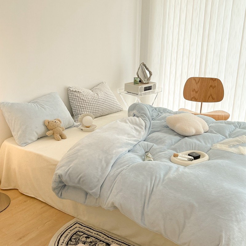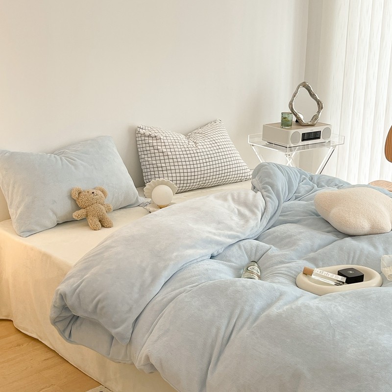 昔可家纺 2021新款撞色牛奶绒四件套 奶油蓝