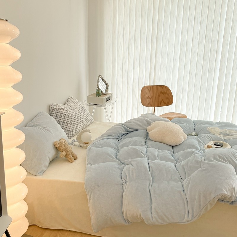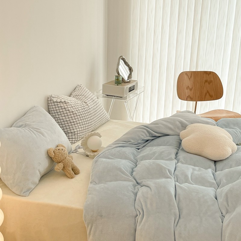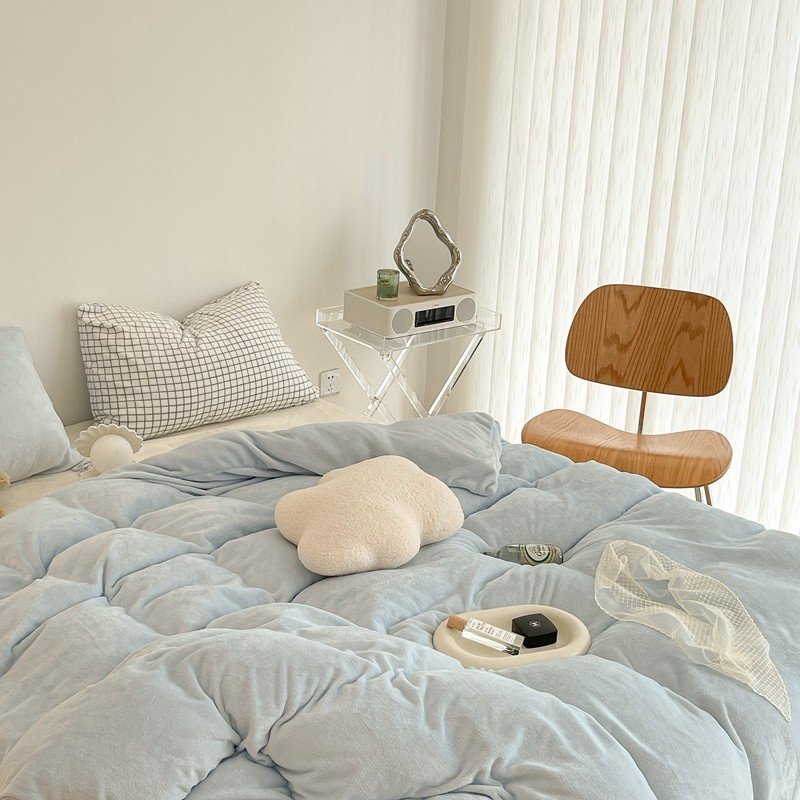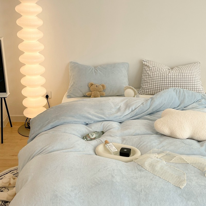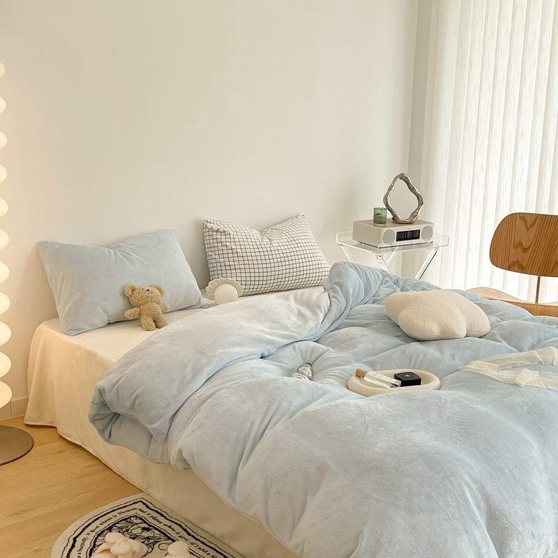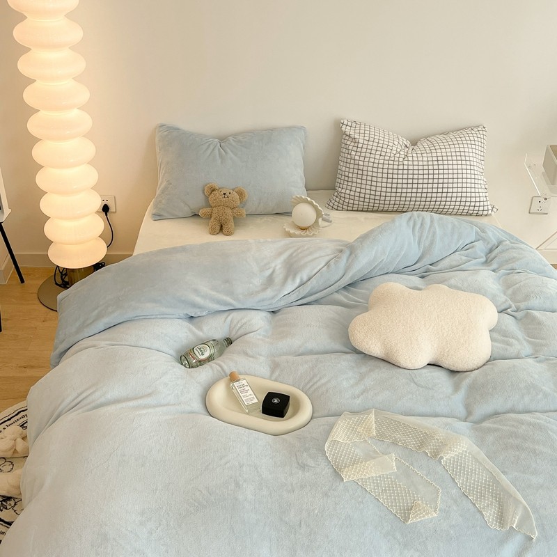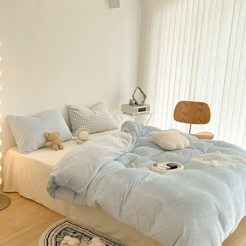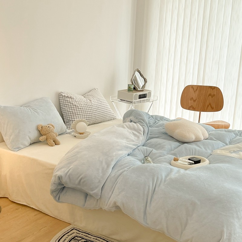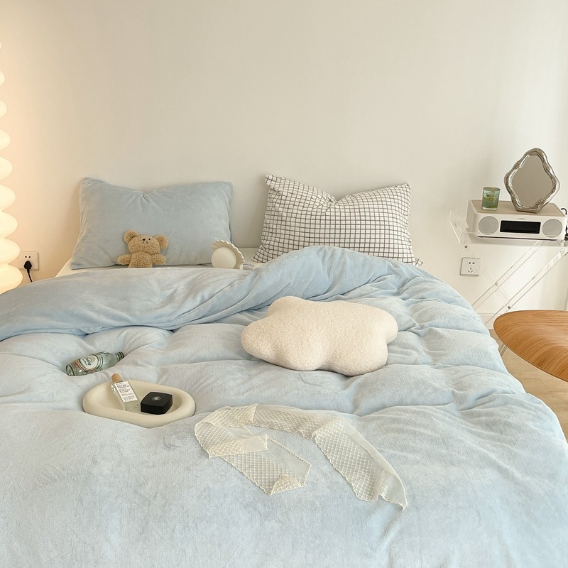 昔可家纺 2021新款撞色牛奶绒四件套 奶油蓝