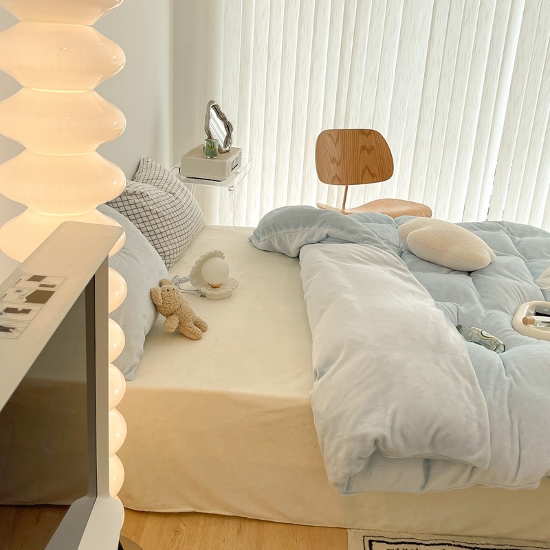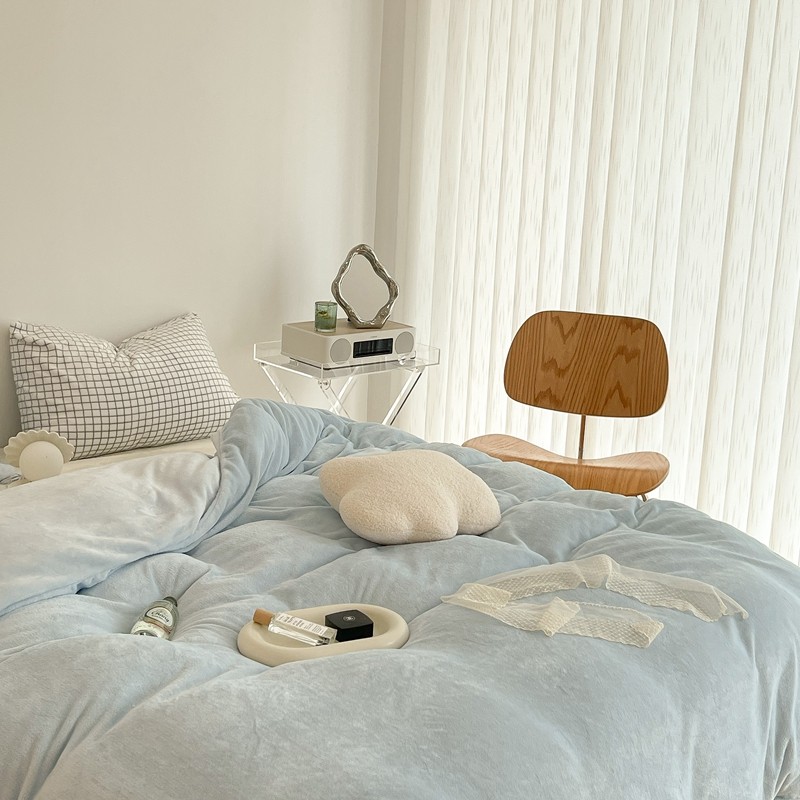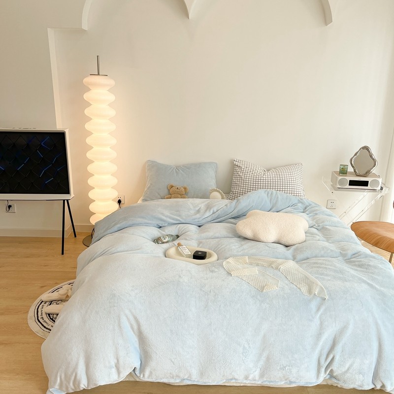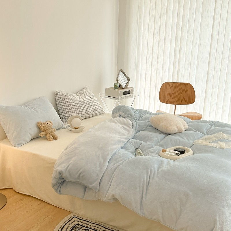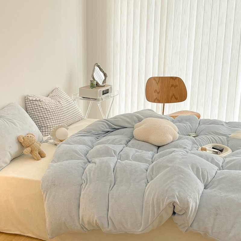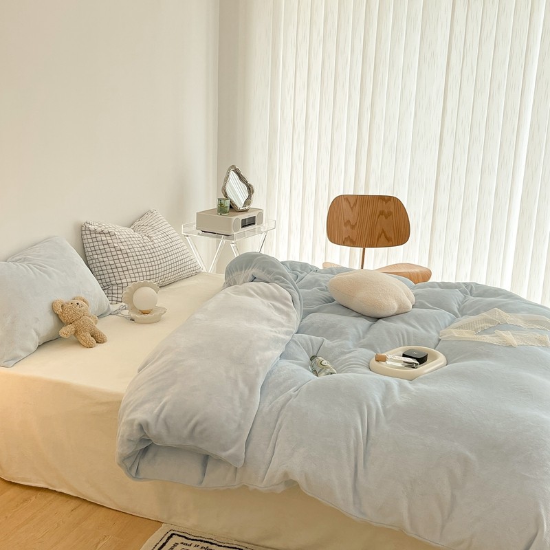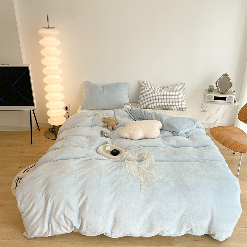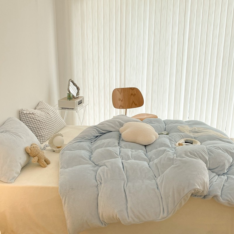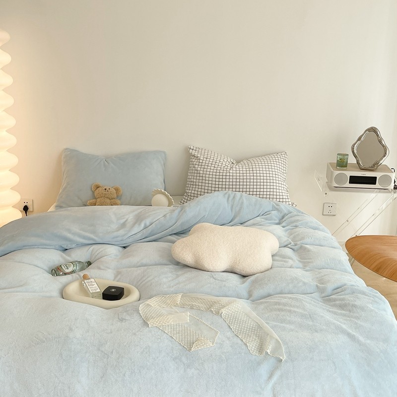 昔可家纺 2021新款撞色牛奶绒四件套 奶油蓝