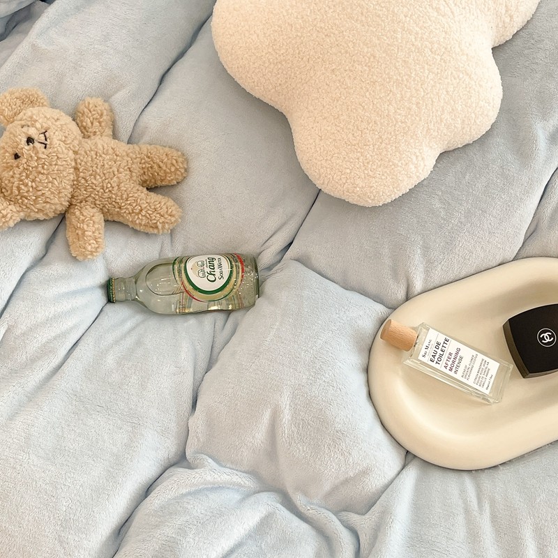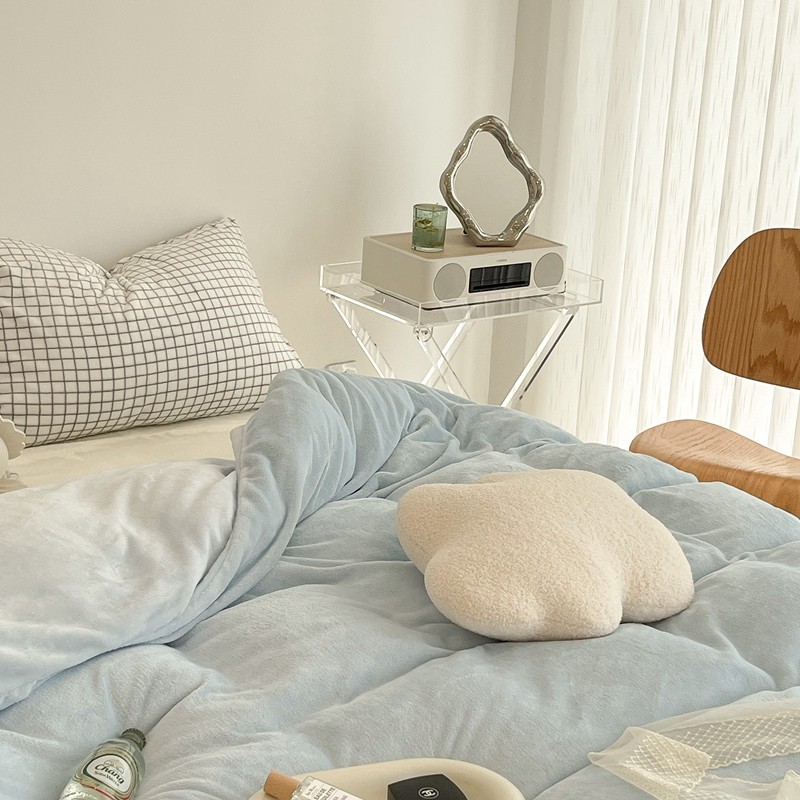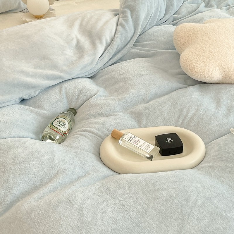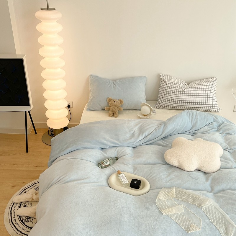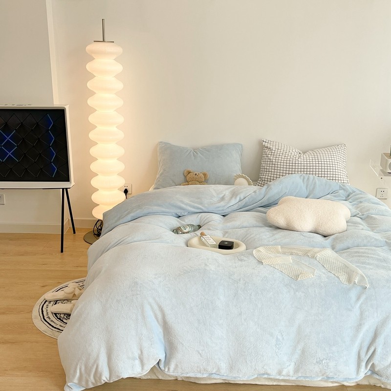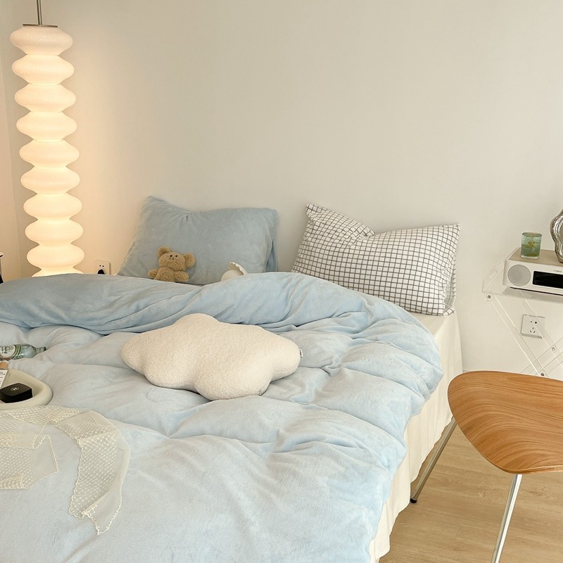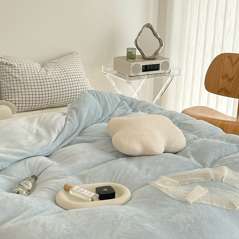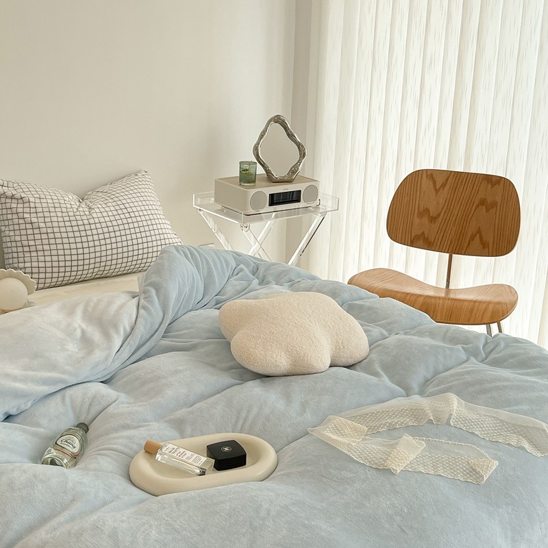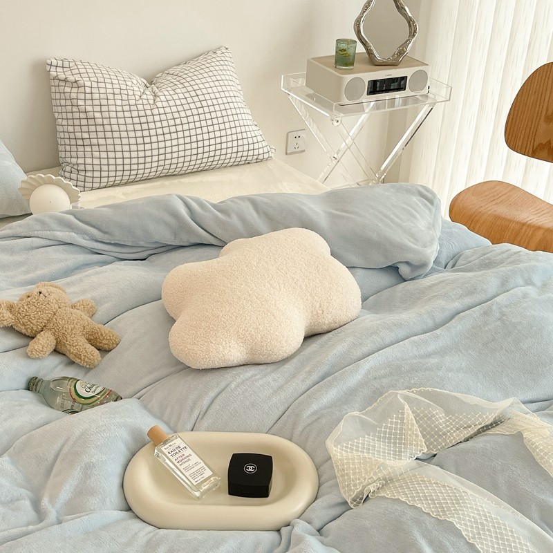 昔可家纺 2021新款撞色牛奶绒四件套 奶油蓝