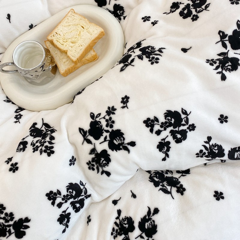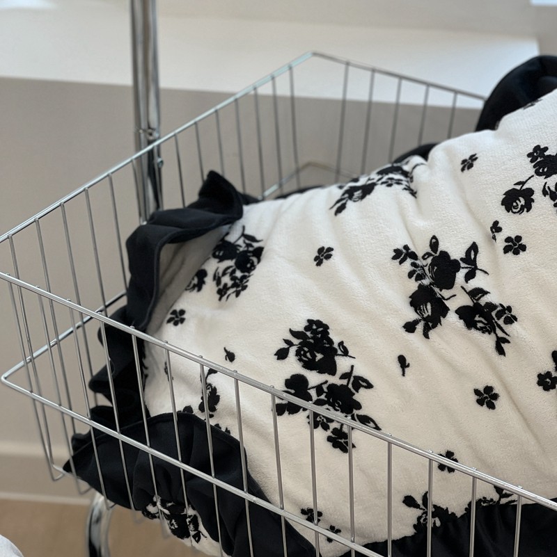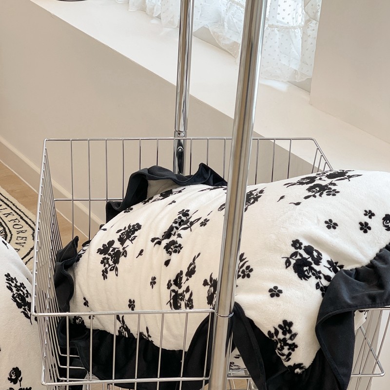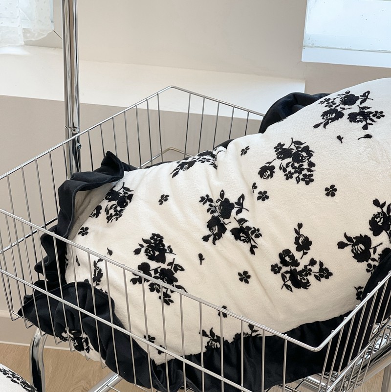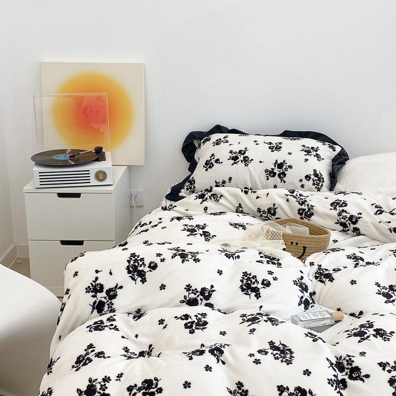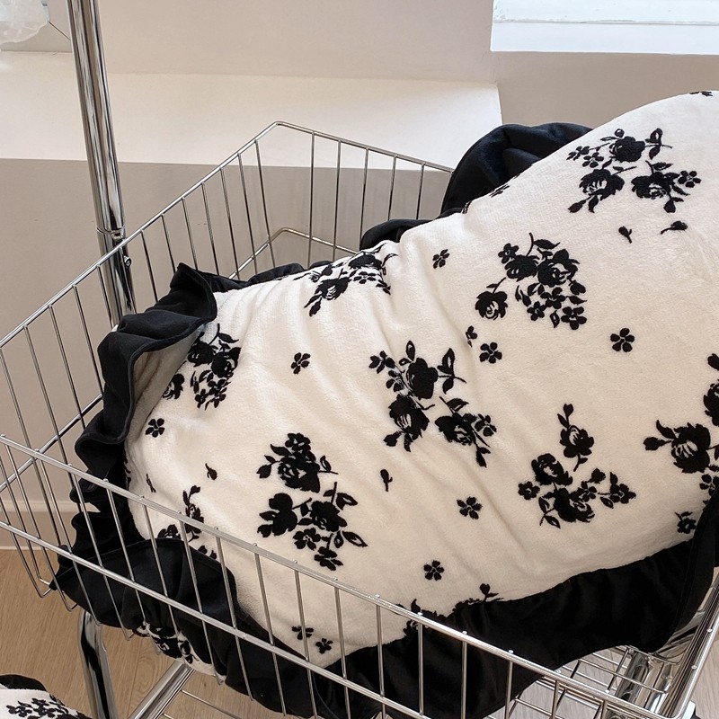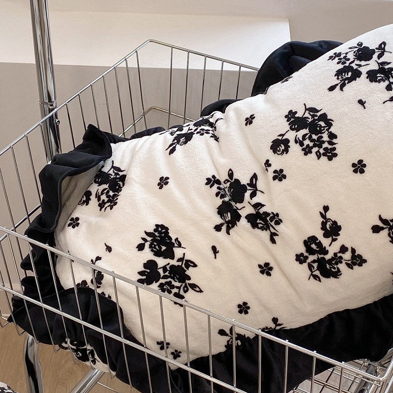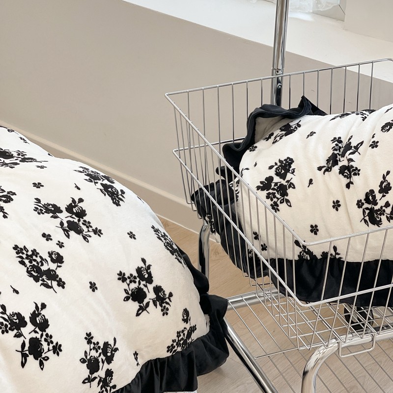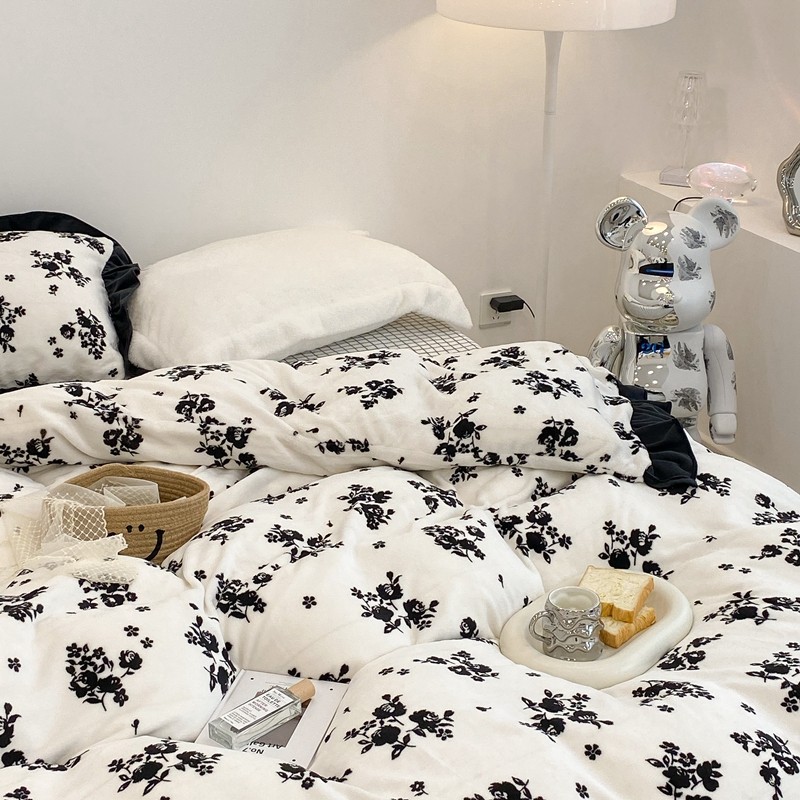 昔可家纺 2021新款黑色花边牛奶绒四件套 小香黑花