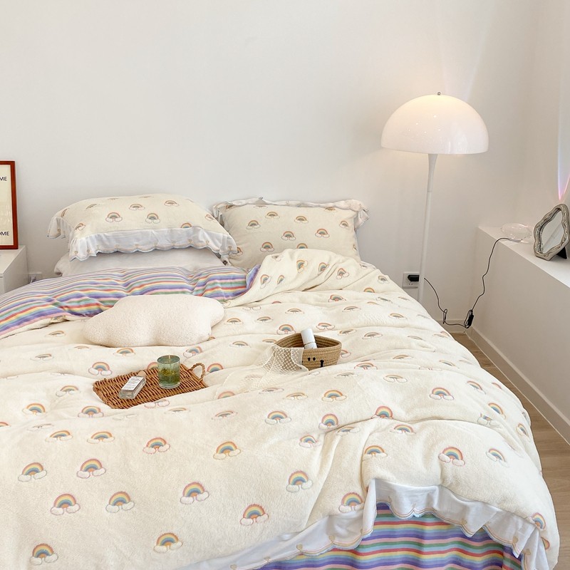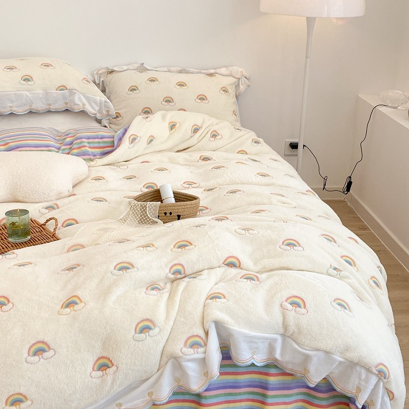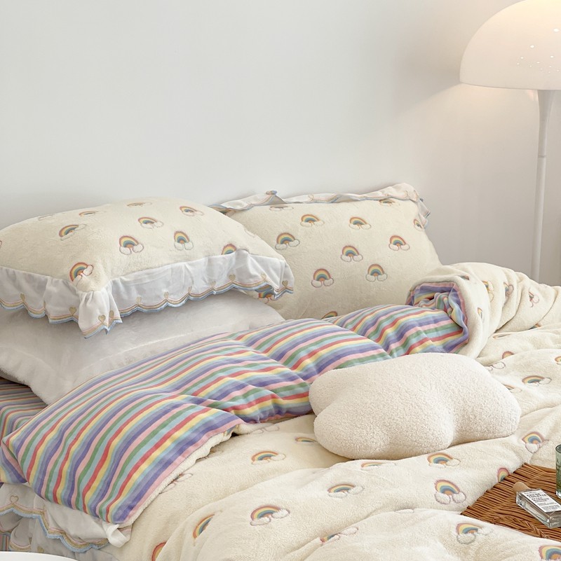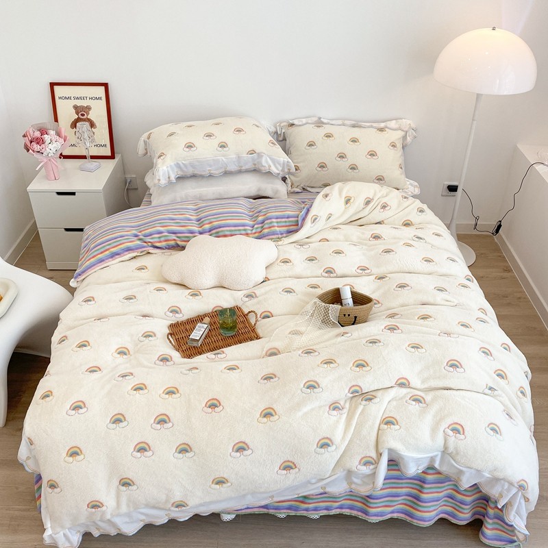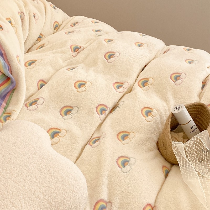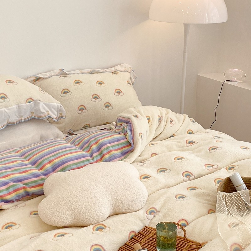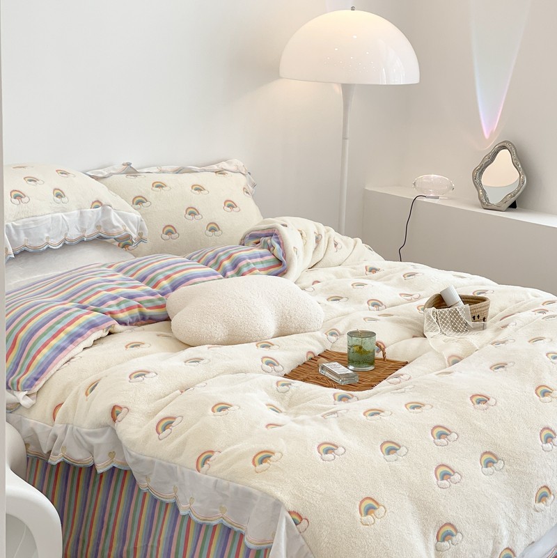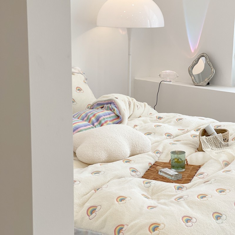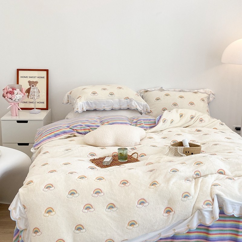 昔可家纺 2021新款coco雪貂绒四件套 小彩虹米白