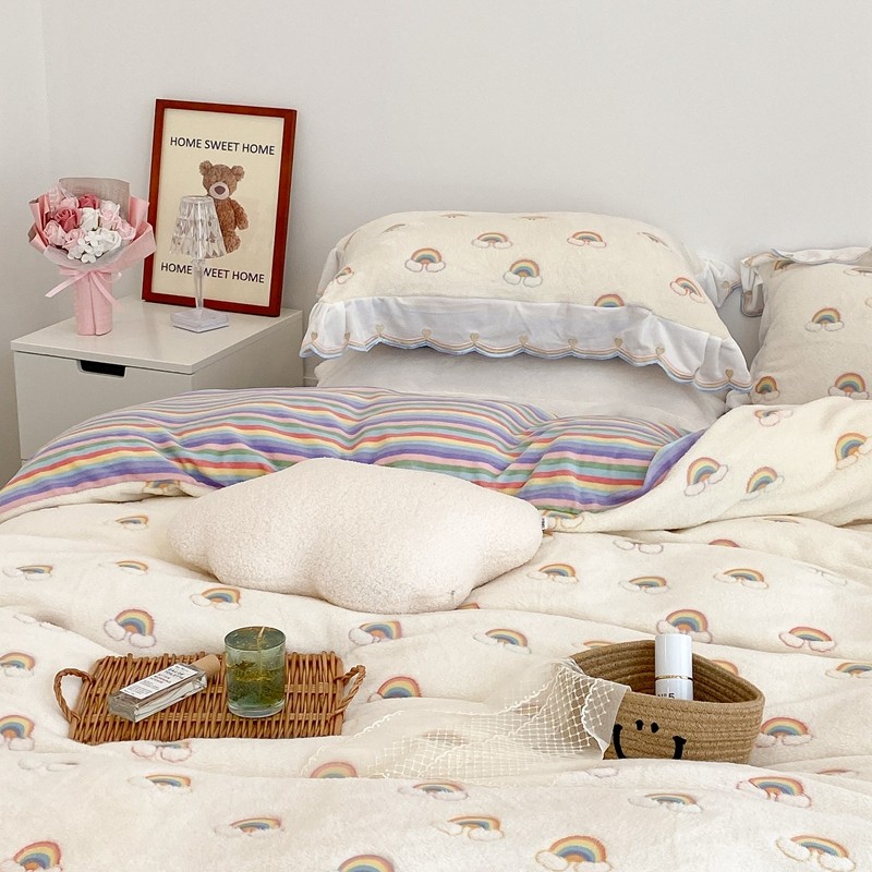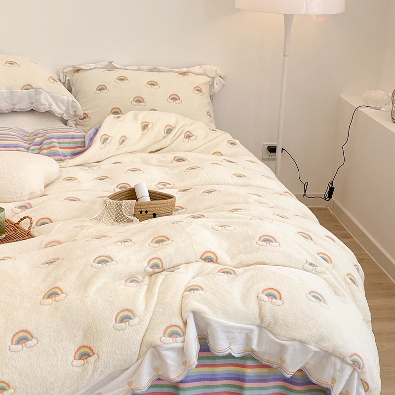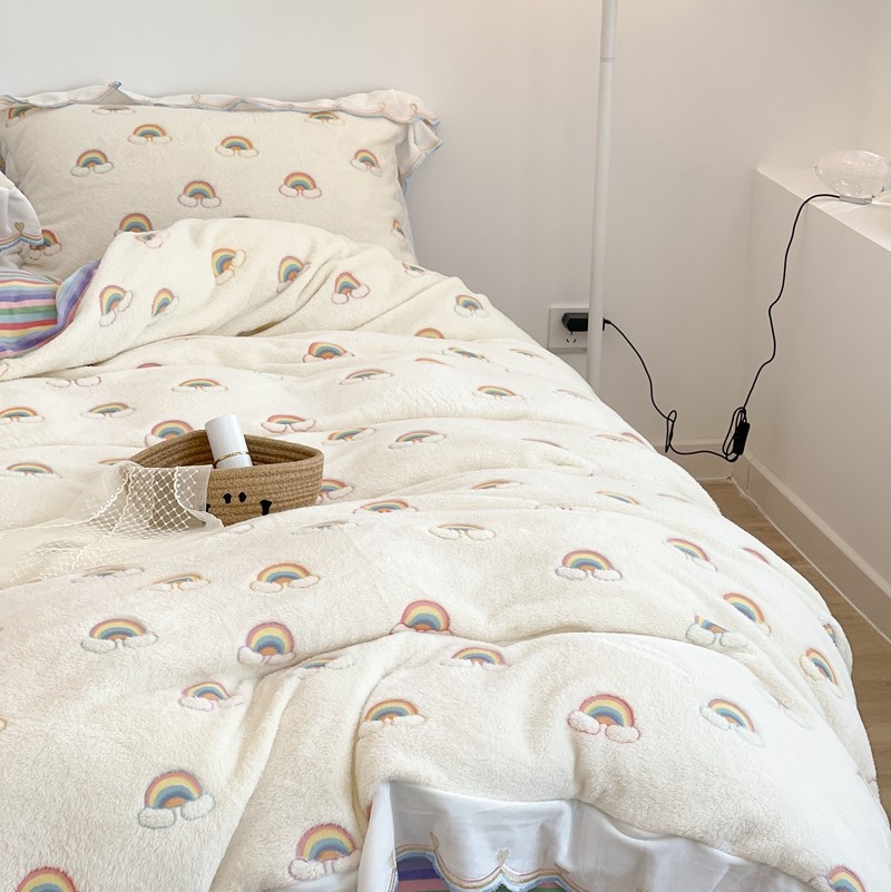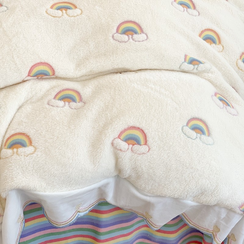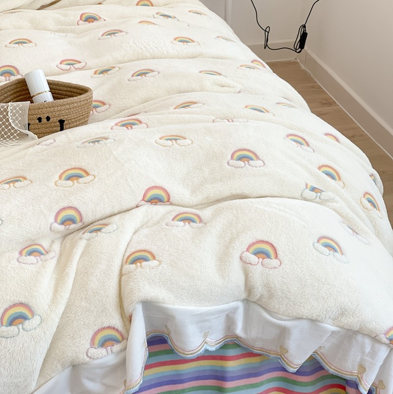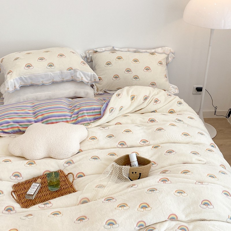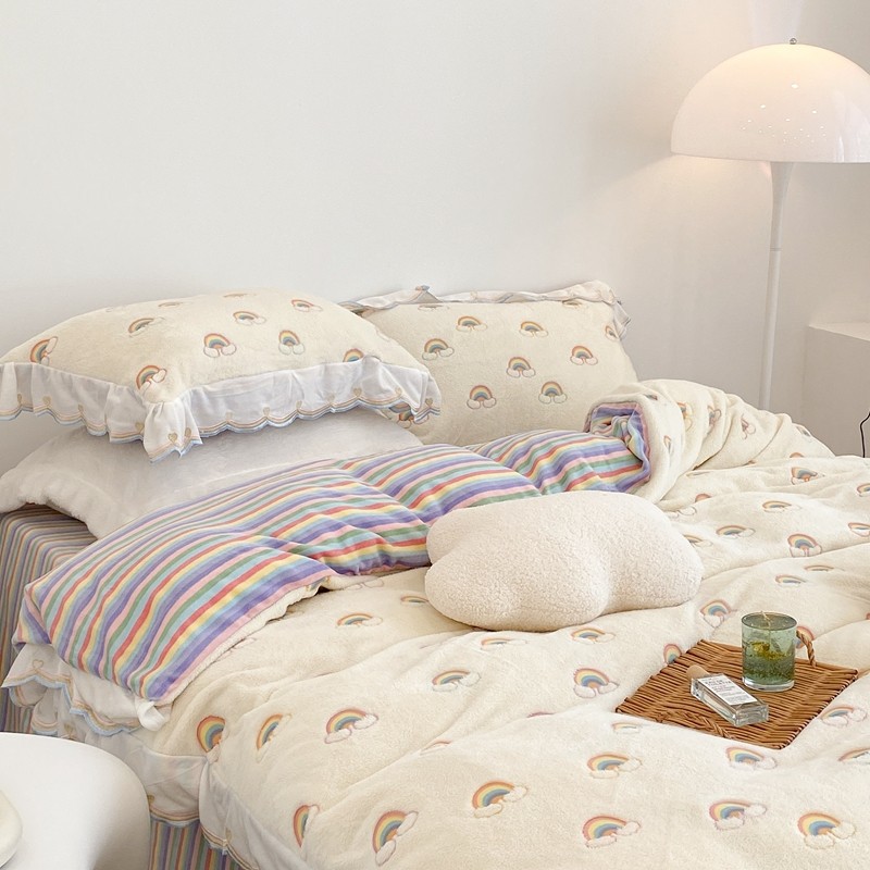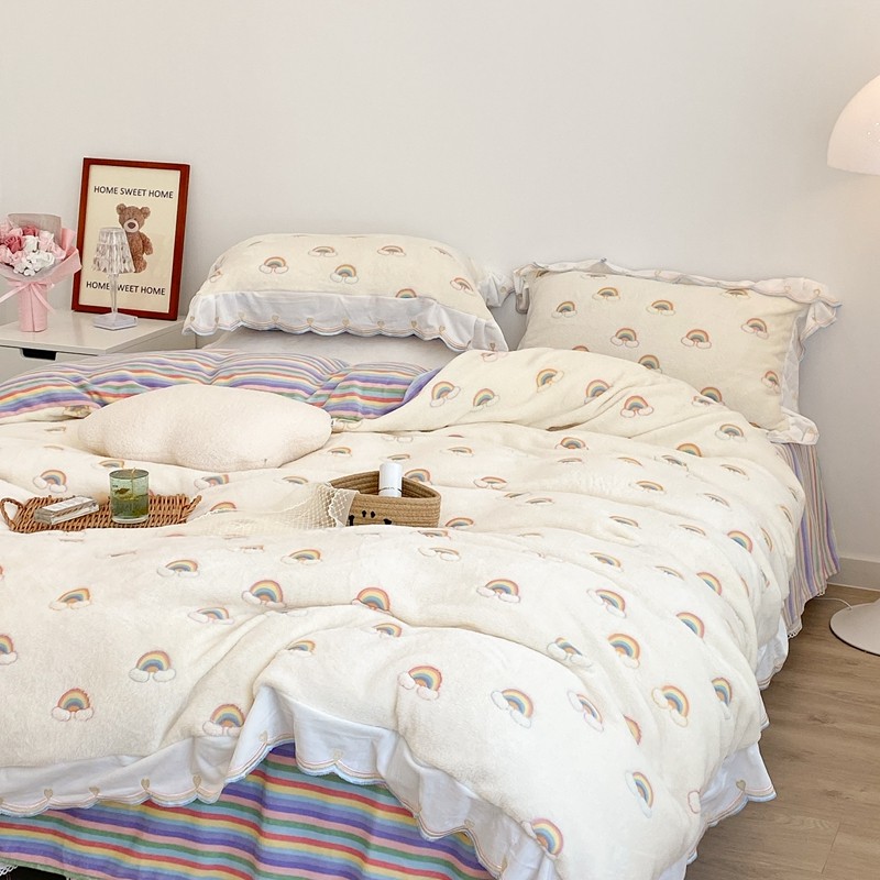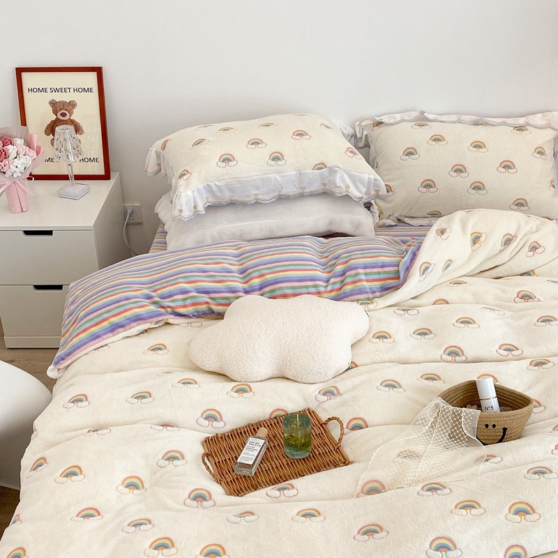 昔可家纺 2021新款coco雪貂绒四件套 小彩虹米白