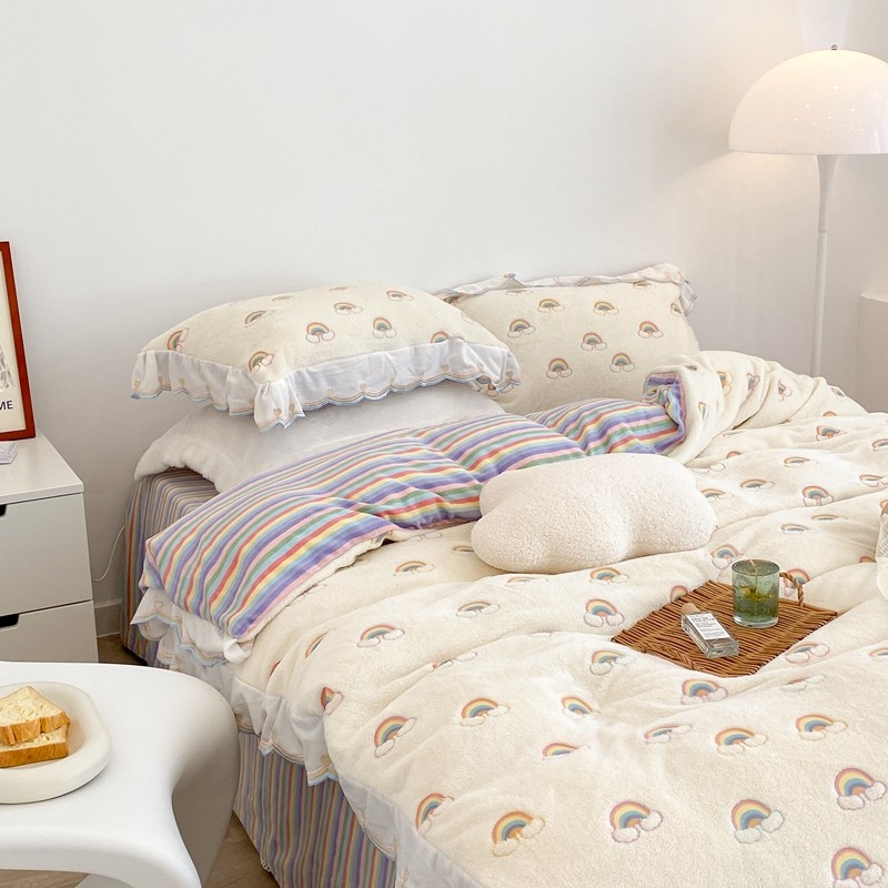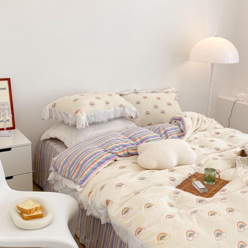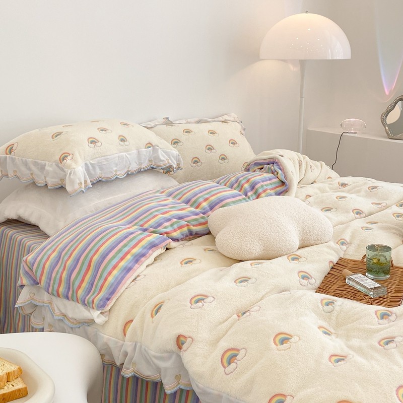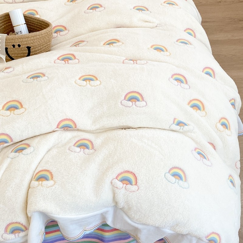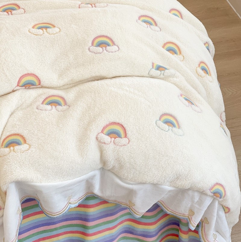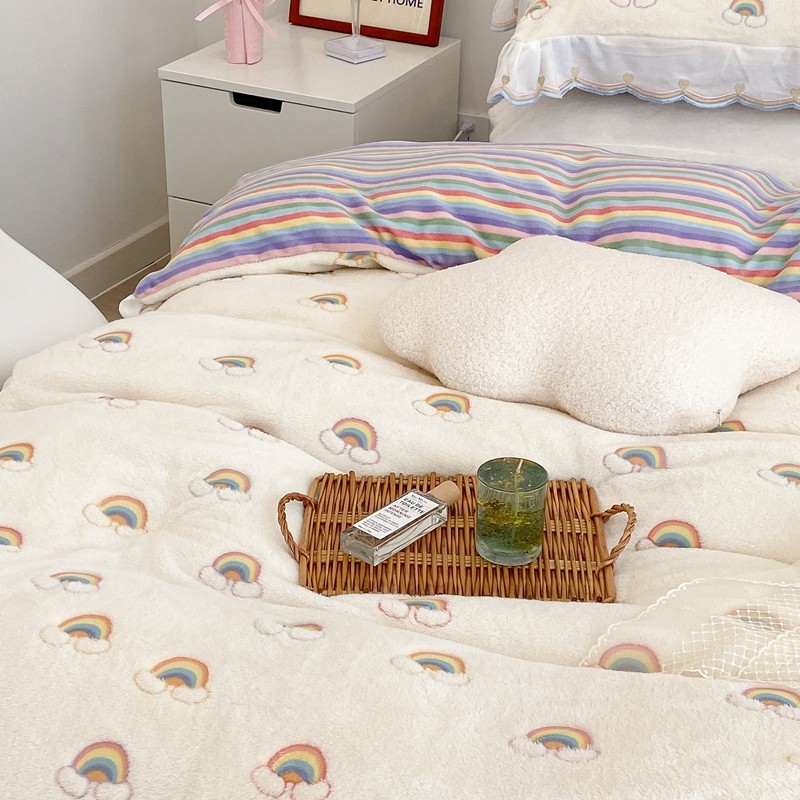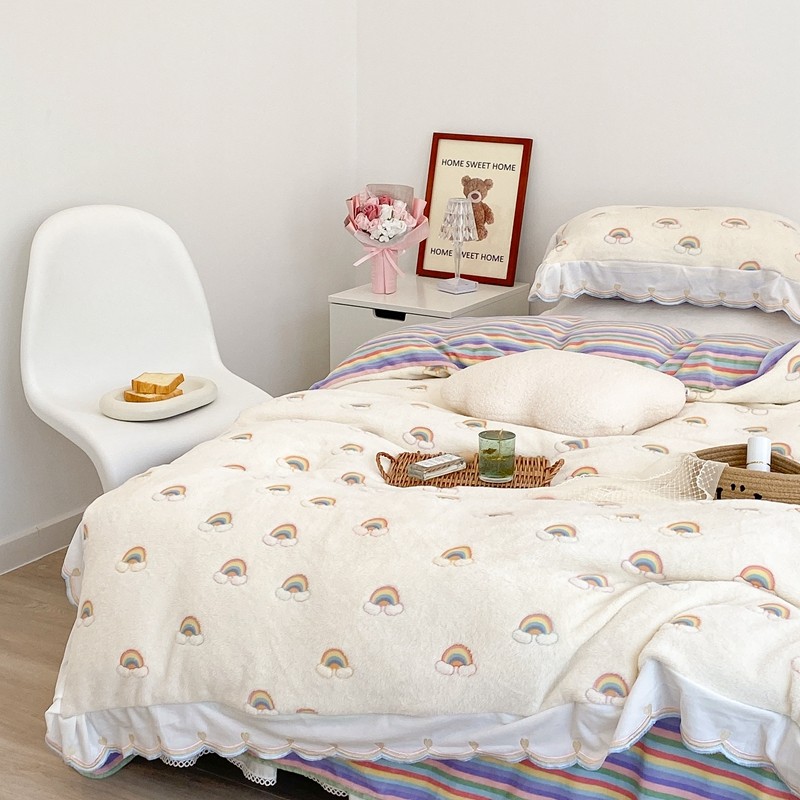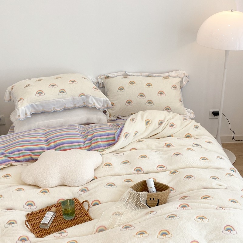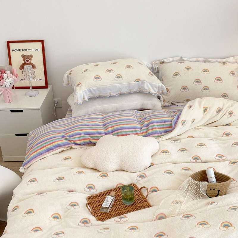 昔可家纺 2021新款coco雪貂绒四件套 小彩虹米白