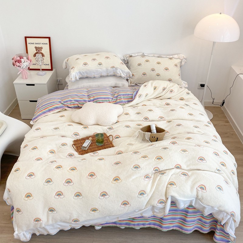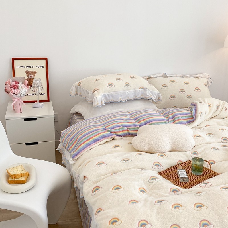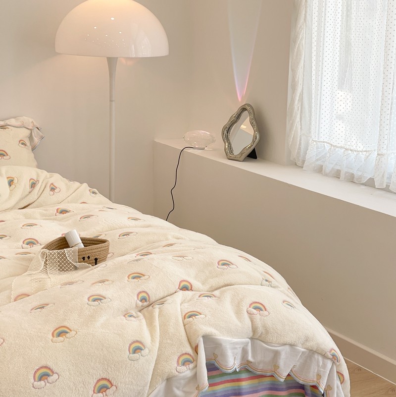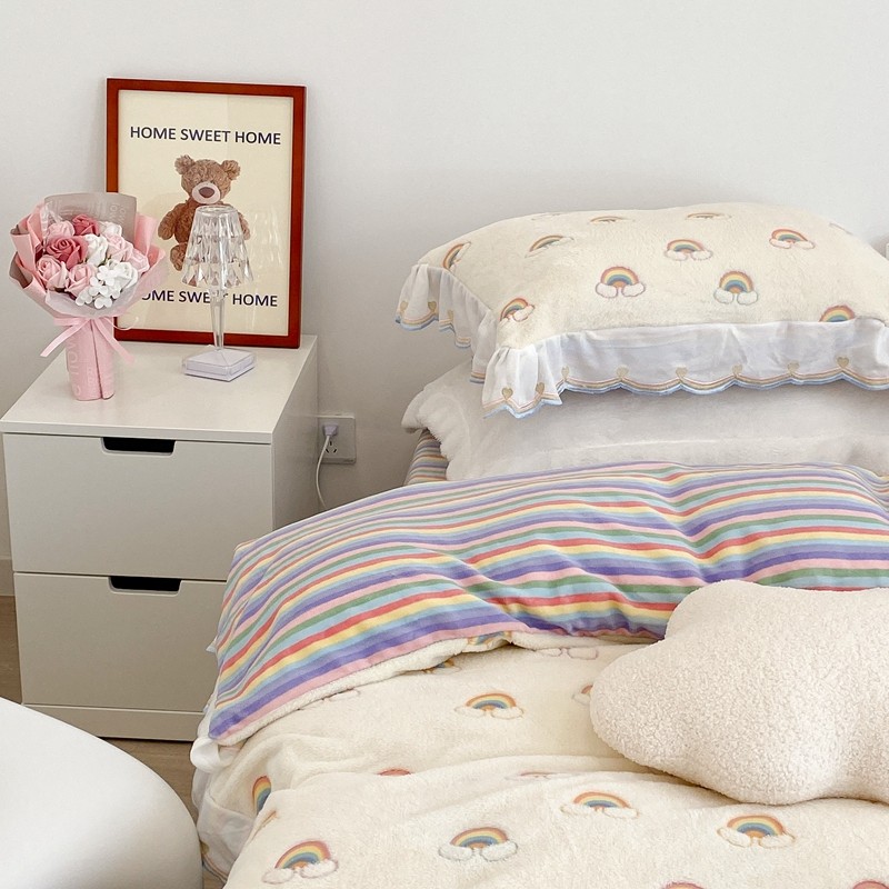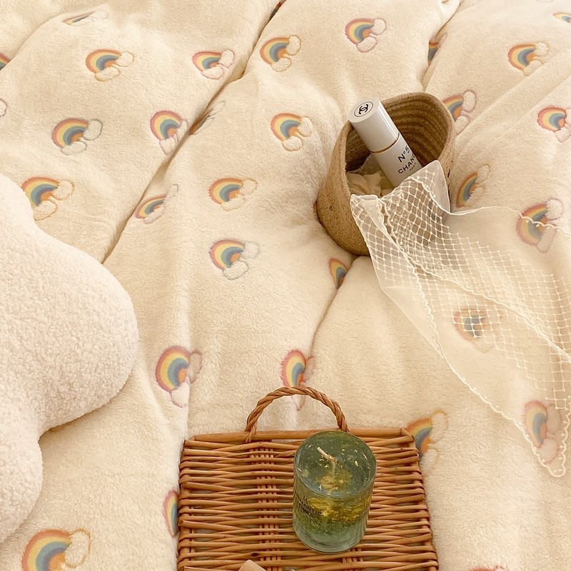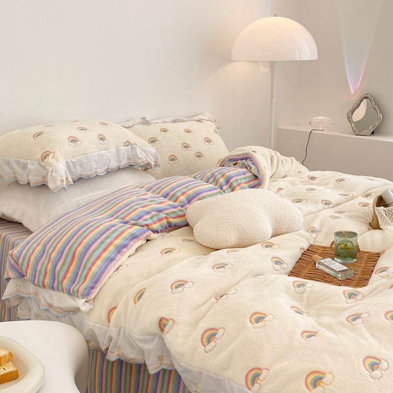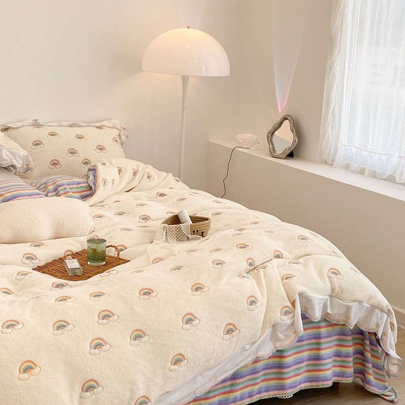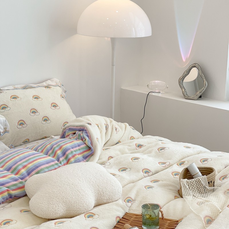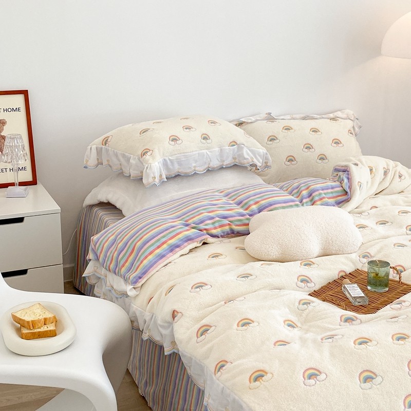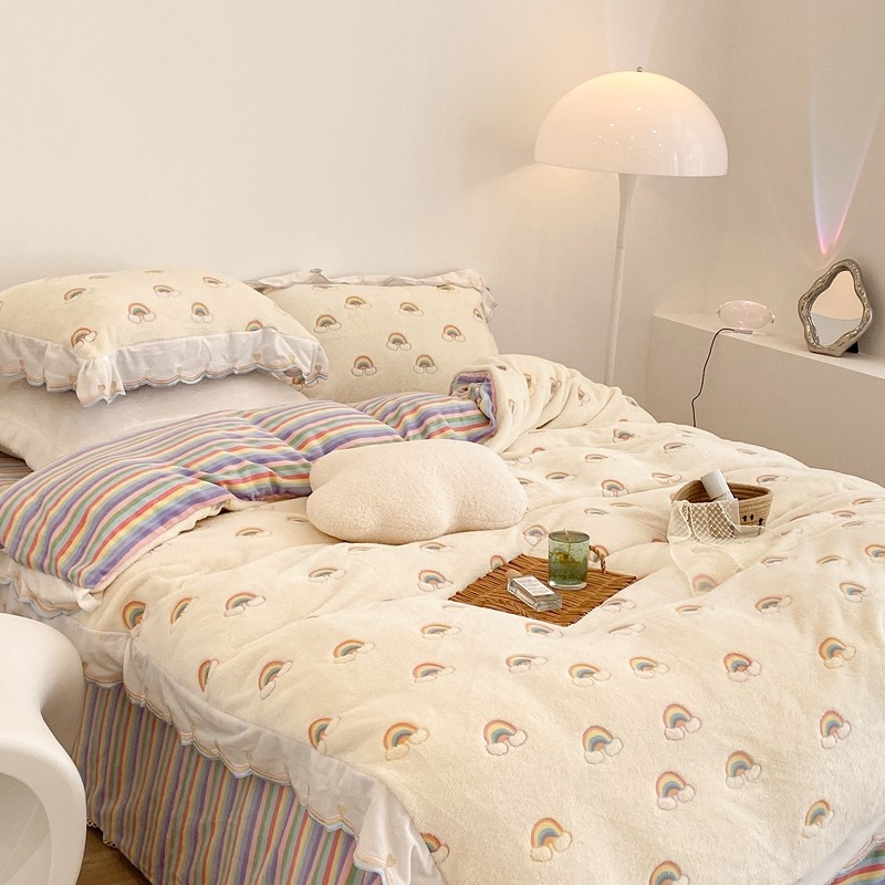 昔可家纺 2021新款coco雪貂绒四件套 小彩虹米白