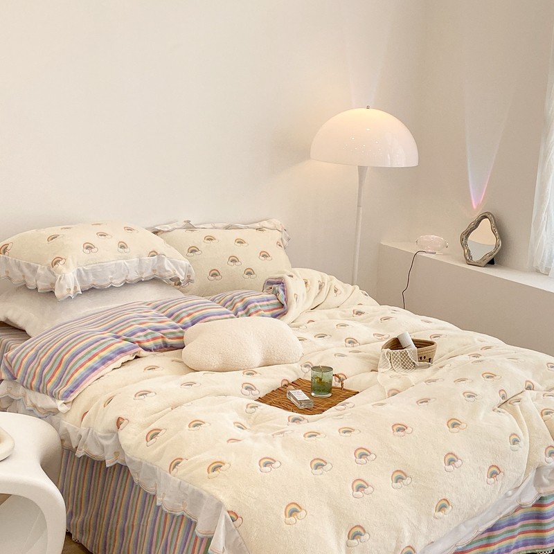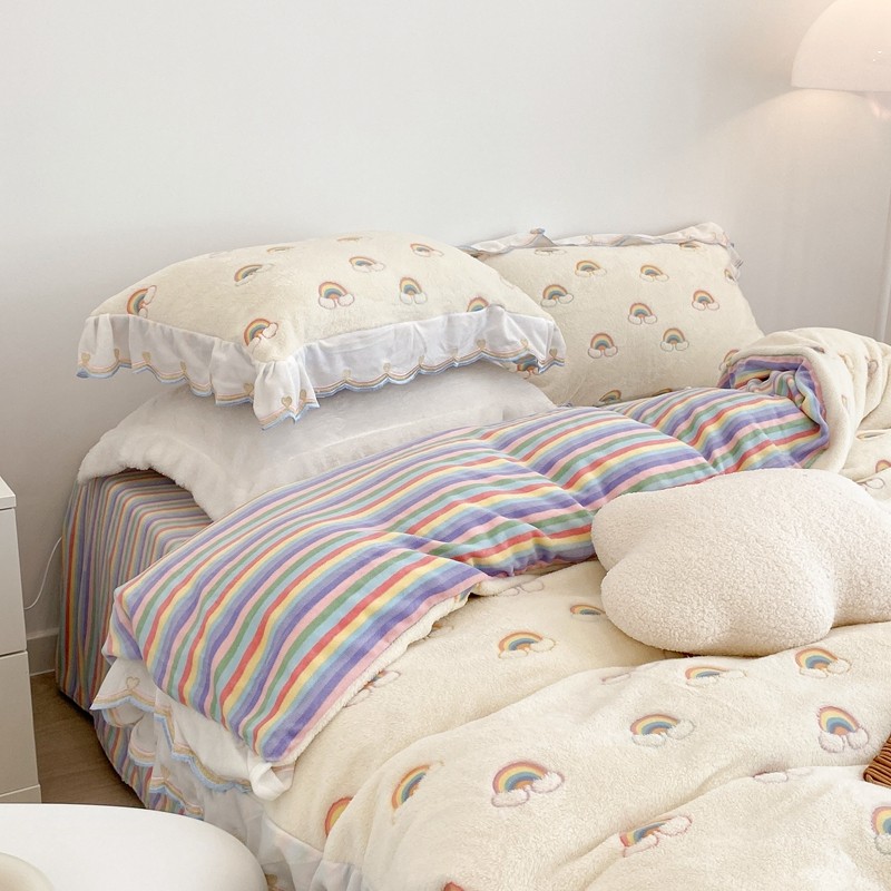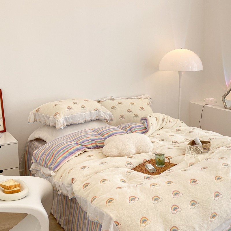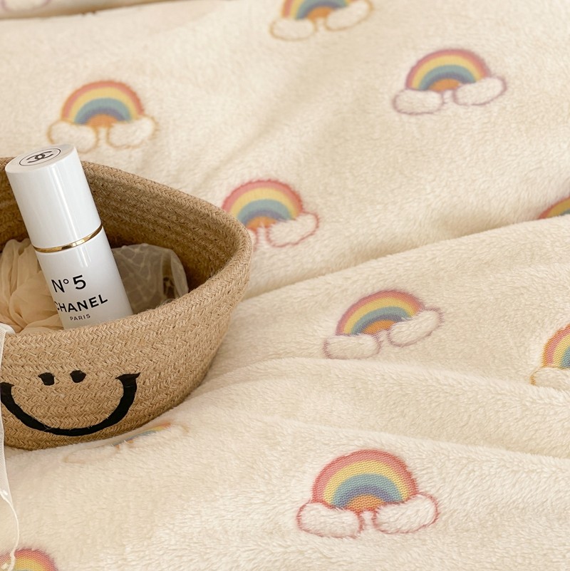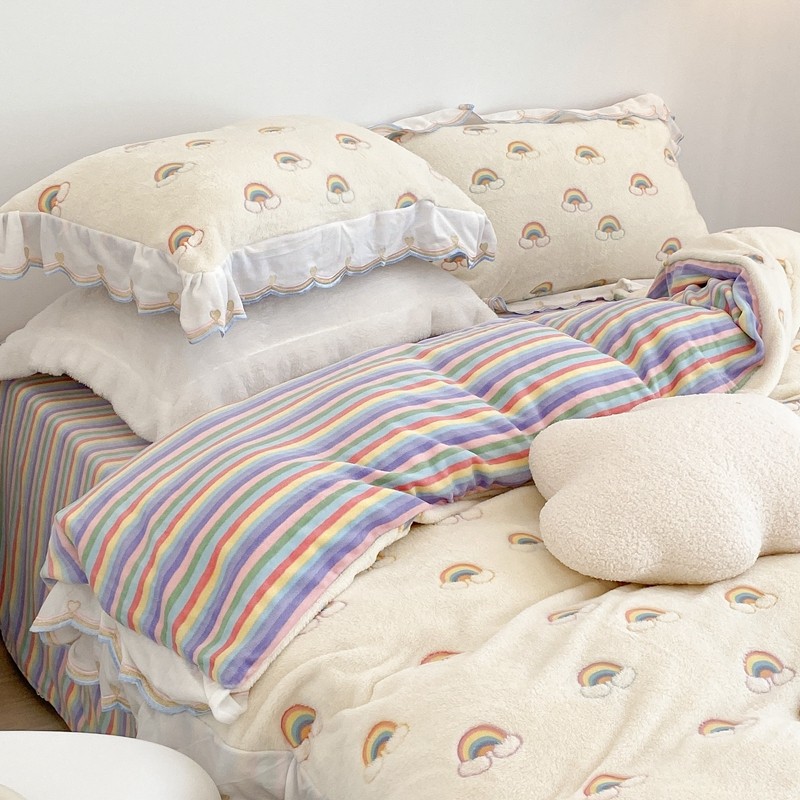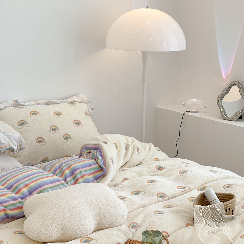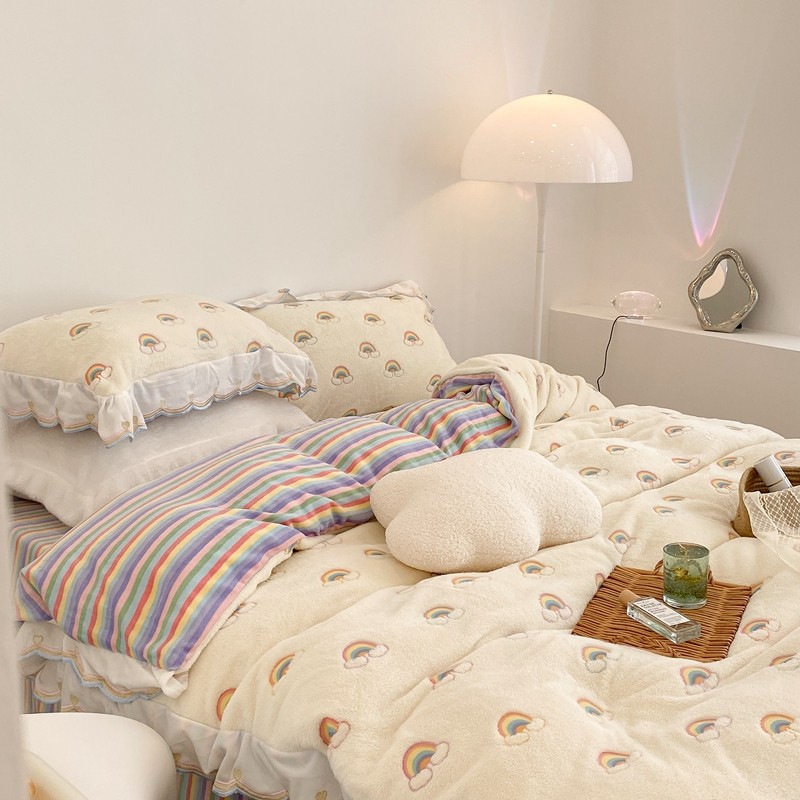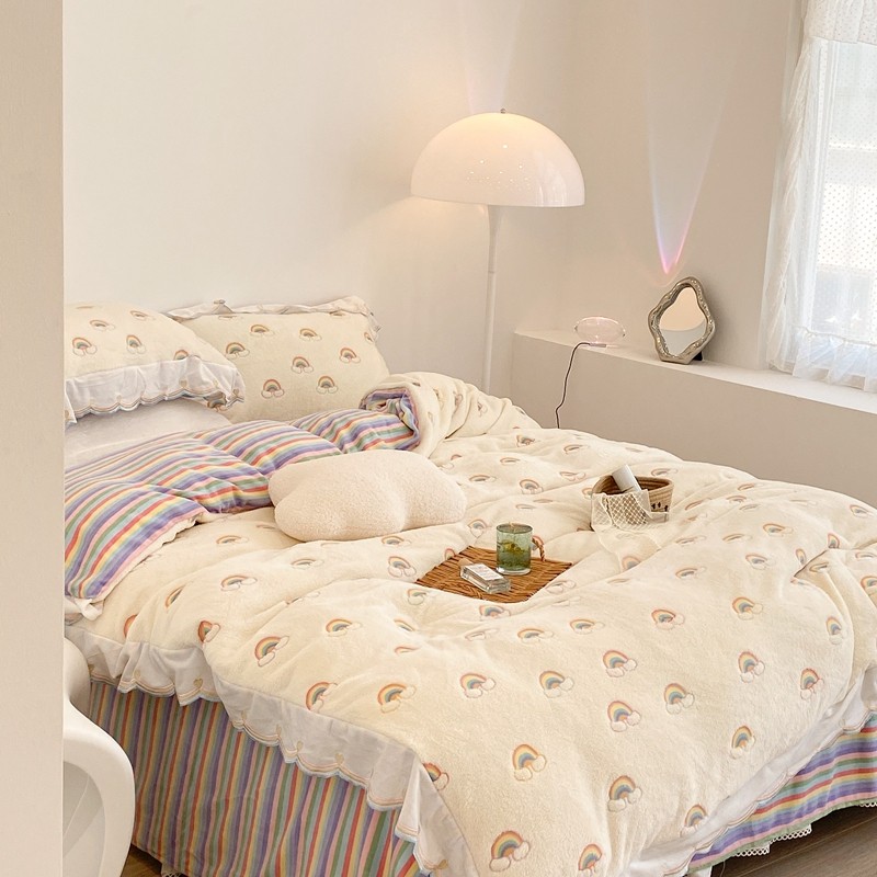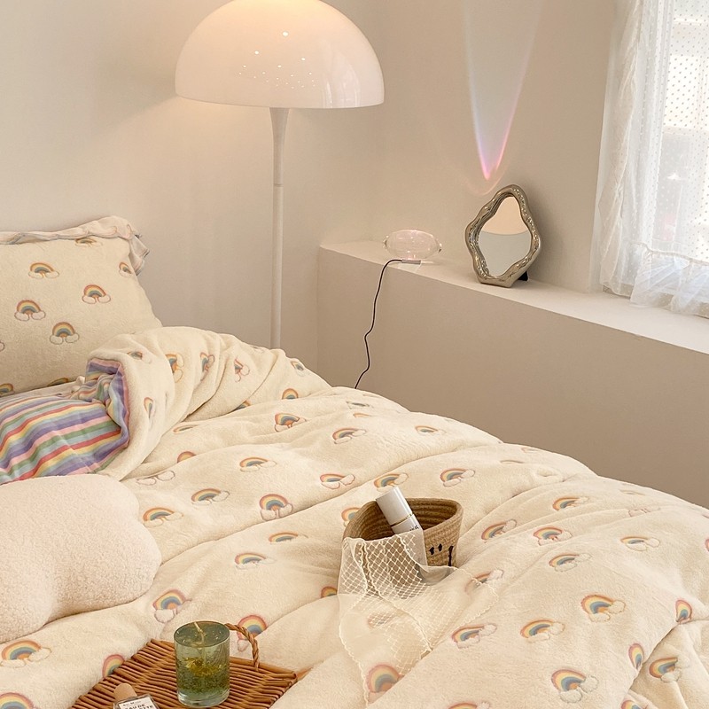 昔可家纺 2021新款coco雪貂绒四件套 小彩虹米白