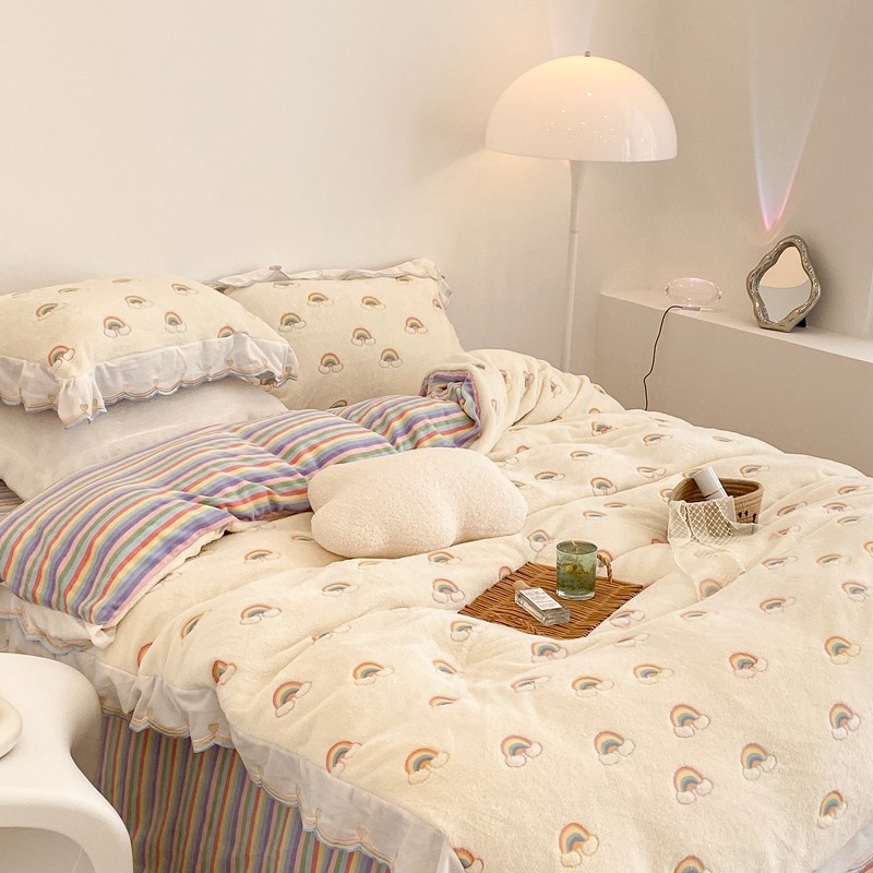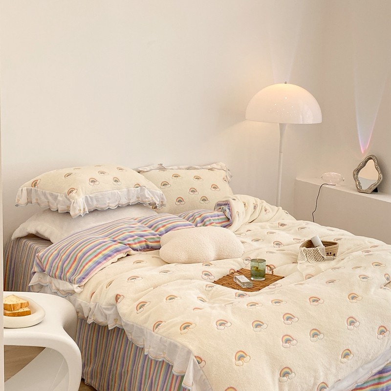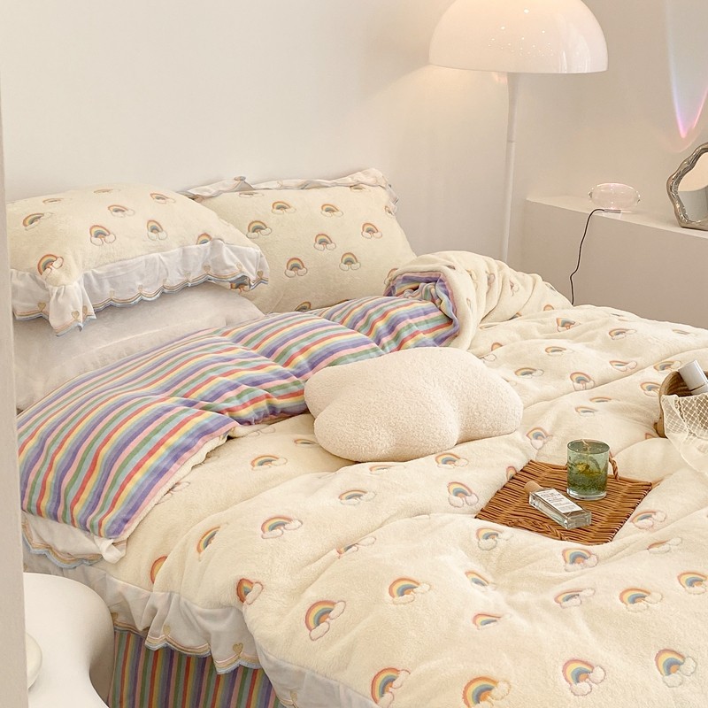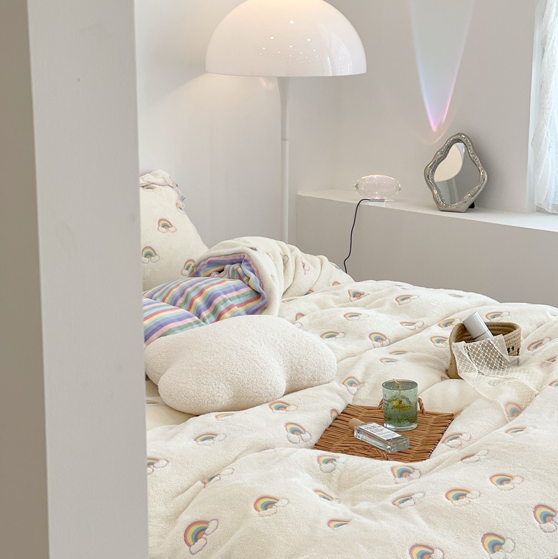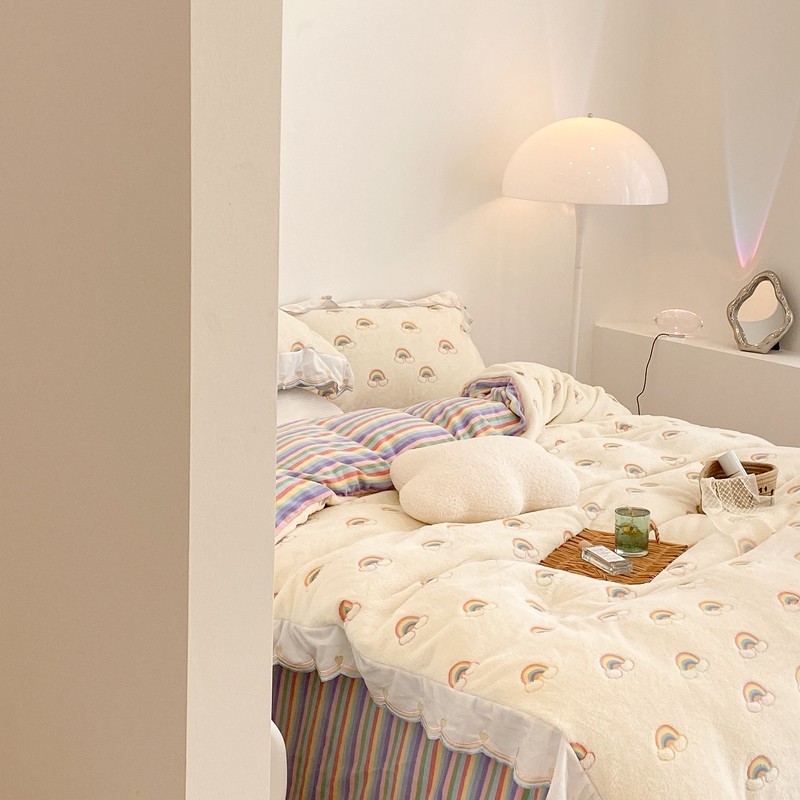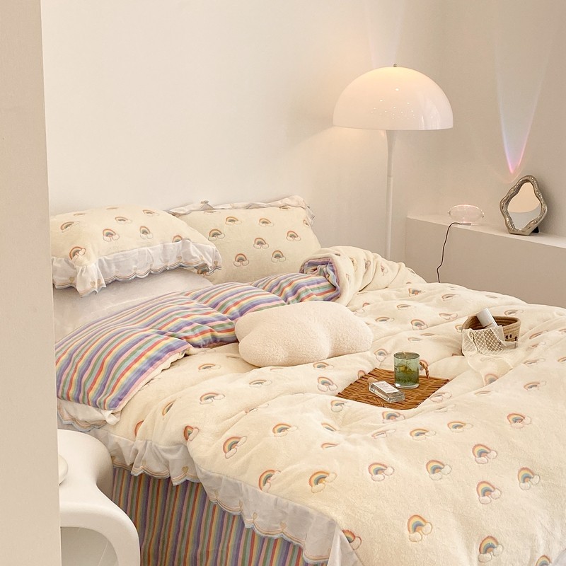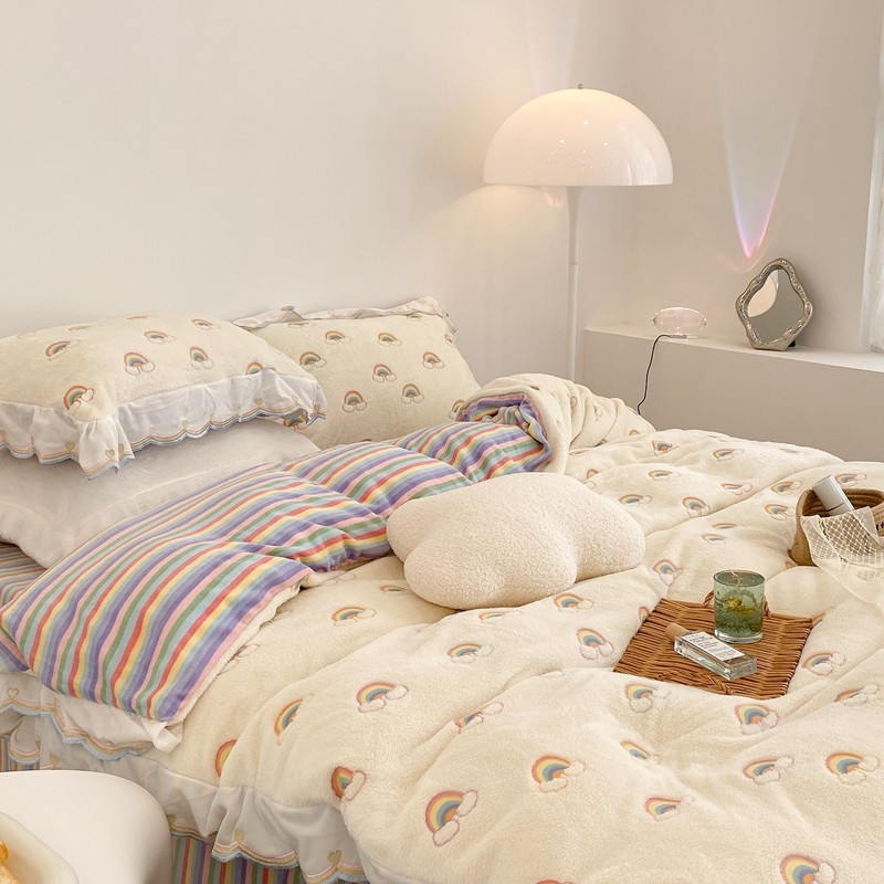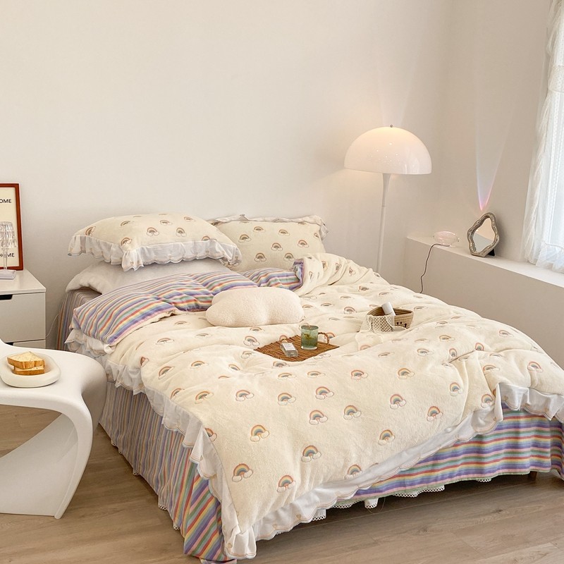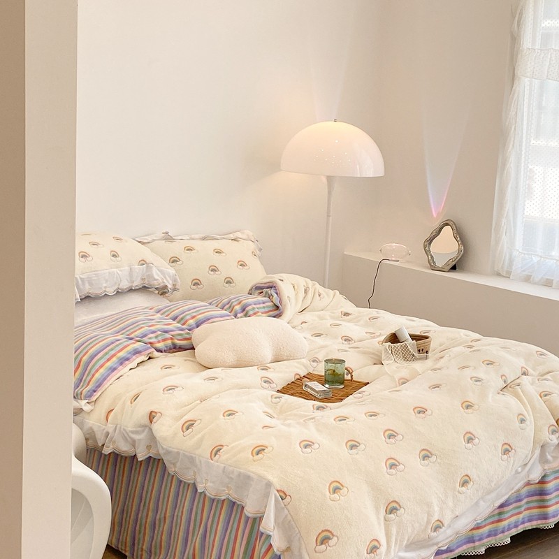 昔可家纺 2021新款coco雪貂绒四件套 小彩虹米白