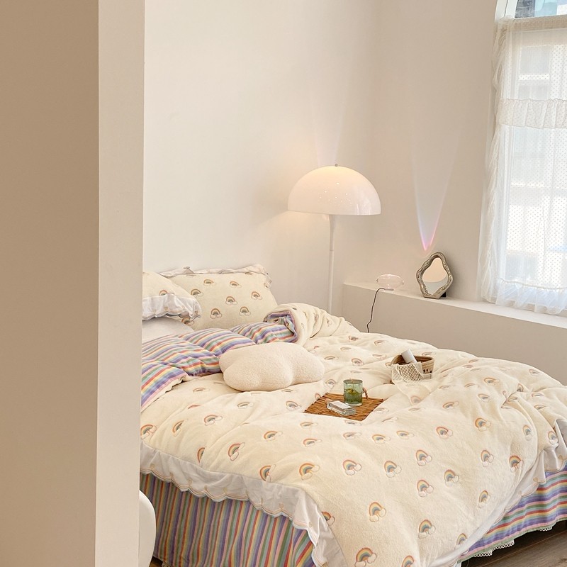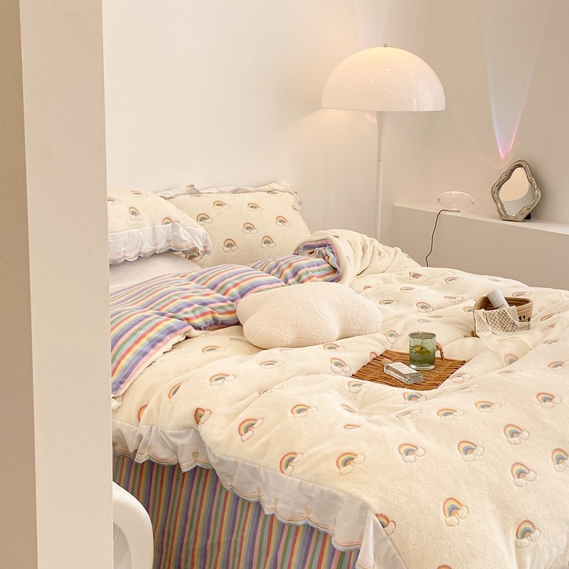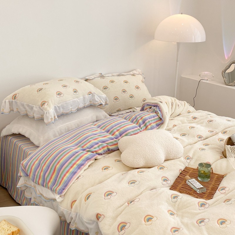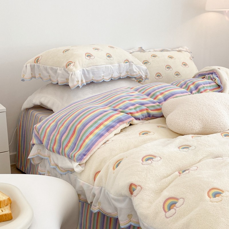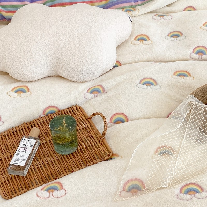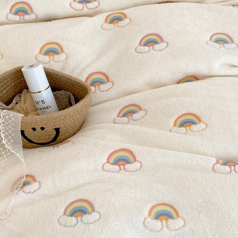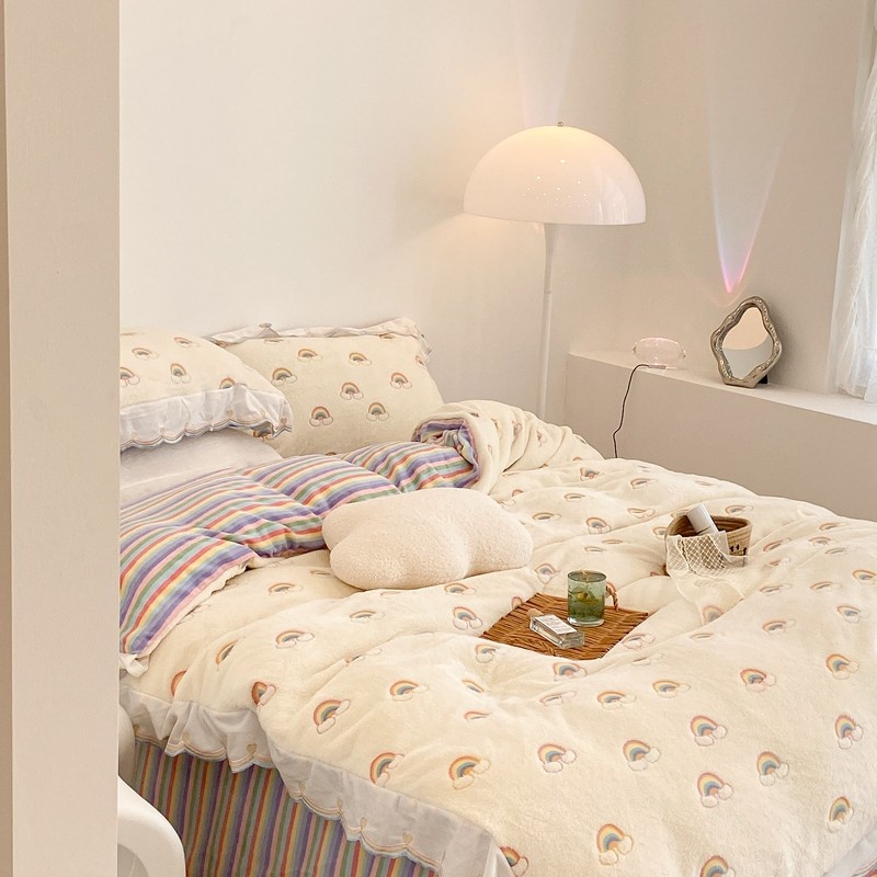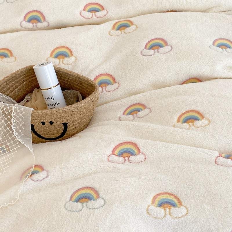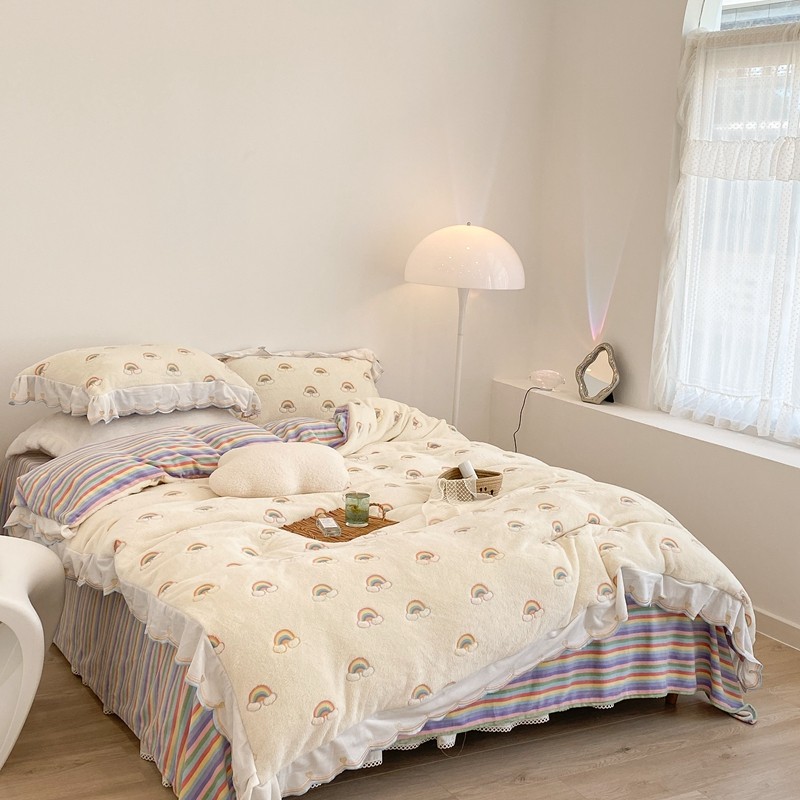 昔可家纺 2021新款coco雪貂绒四件套 小彩虹米白
