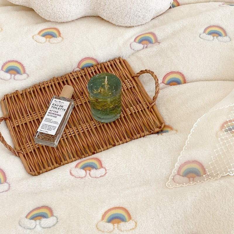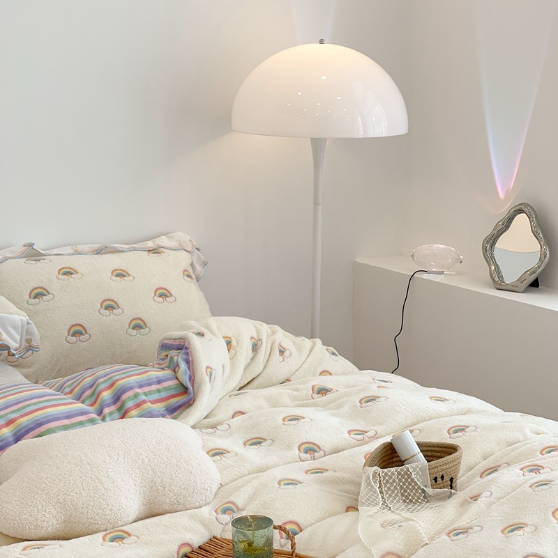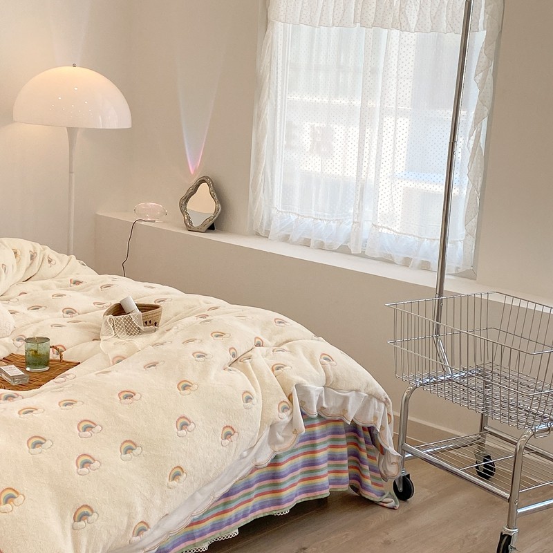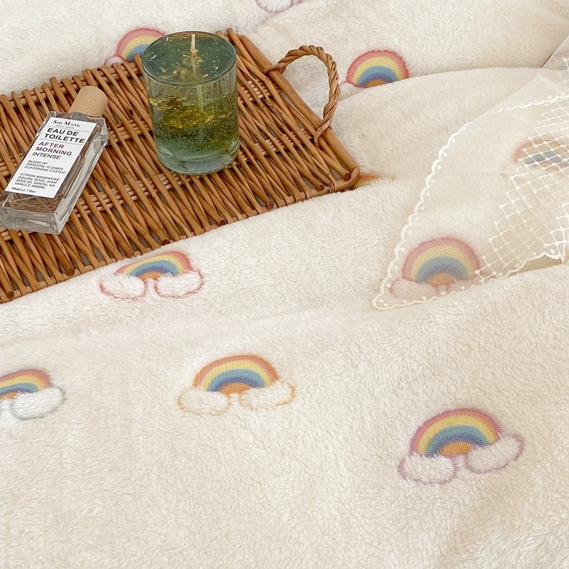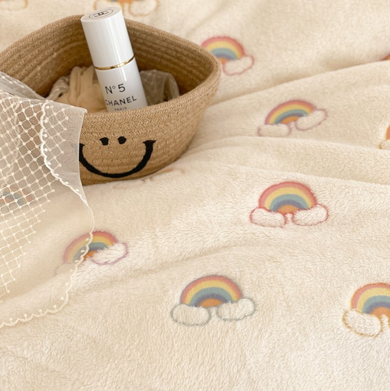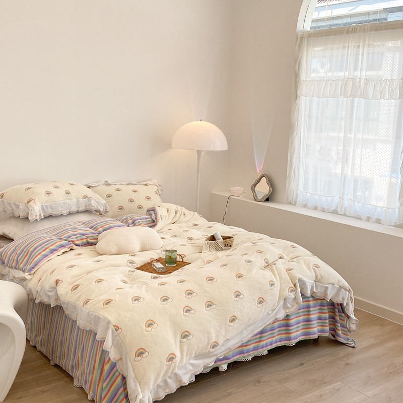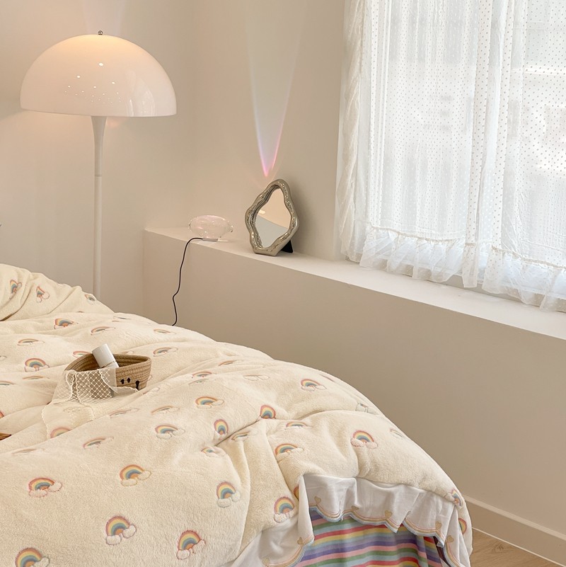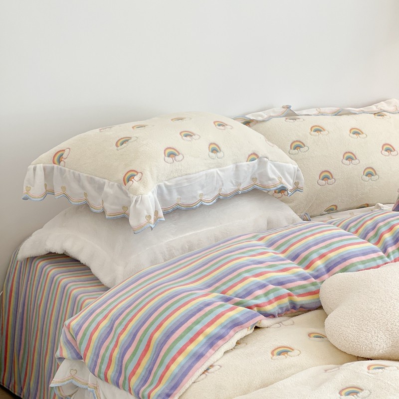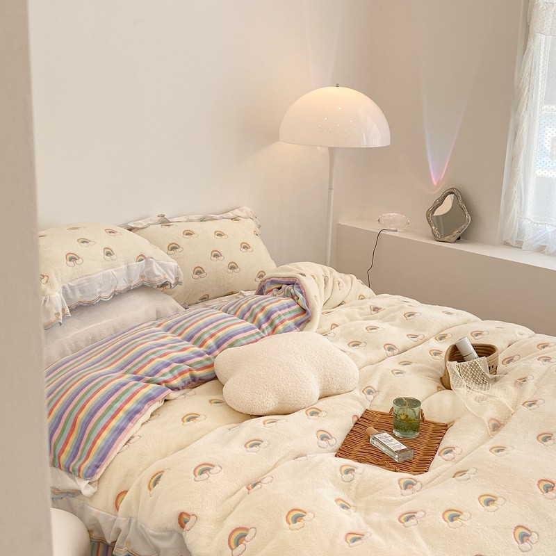 昔可家纺 2021新款coco雪貂绒四件套 小彩虹米白