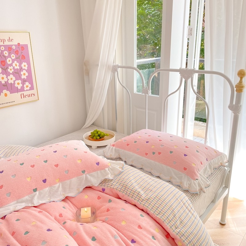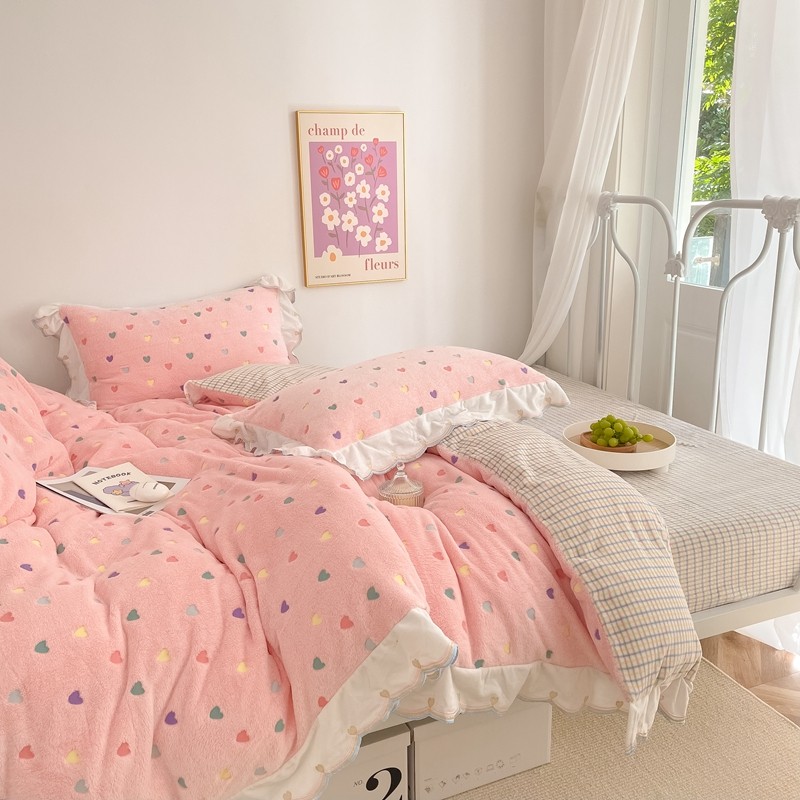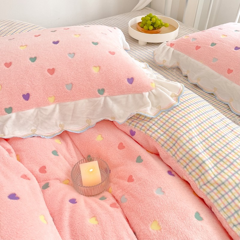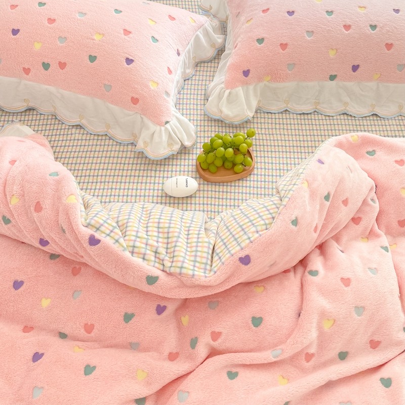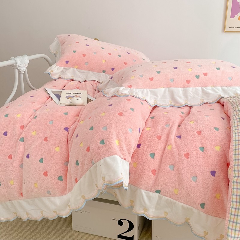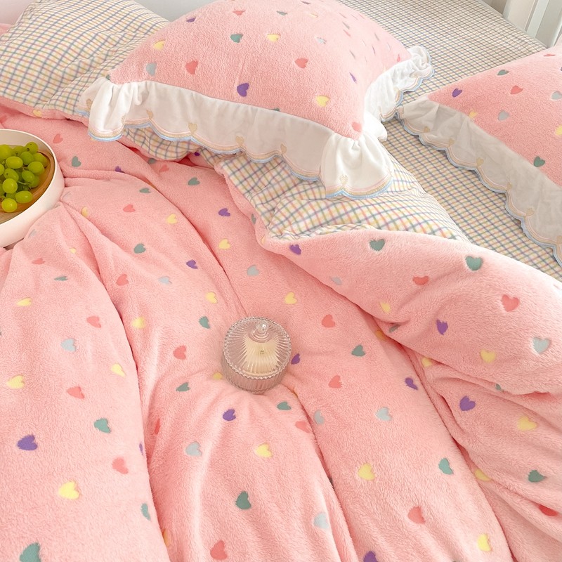 昔可家纺 2021新款coco雪貂绒四件套 小爱心 粉