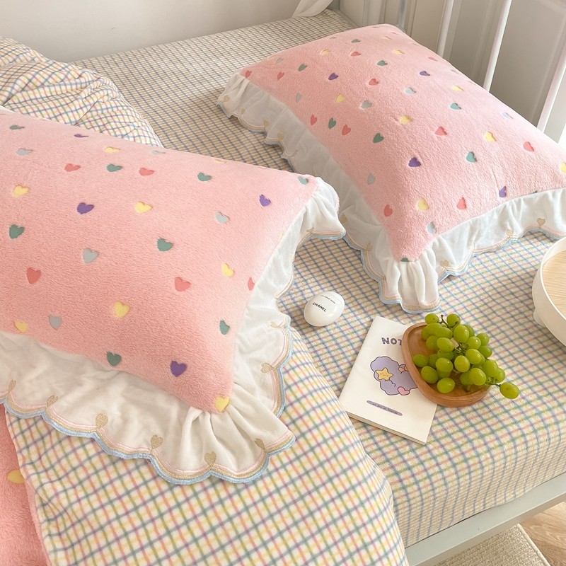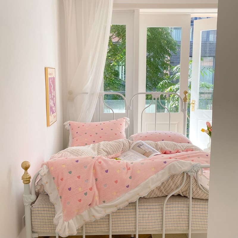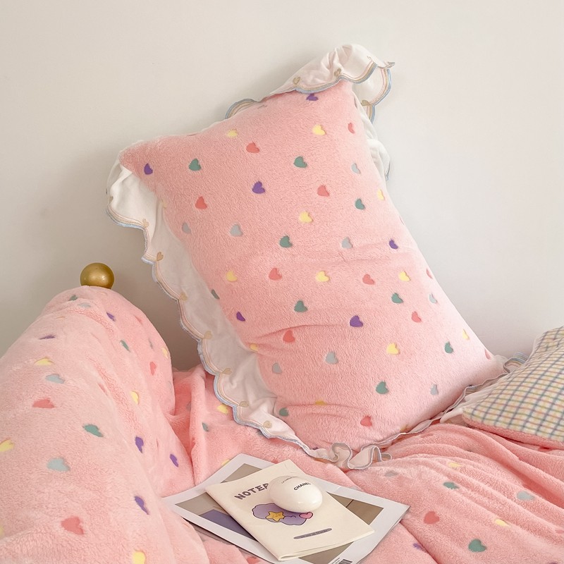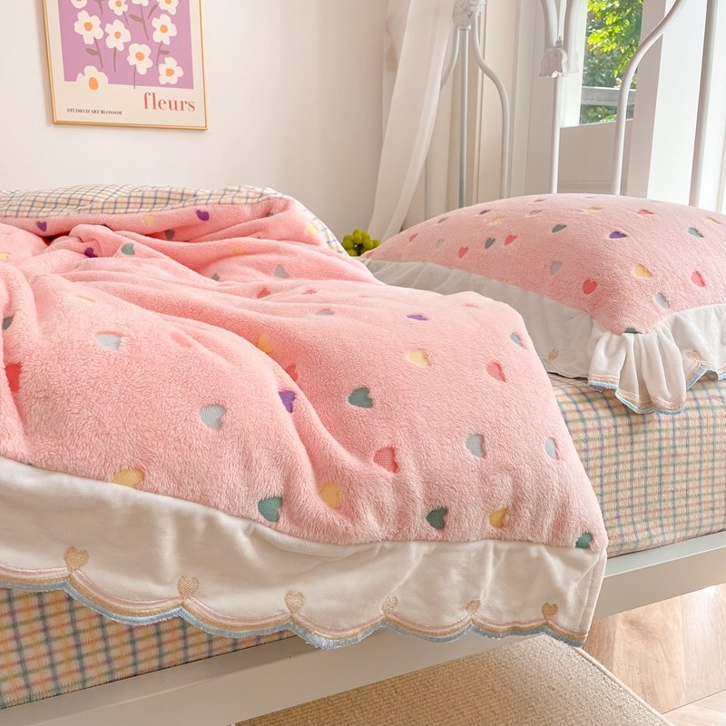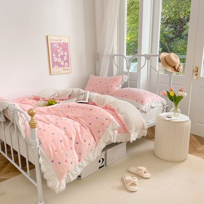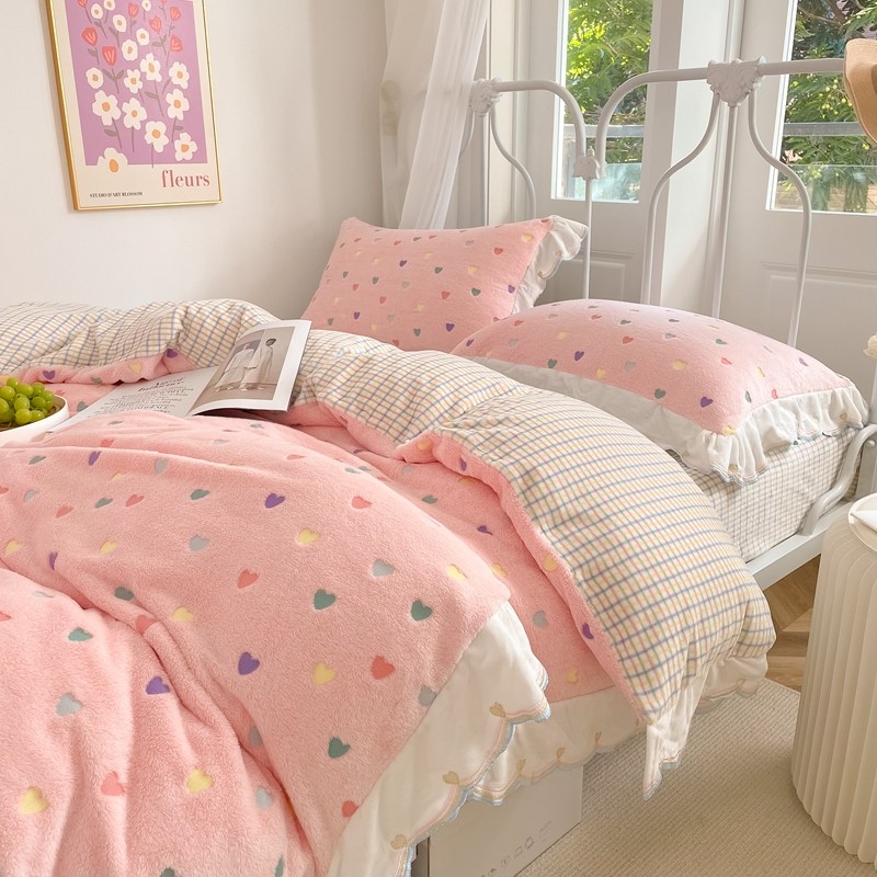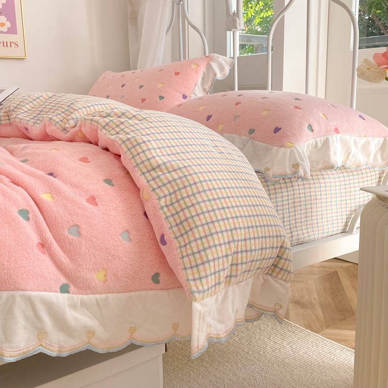 昔可家纺 2021新款coco雪貂绒四件套 小爱心 粉