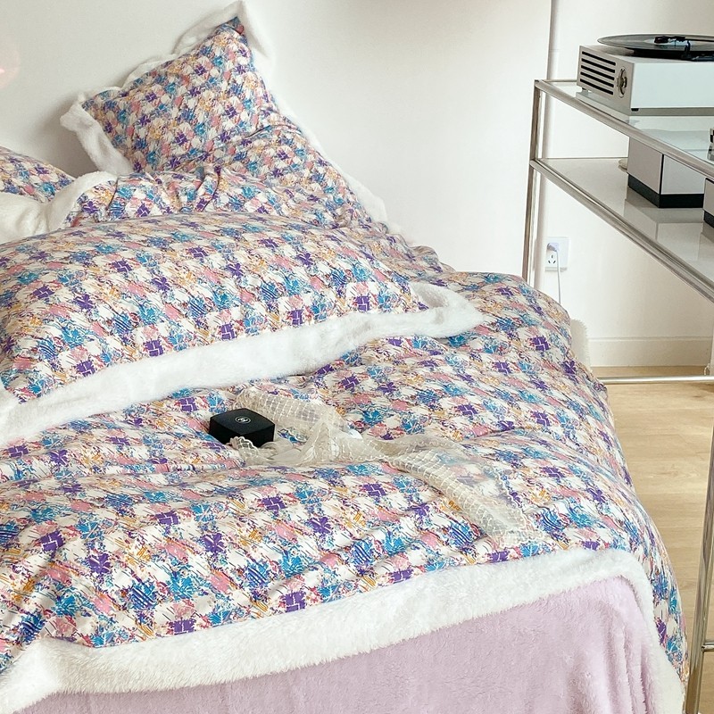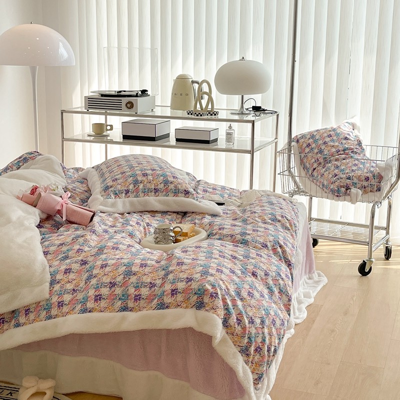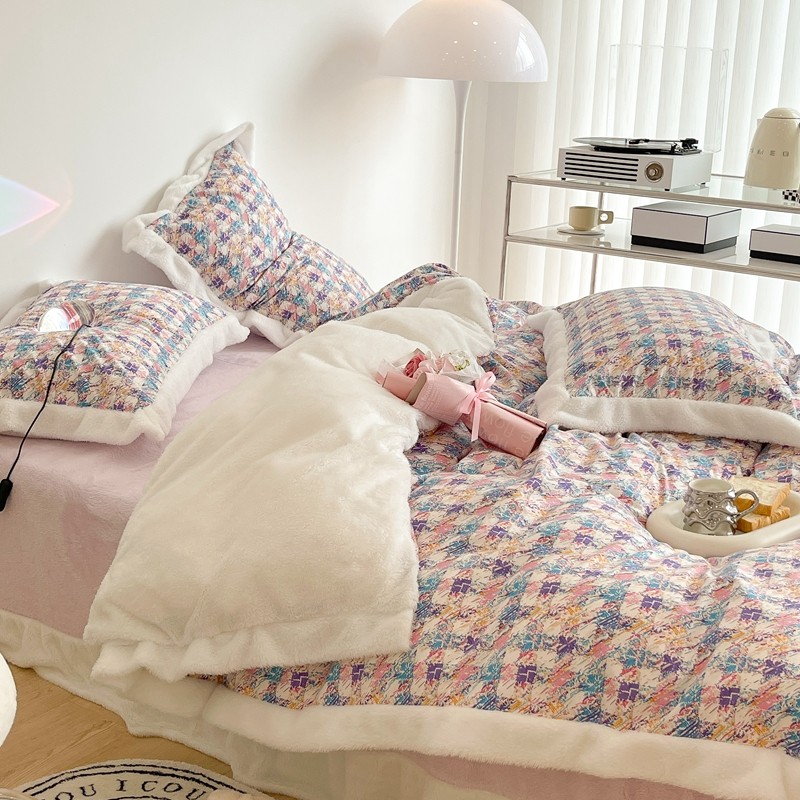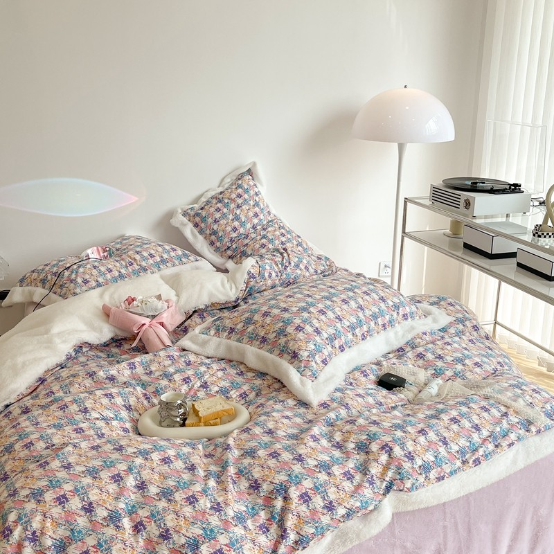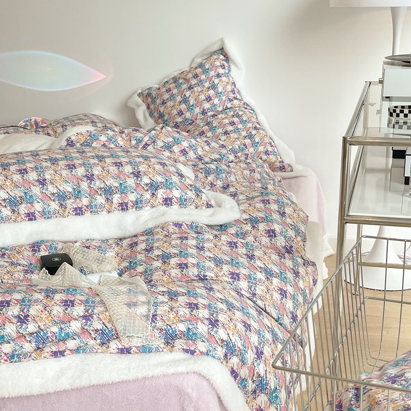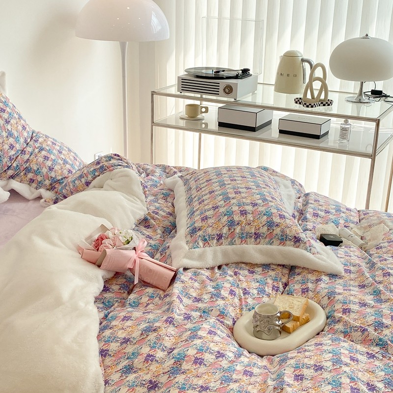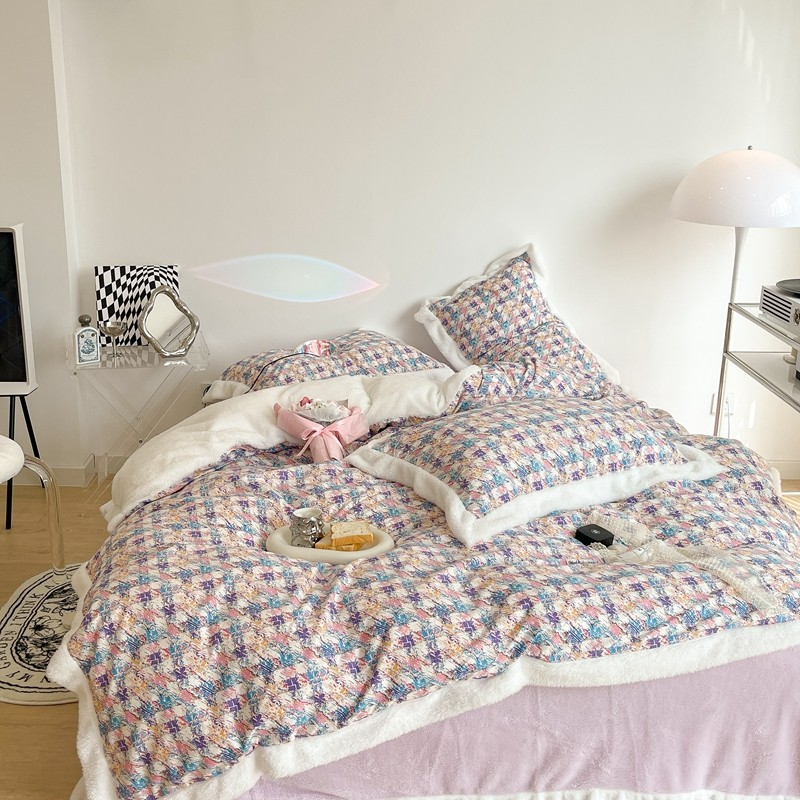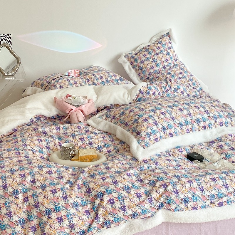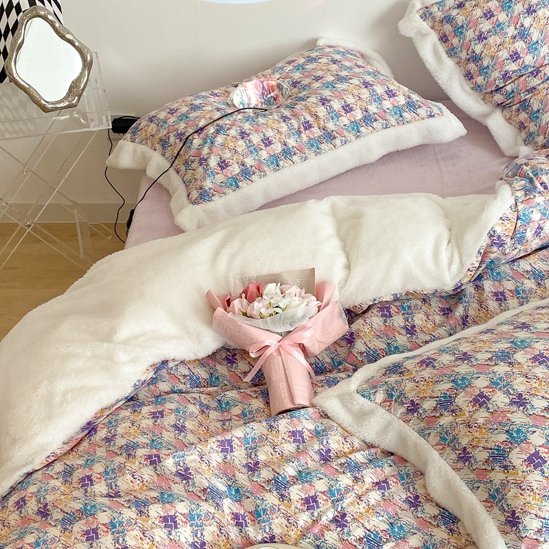 昔可家纺 2021新款小香香风棉加泰迪绒四件套 香香紫