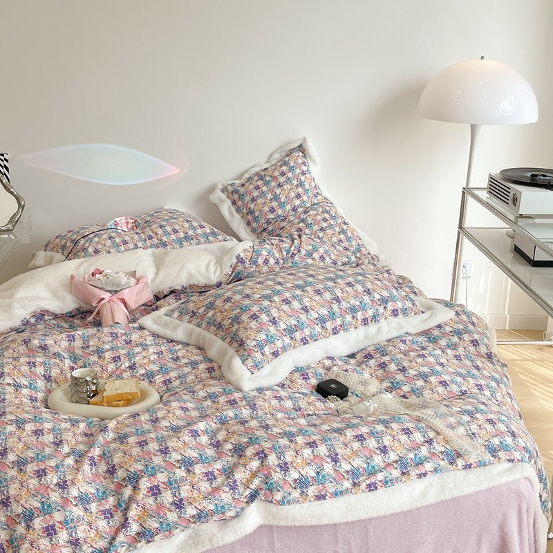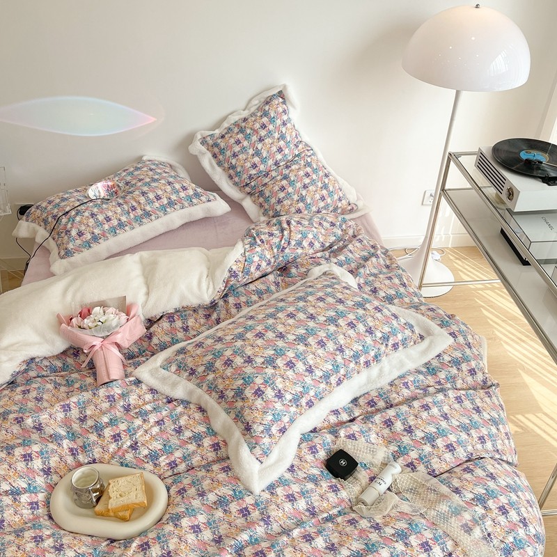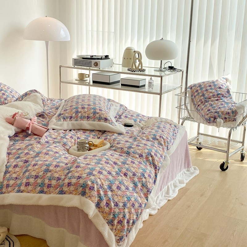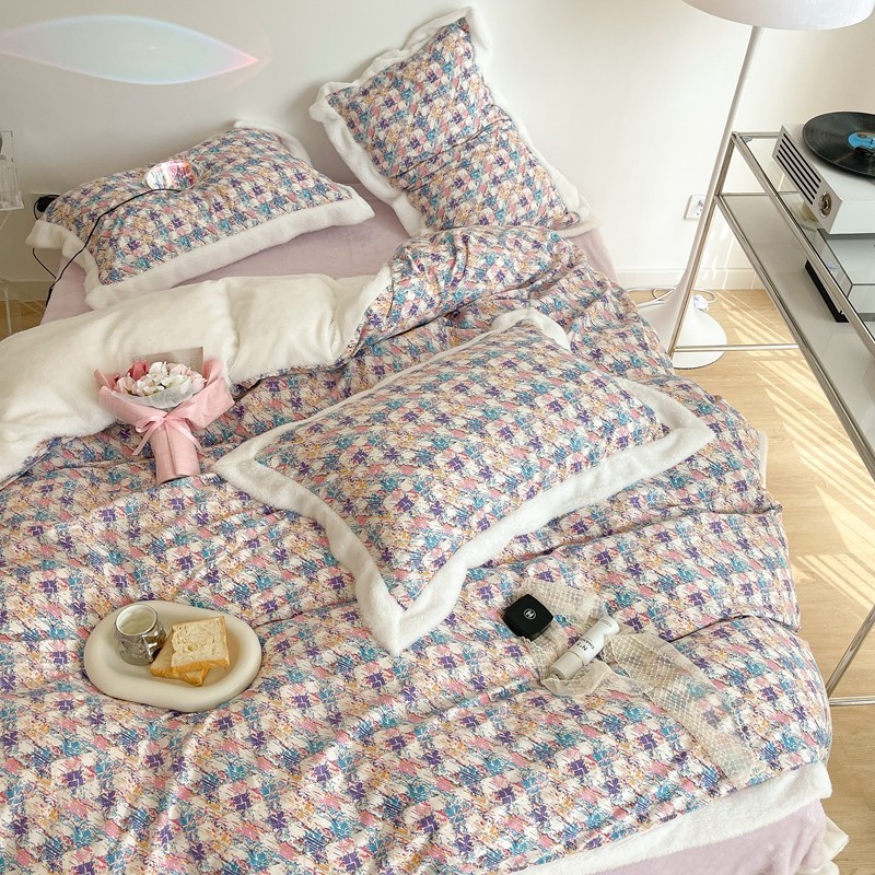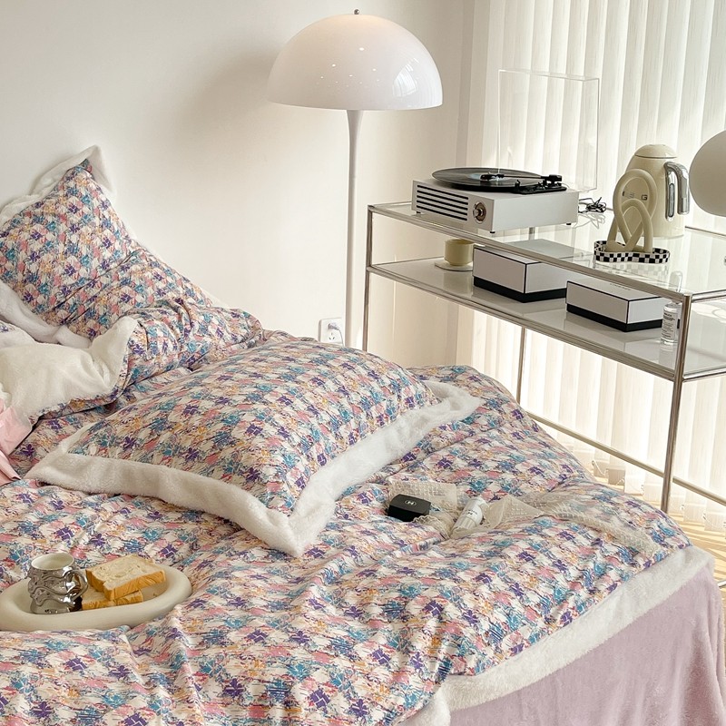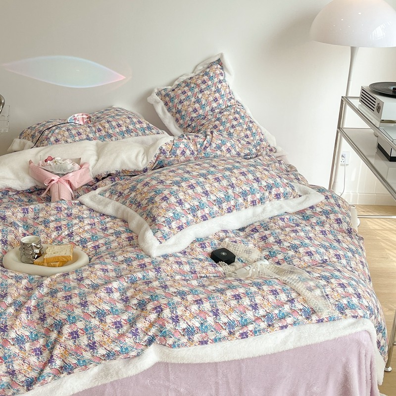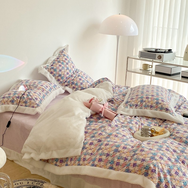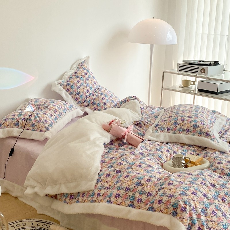 昔可家纺 2021新款小香香风棉加泰迪绒四件套 香香紫