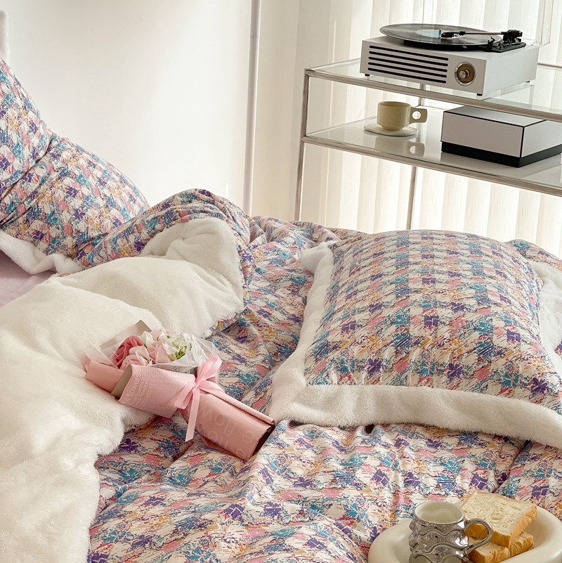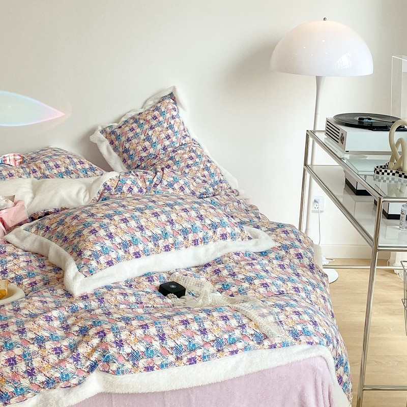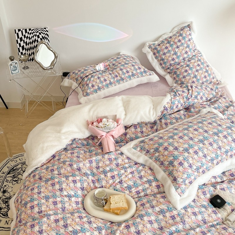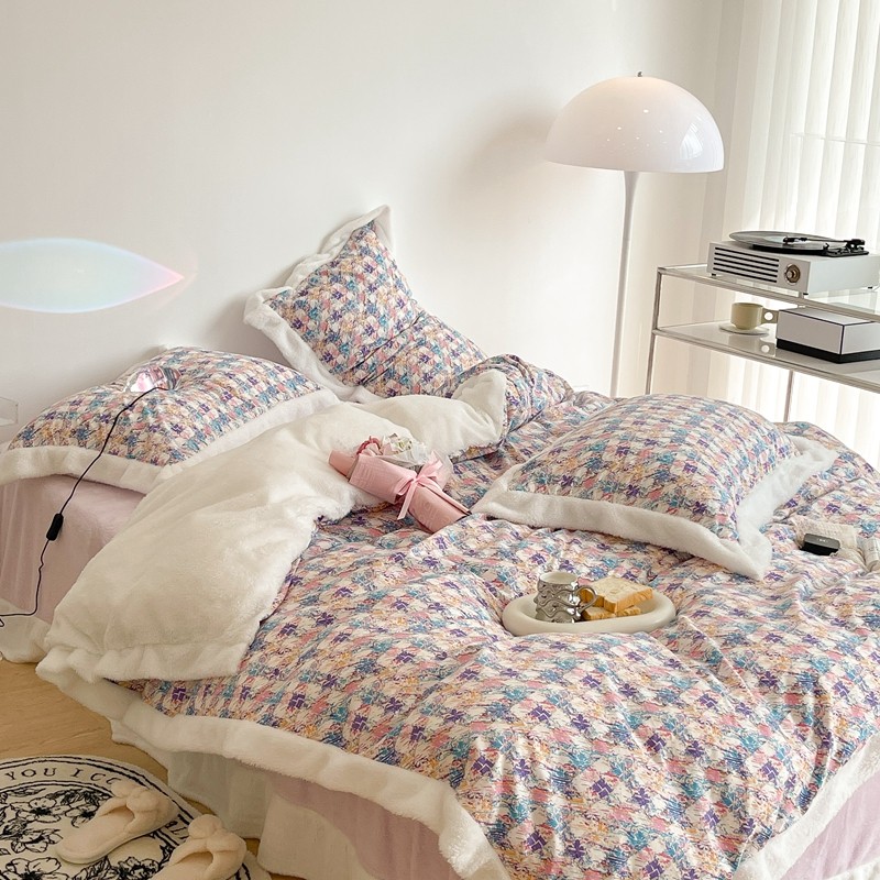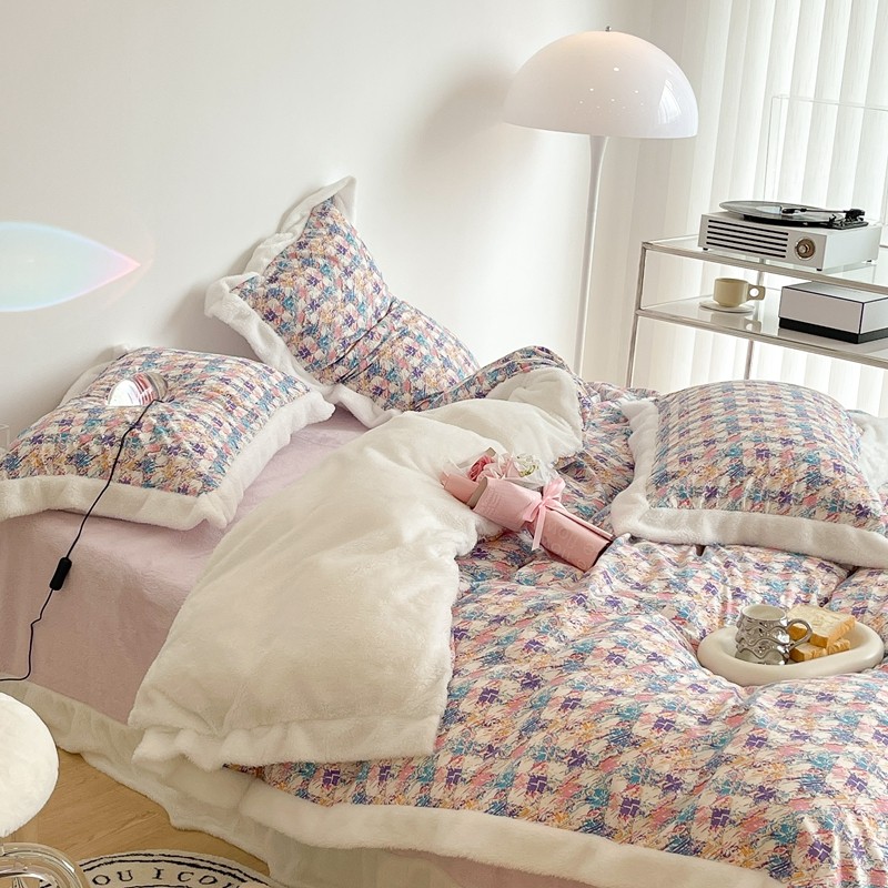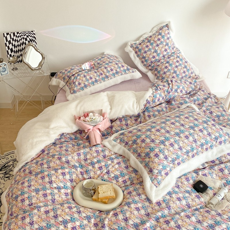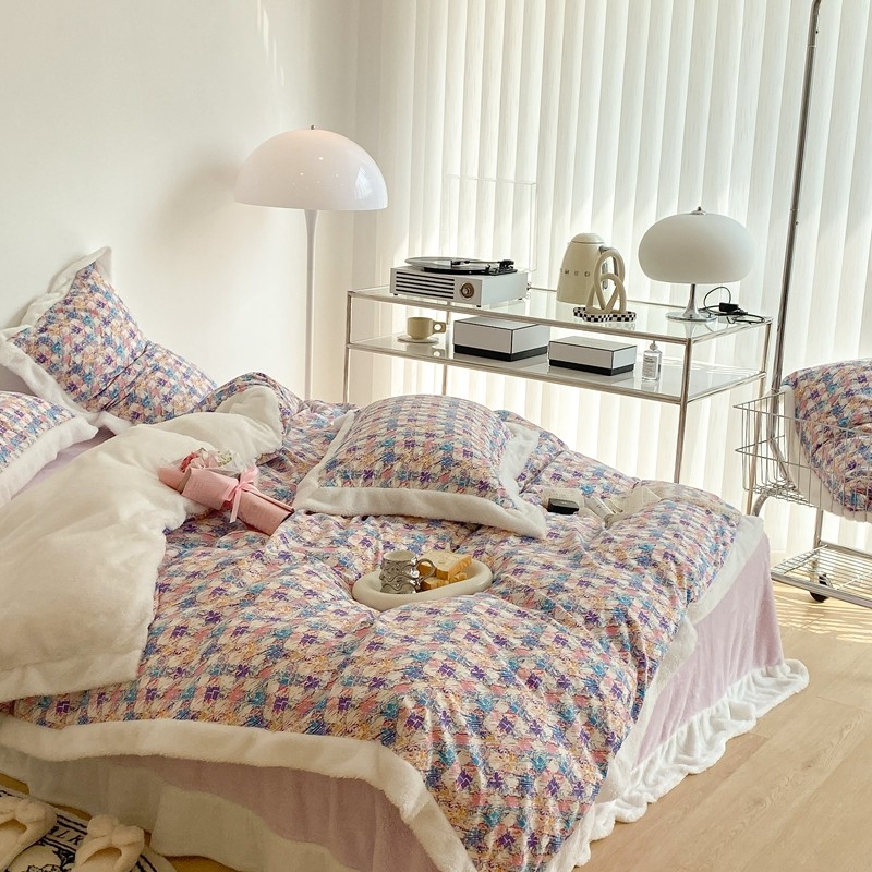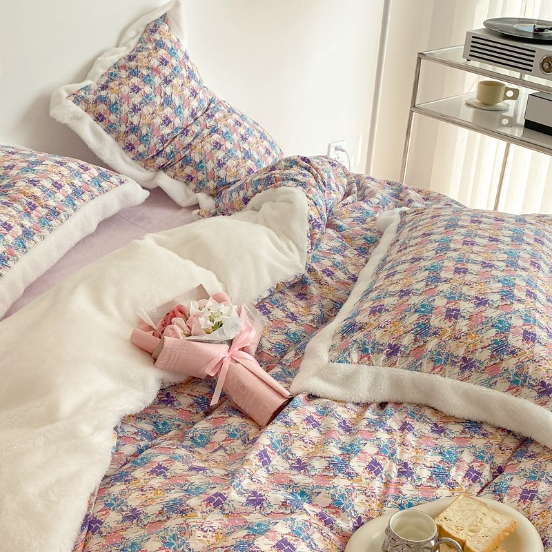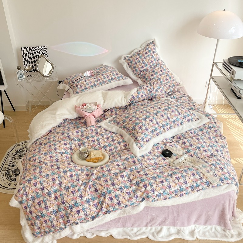 昔可家纺 2021新款小香香风棉加泰迪绒四件套 香香紫