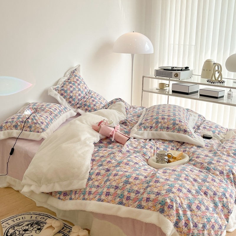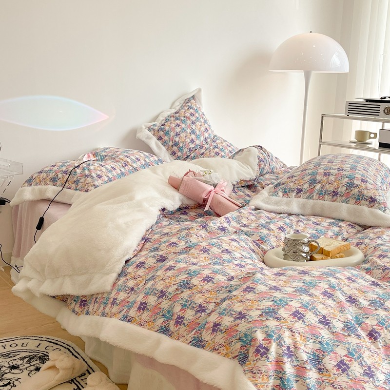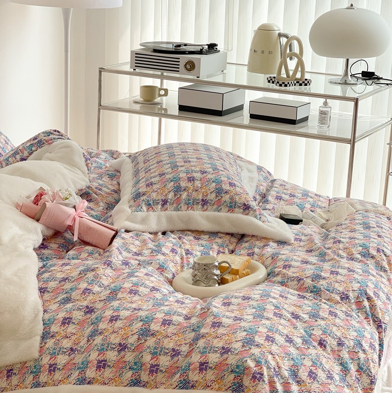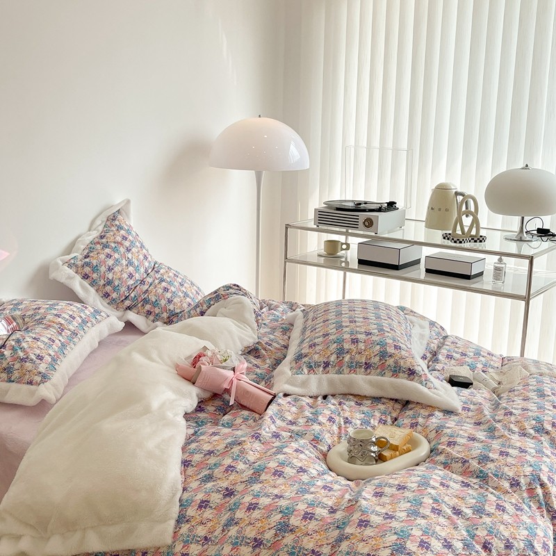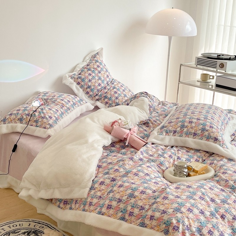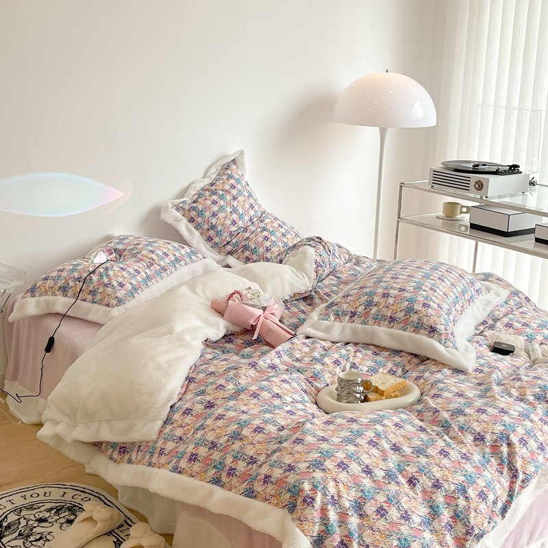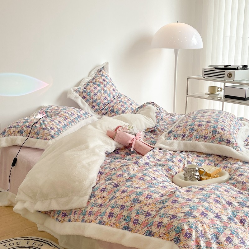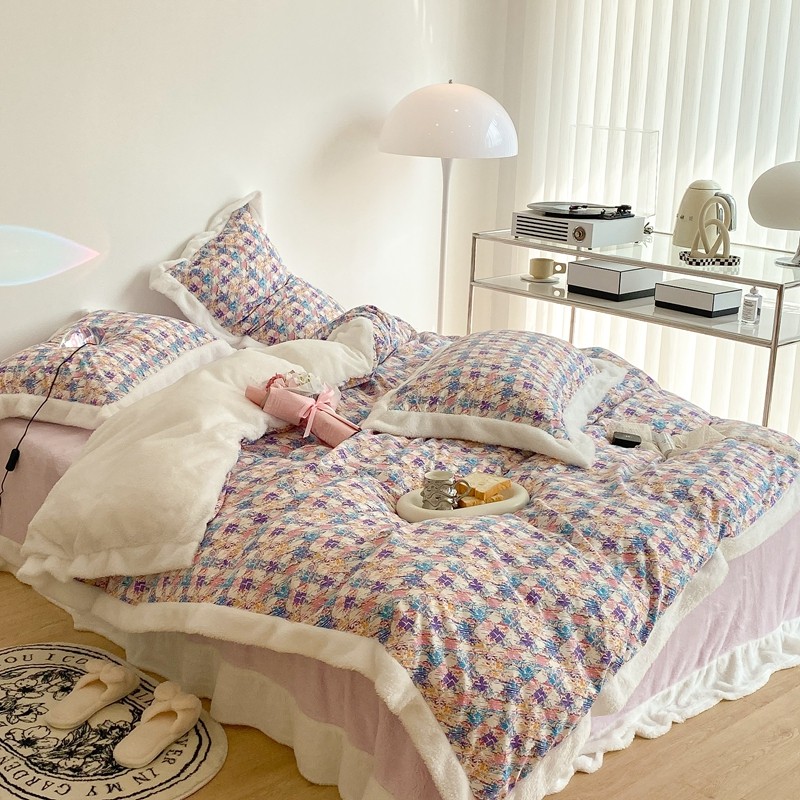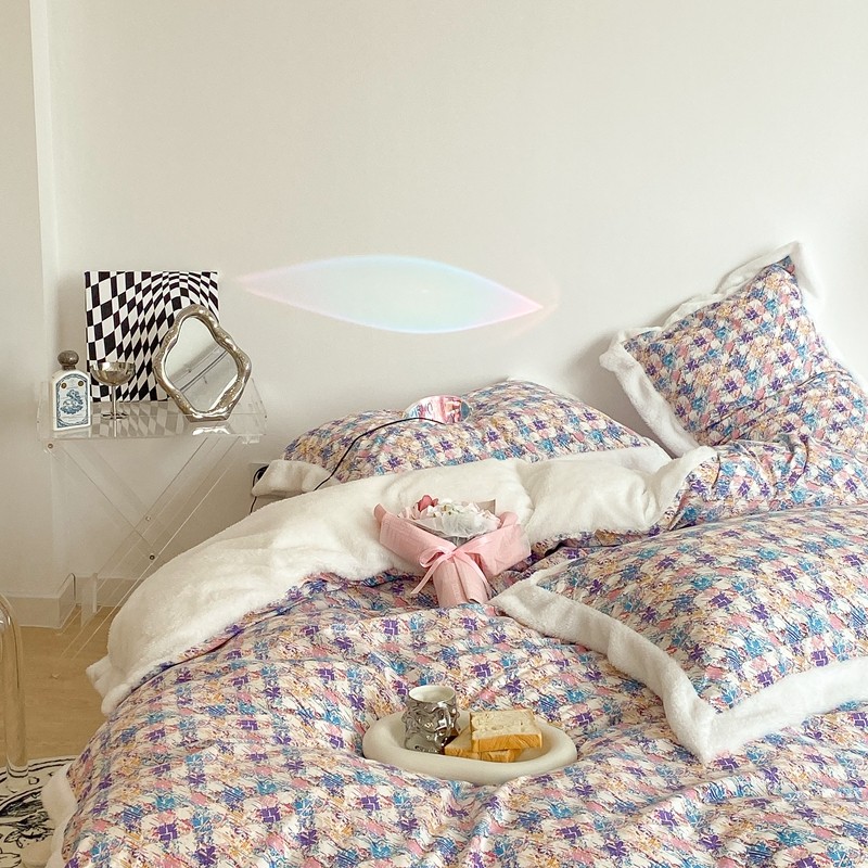 昔可家纺 2021新款小香香风棉加泰迪绒四件套 香香紫