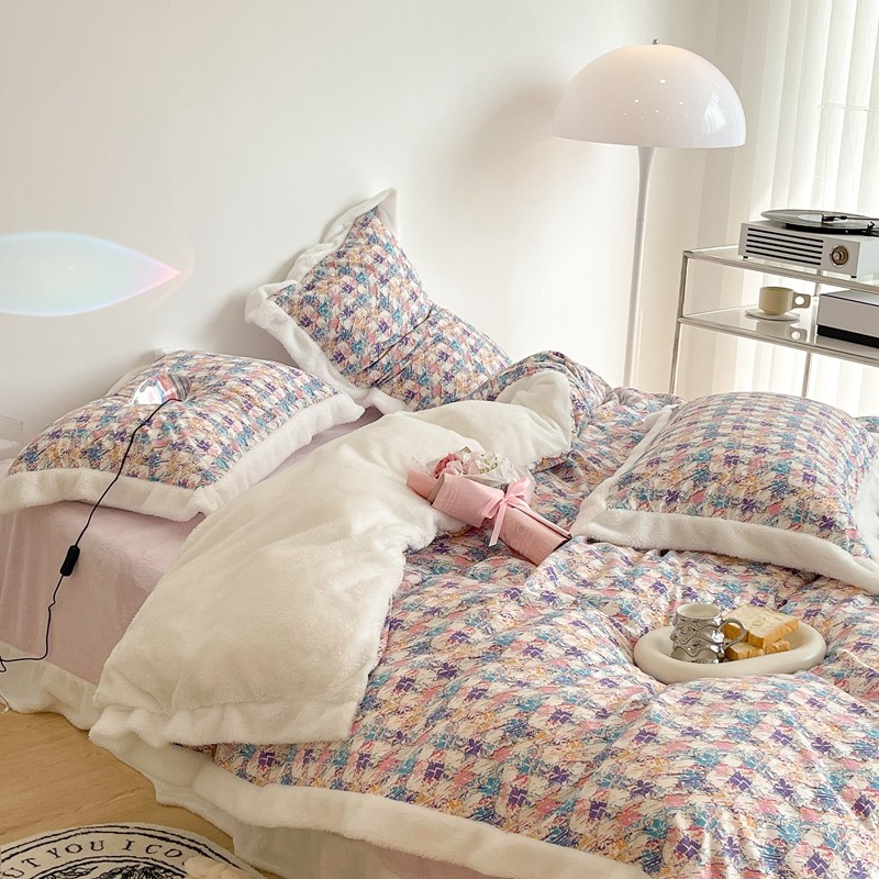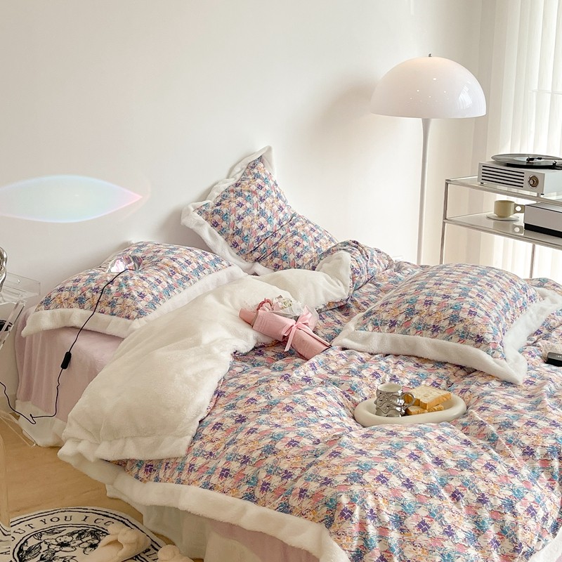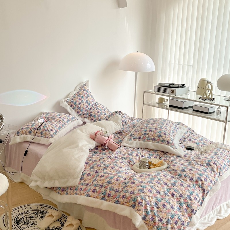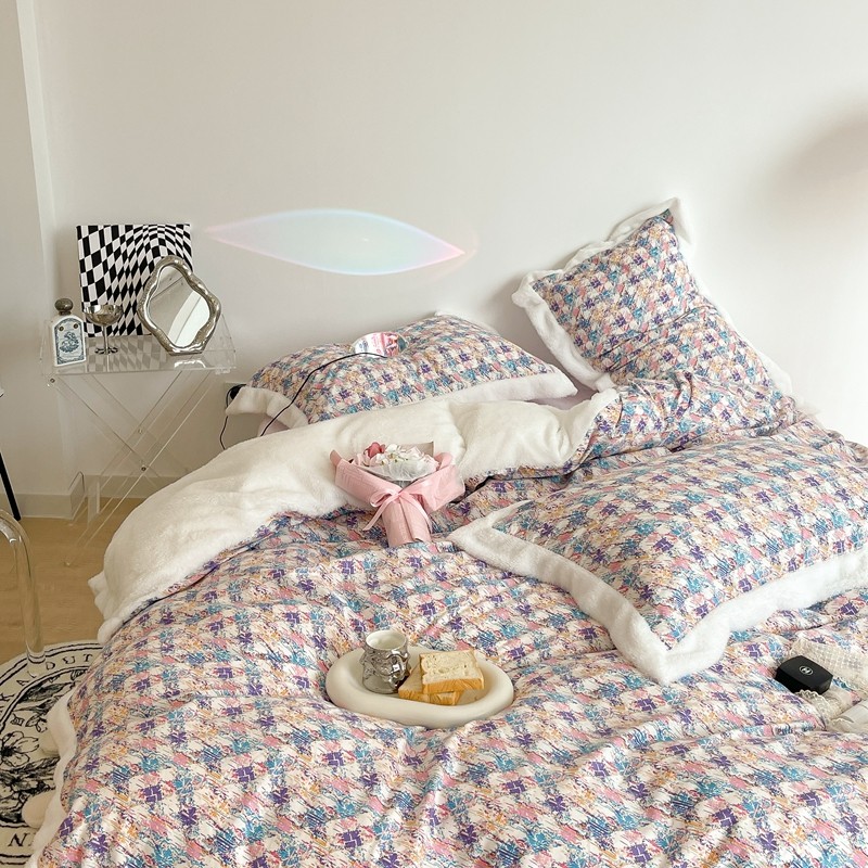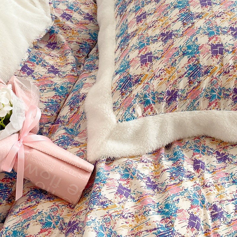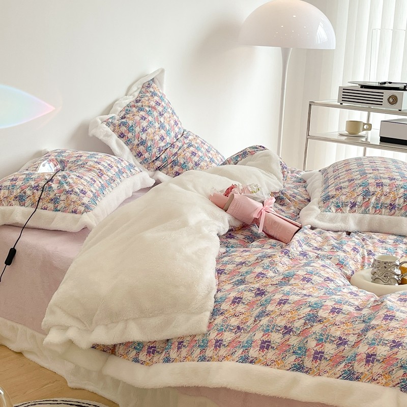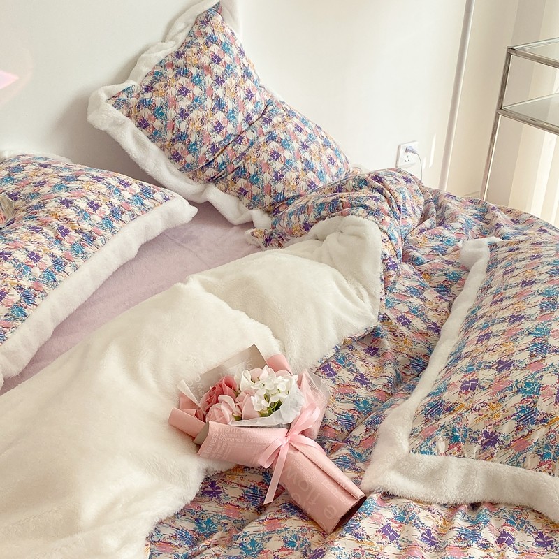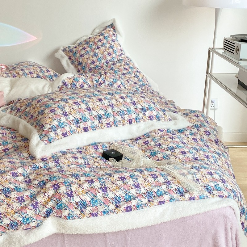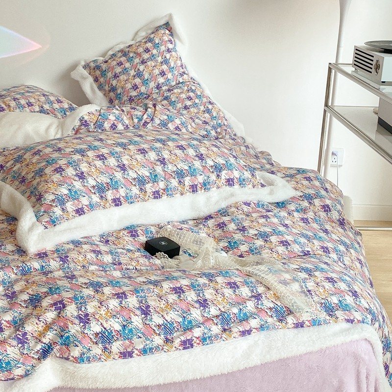 昔可家纺 2021新款小香香风棉加泰迪绒四件套 香香紫