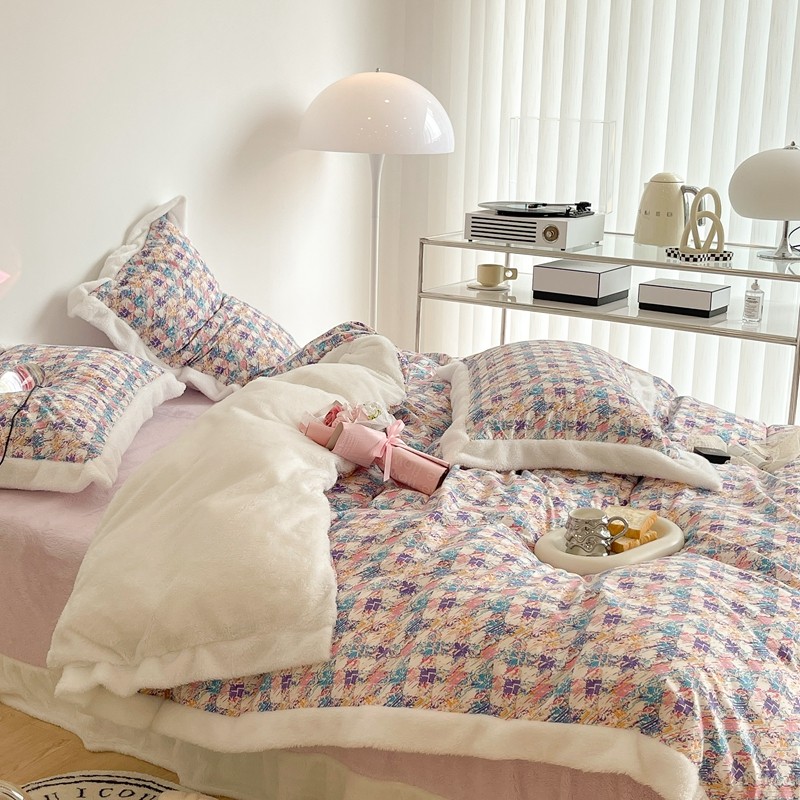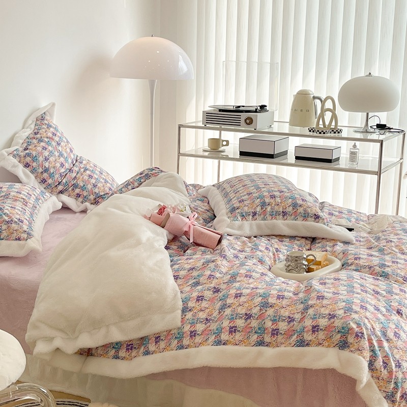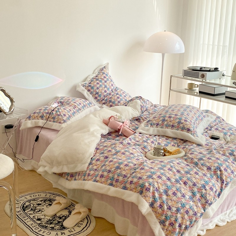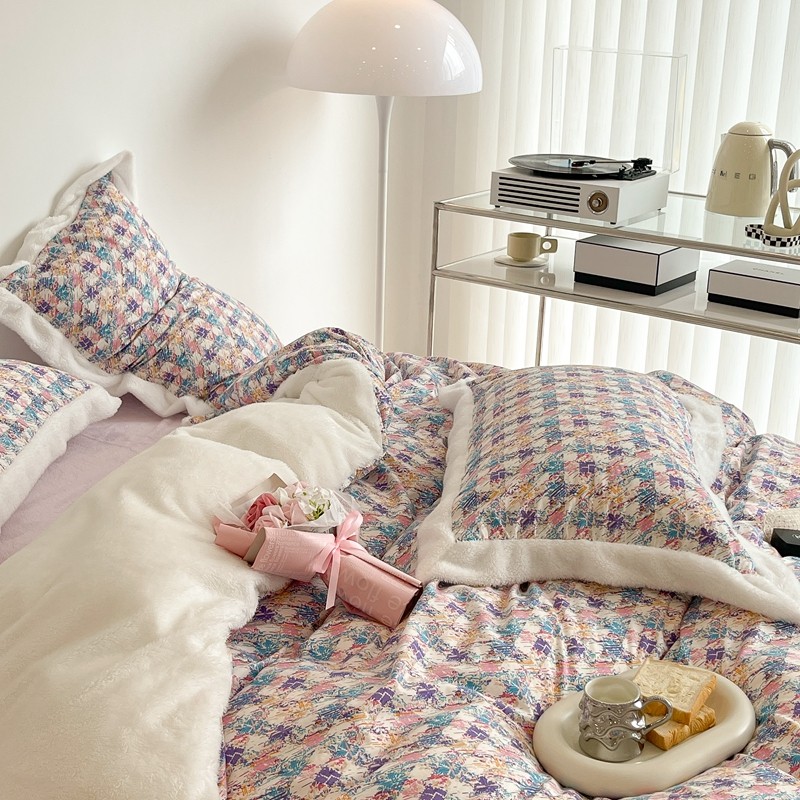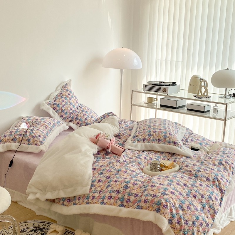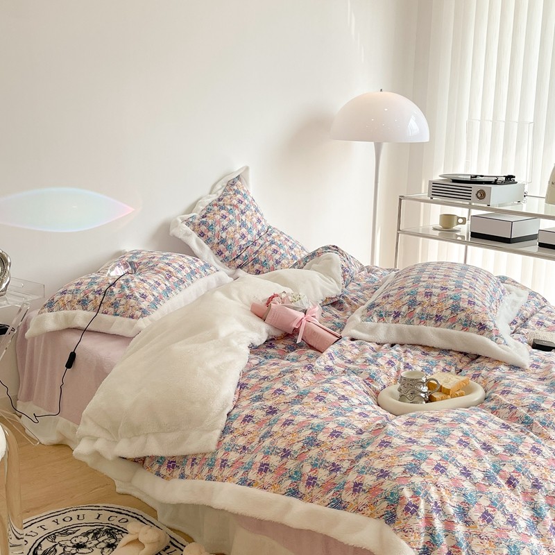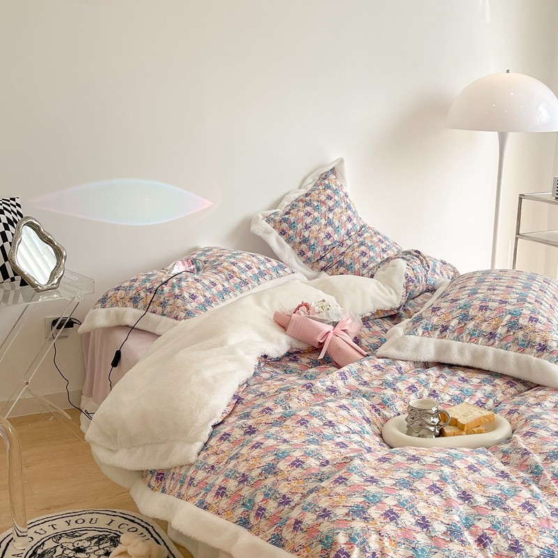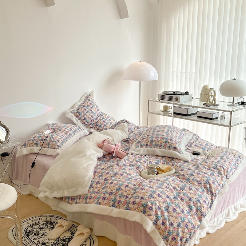 昔可家纺 2021新款小香香风棉加泰迪绒四件套 香香紫